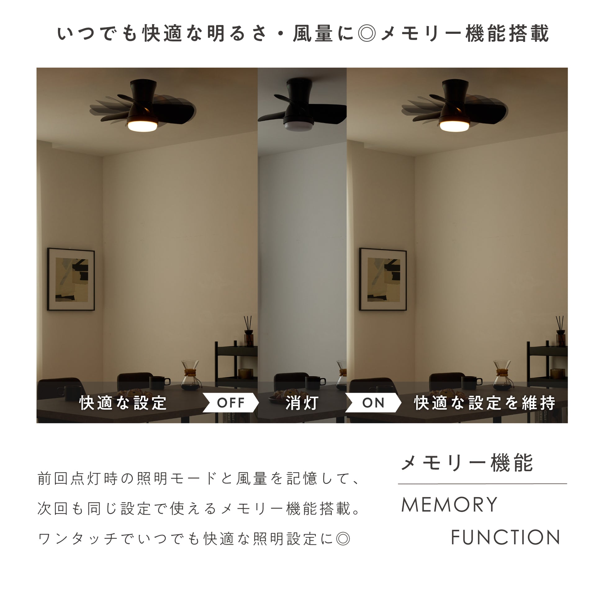 明るさ・風量を記憶するメモリー機能