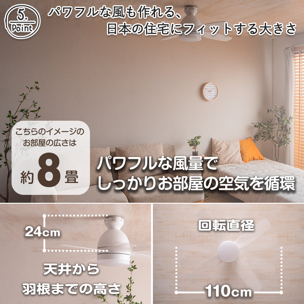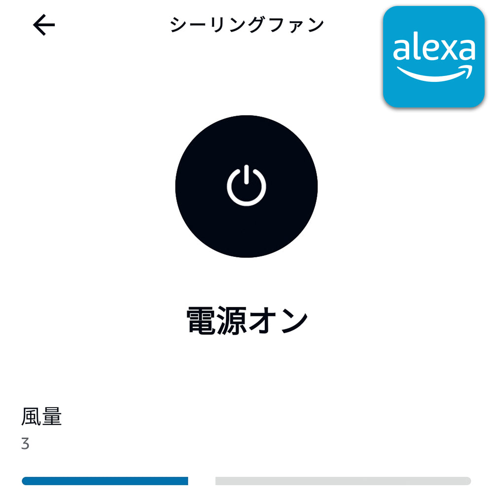 - Alexaでできる操作:ファンのON・OFF、ファンのスピード調整、照明のON・OFF、照明の明るさ調整