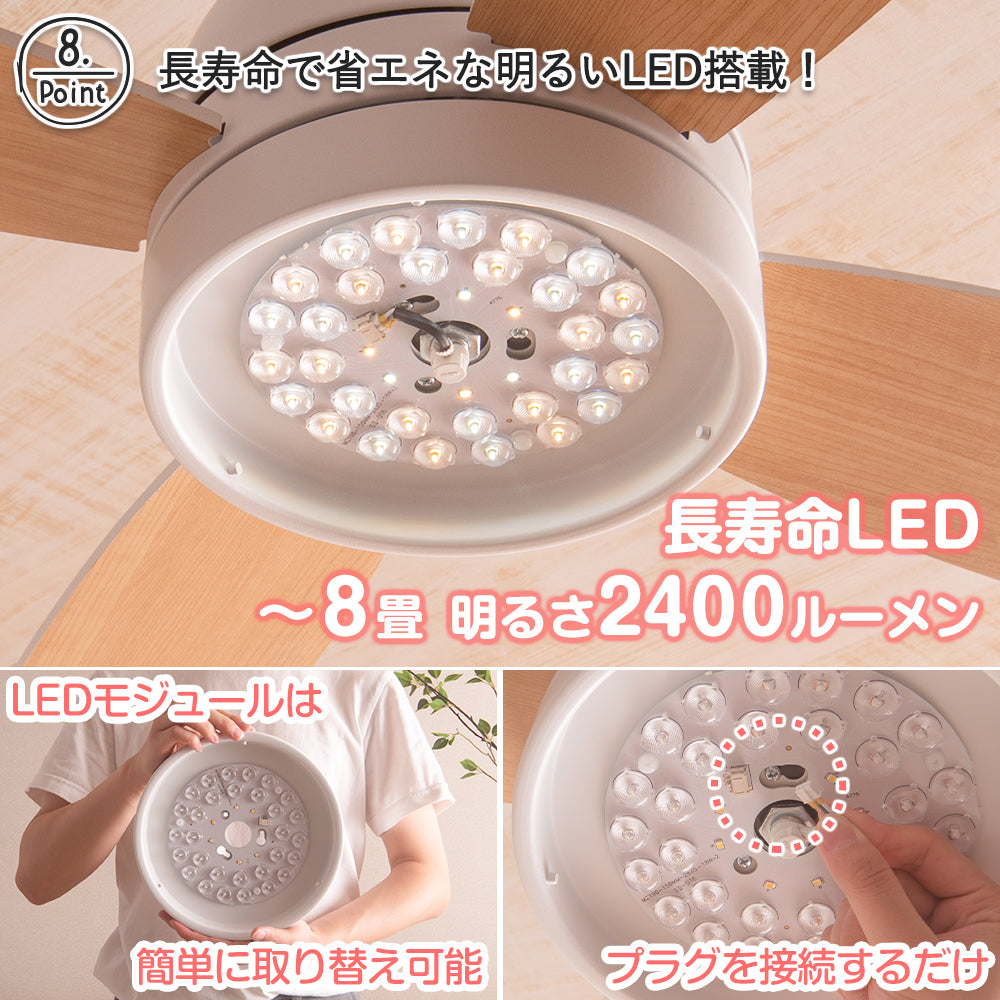 Ceiling Fan Light今ご覧になっているのは スマートスピーカー対応 LEDシーリングファンライト【Forte-S】のページです。