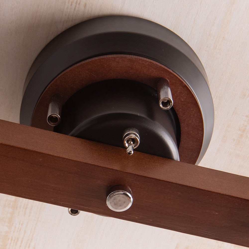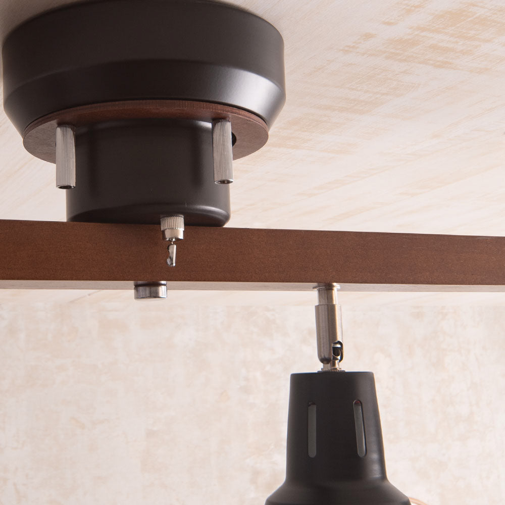 シーリングライトJunoの木製バーは合板や寄木などチープなものを避け、贅沢な天然木を丸ごと一本使用しました。そのため、1本1本異なった天然の表情が味わえ、世界でただ一つの照明をお届けすることが出来ます。回転時ナットとシーリングカバーのすりで発生するキズを防止するため、キズ防止プレートを追加しました。傷防止プレートも同じく木製で仕上げており、ねじの溝を隠すと同時に角度調整時の擦り傷を防止します。