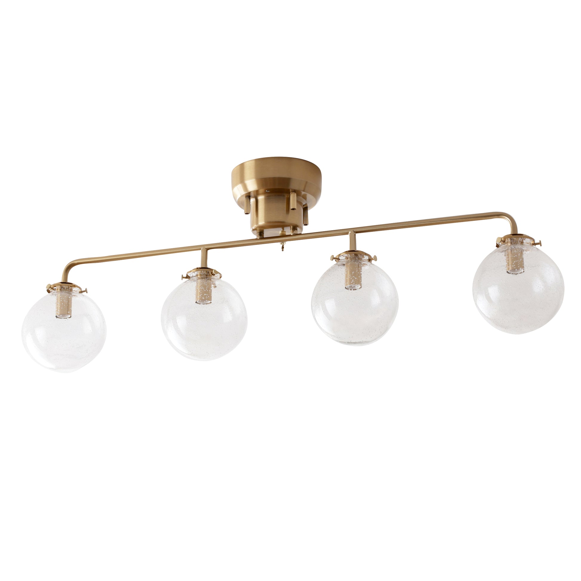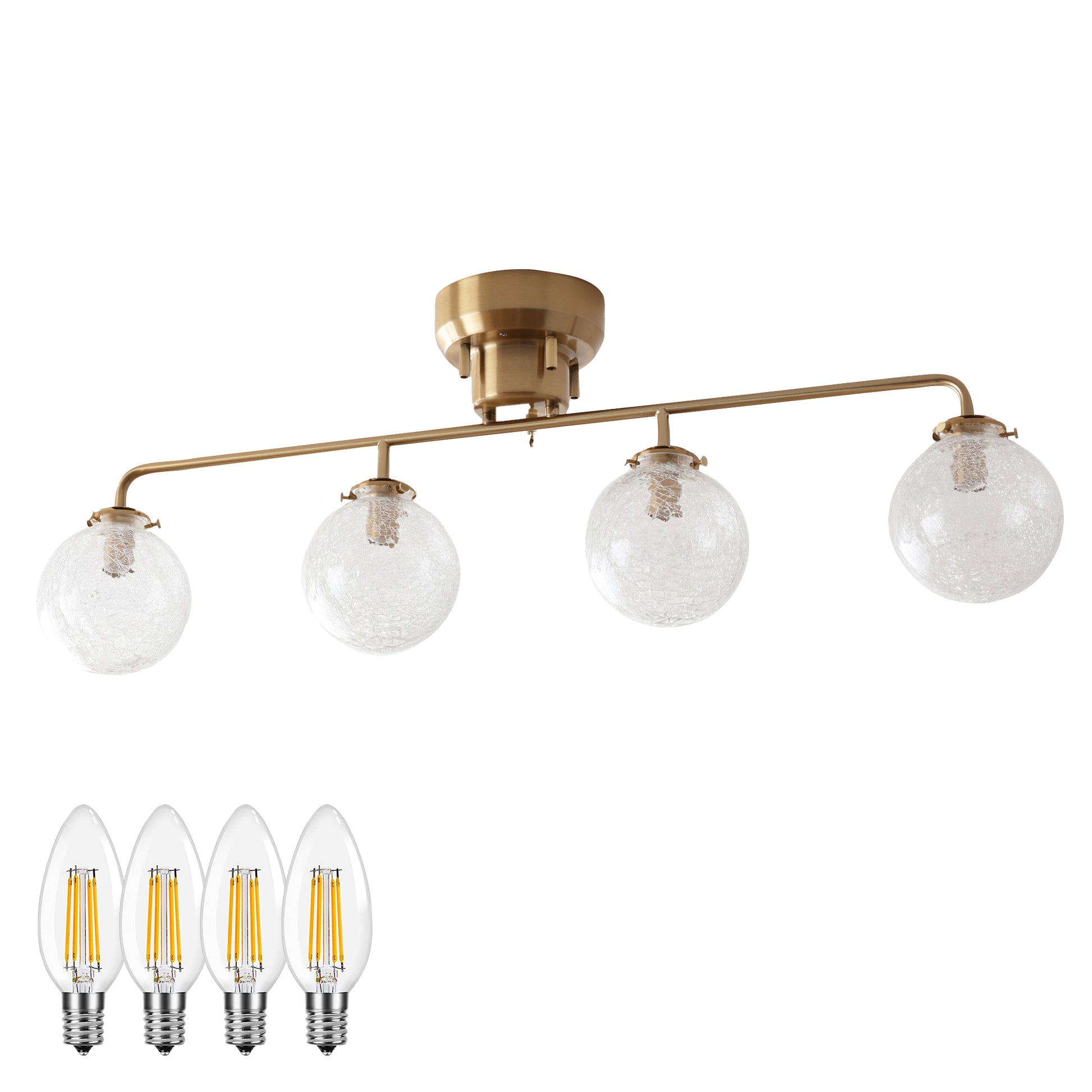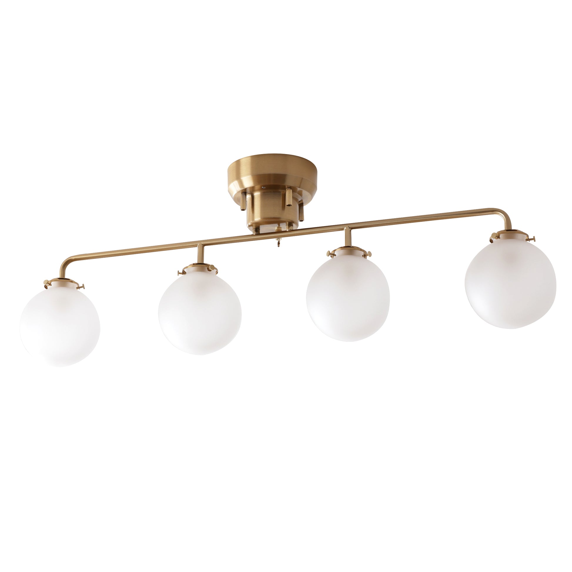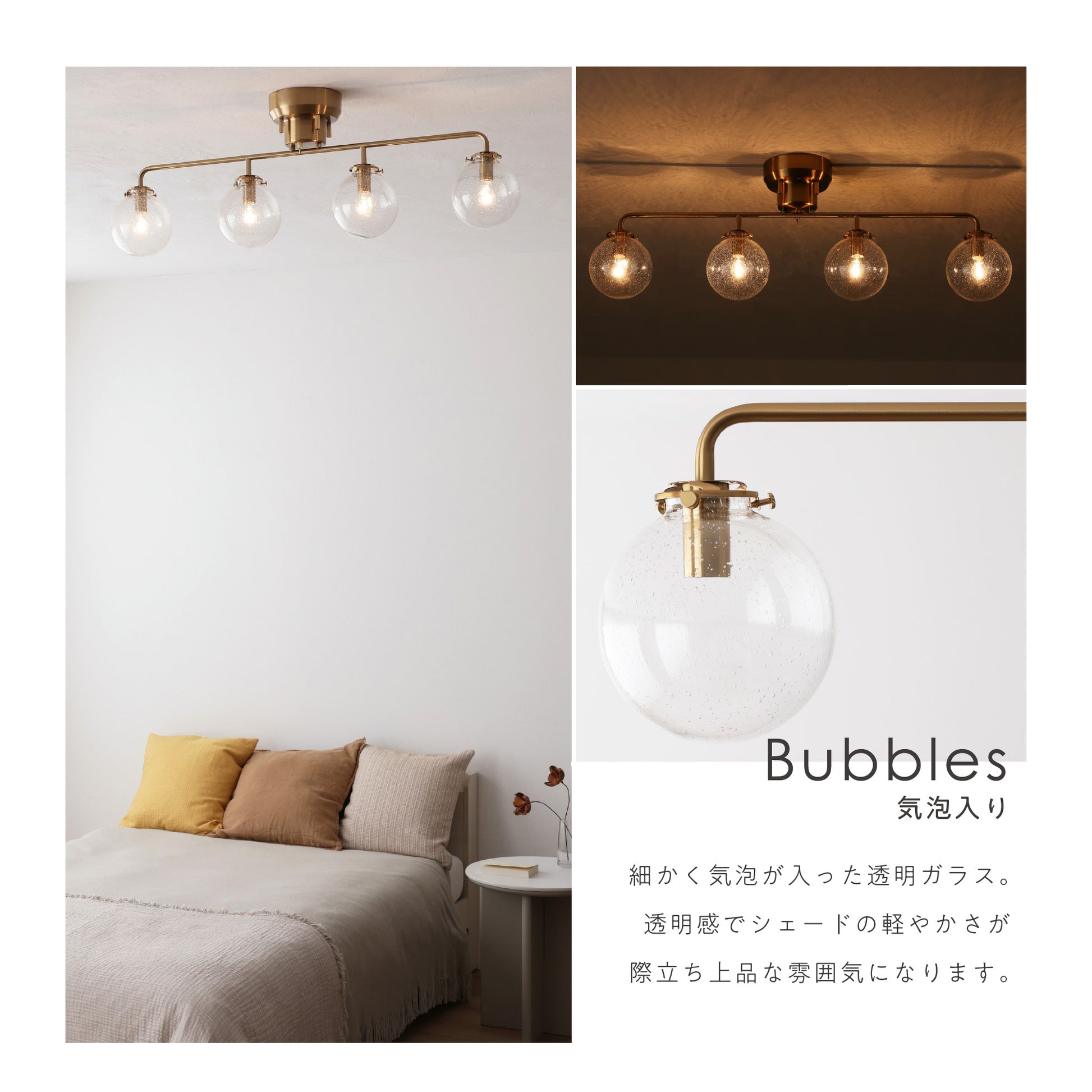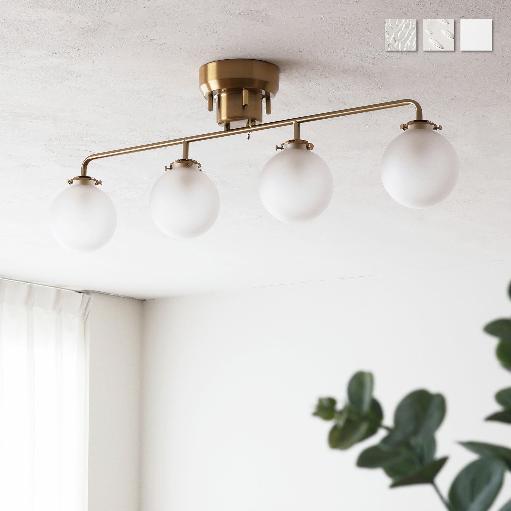 Malmo-Sシーリングライトは、ゴールドのフレームに包まれ、優雅な輝きを放つガラスシェードが空間を照らし出します。3種類のガラスから選択可能なフロスト、気泡入り、クラックは、それぞれ独自の特徴を持ち、洗練された雰囲気を演出します。明かりが灯ると、シェード内部の美しいガラスが幻想的な影を壁や天井に描き出し、空間を彩ります。プルチェーンスイッチの搭載により、点灯切替が容易で、ライト本体の約330度の回転機能によって、細かな角度調整が可能です。お部屋に最適な光を演出し、優雅な雰囲気を引き立てることができます。