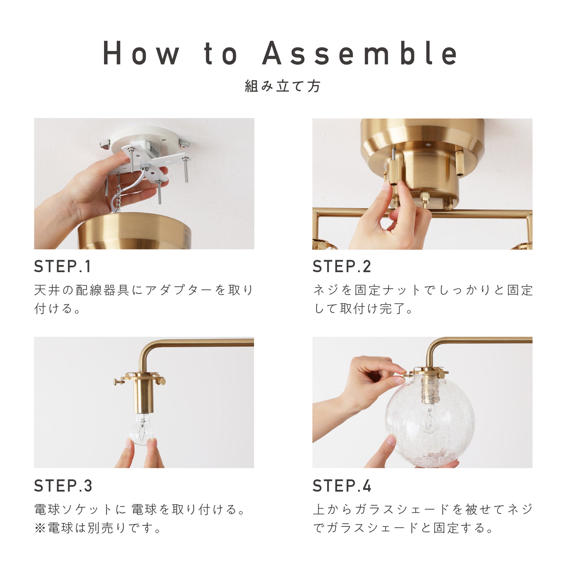 ガラスシェードを被せてネジでガラスシェードと固定する