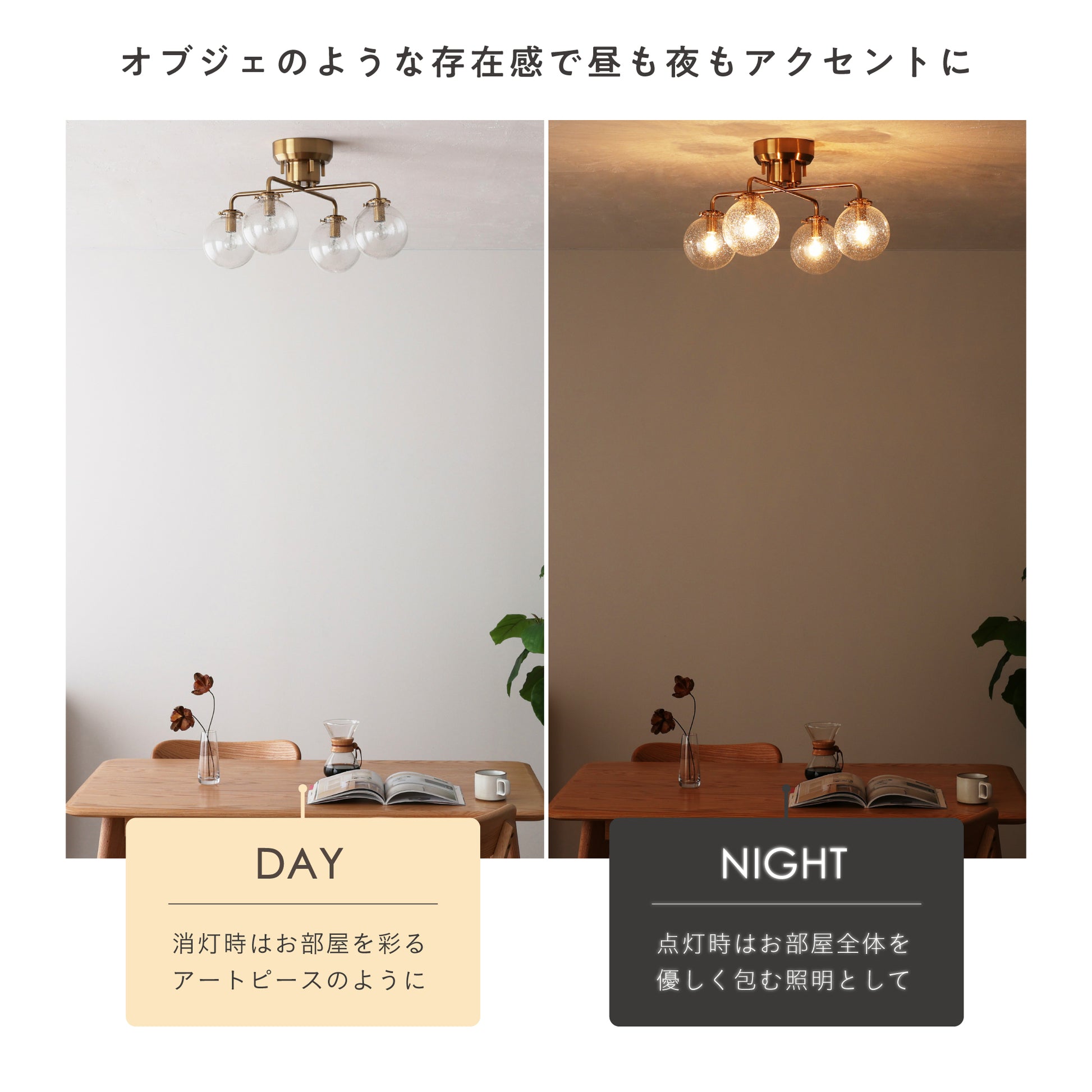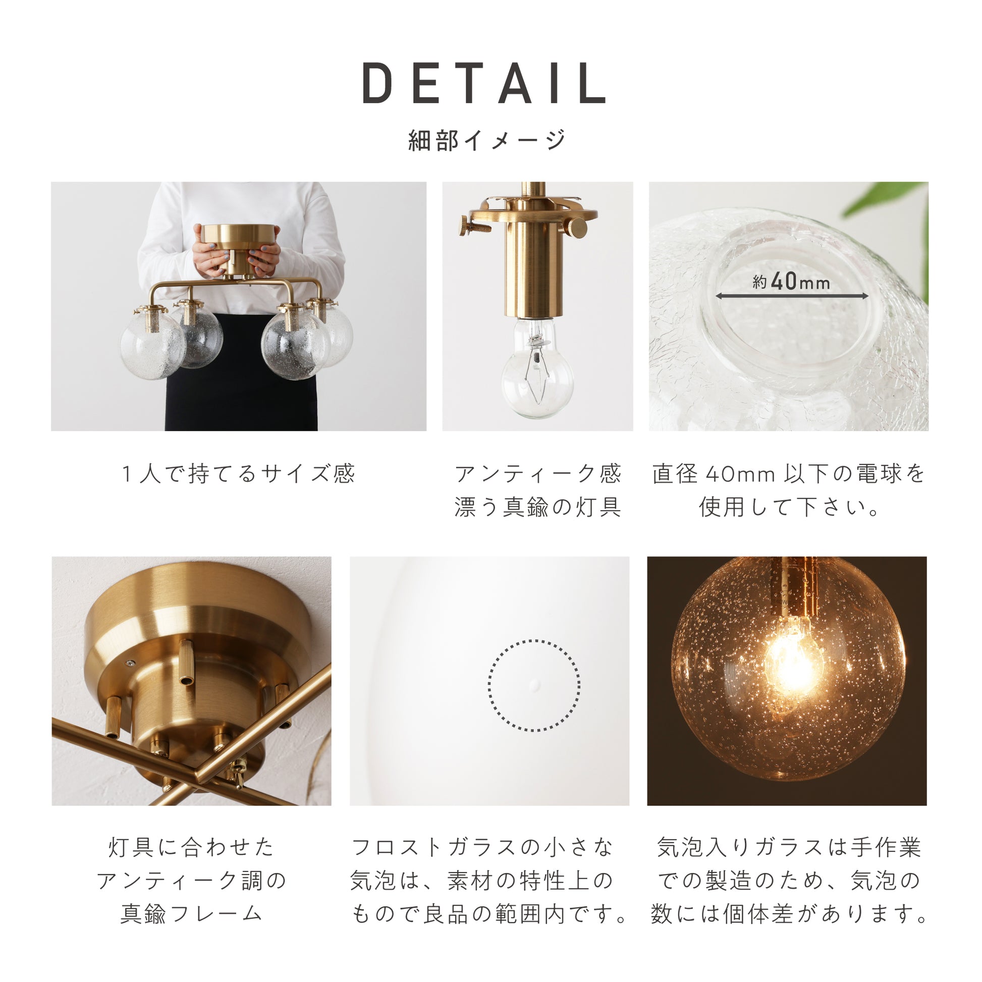 Malmo-Xシーリングライトは、ゴールドのフレームに包まれ、優雅な輝きを放つガラスシェードが空間を照らし出します。3種類のガラスから選択可能なフロスト、気泡入り、クラックは、それぞれ独自の特徴を持ち、洗練された雰囲気を演出します。明かりが灯ると、シェード内部の美しいガラスが幻想的な影を壁や天井に描き出し、空間を彩ります。プルチェーンスイッチの搭載により、点灯切替が容易で、ライト本体の約330度の回転機能によって、細かな角度調整が可能です。お部屋に最適な光を演出し、優雅な雰囲気を引き立てることができます。