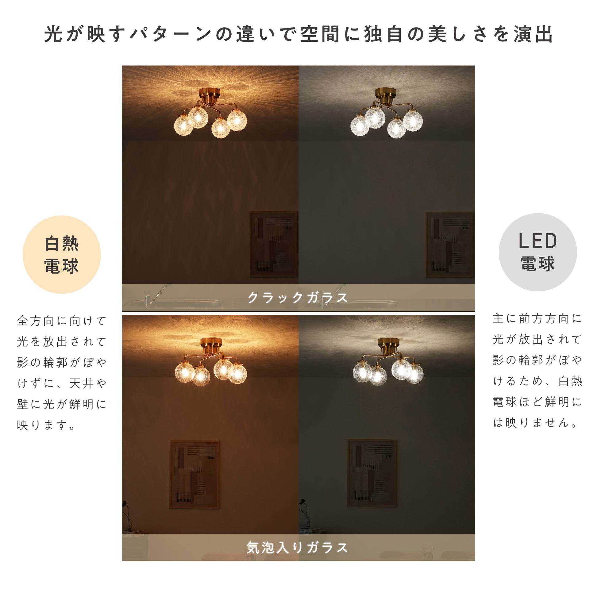 白熱電球は点光源として光を放射するため、影がくっきりと映ります。また、白熱電球は全方向に光を放出するため、影の輪郭がぼやけずに、天井や壁に鮮明に映ります。LED電球は点光源ではなく、指向性のある光を放射するため、影がぼやけます。また、LED電球は主に前方方向に光を放出するため、影の輪郭がぼやけるため、白熱電球ほど鮮明には映りません。