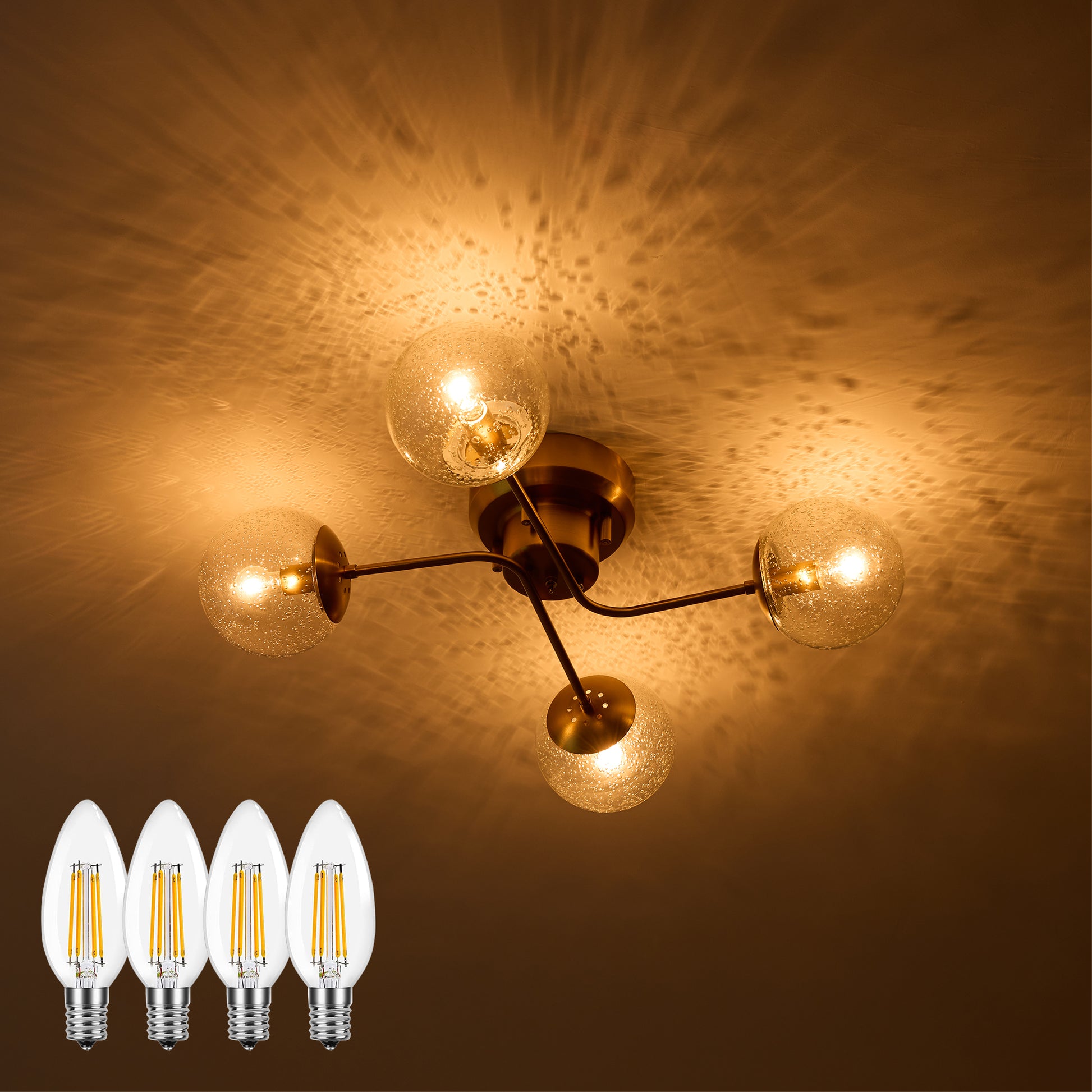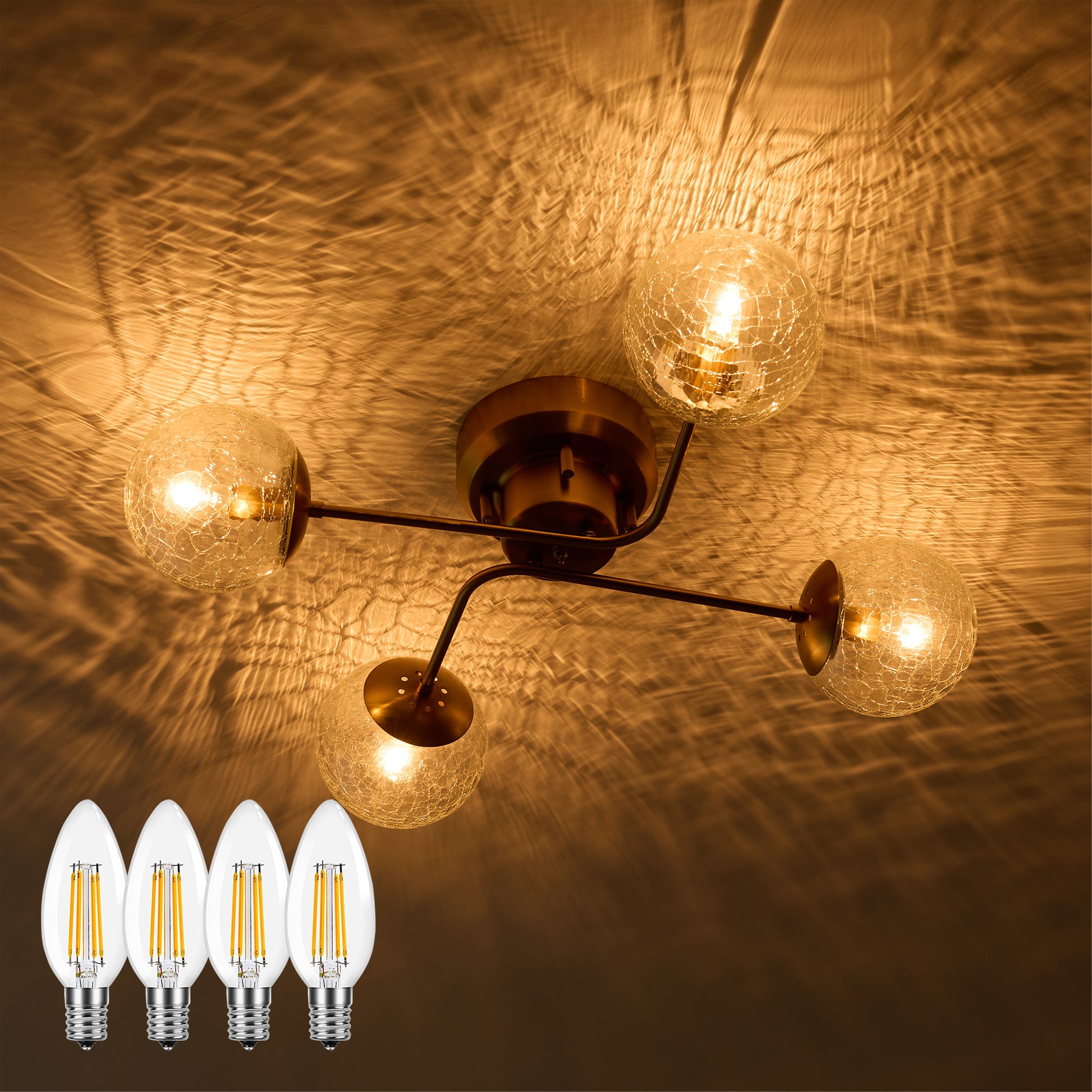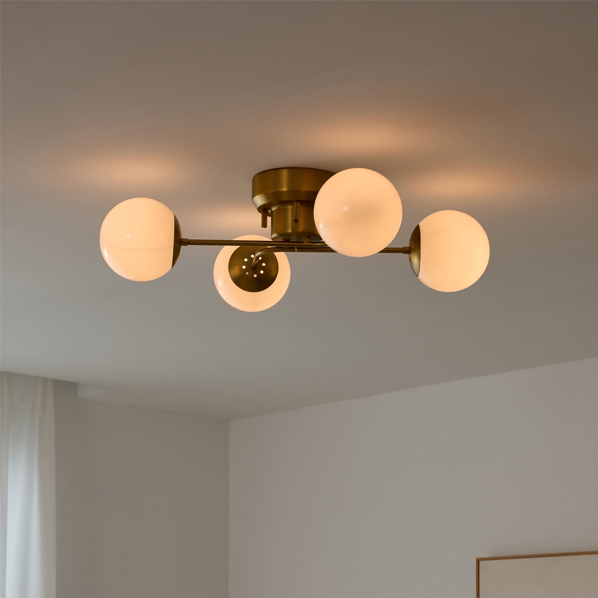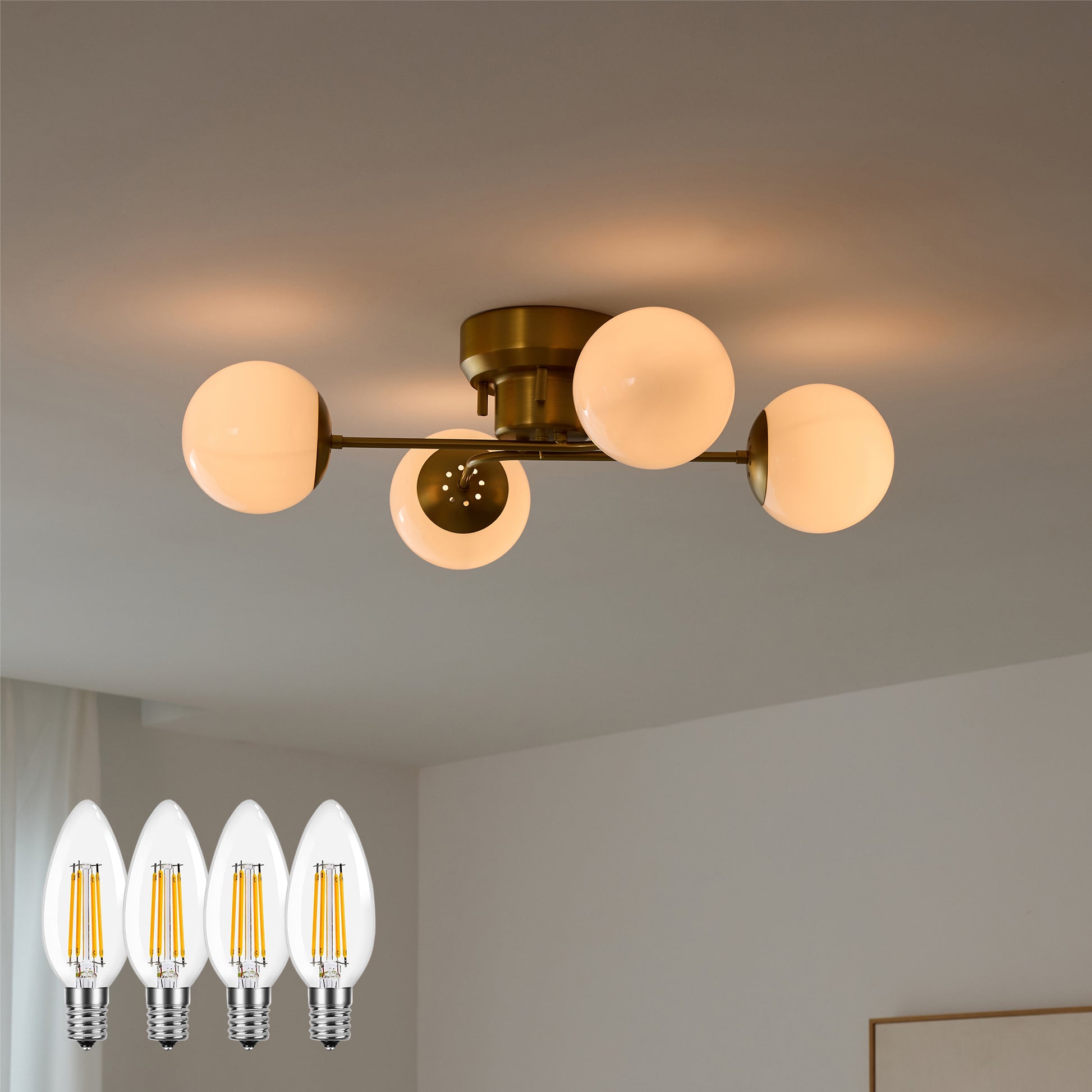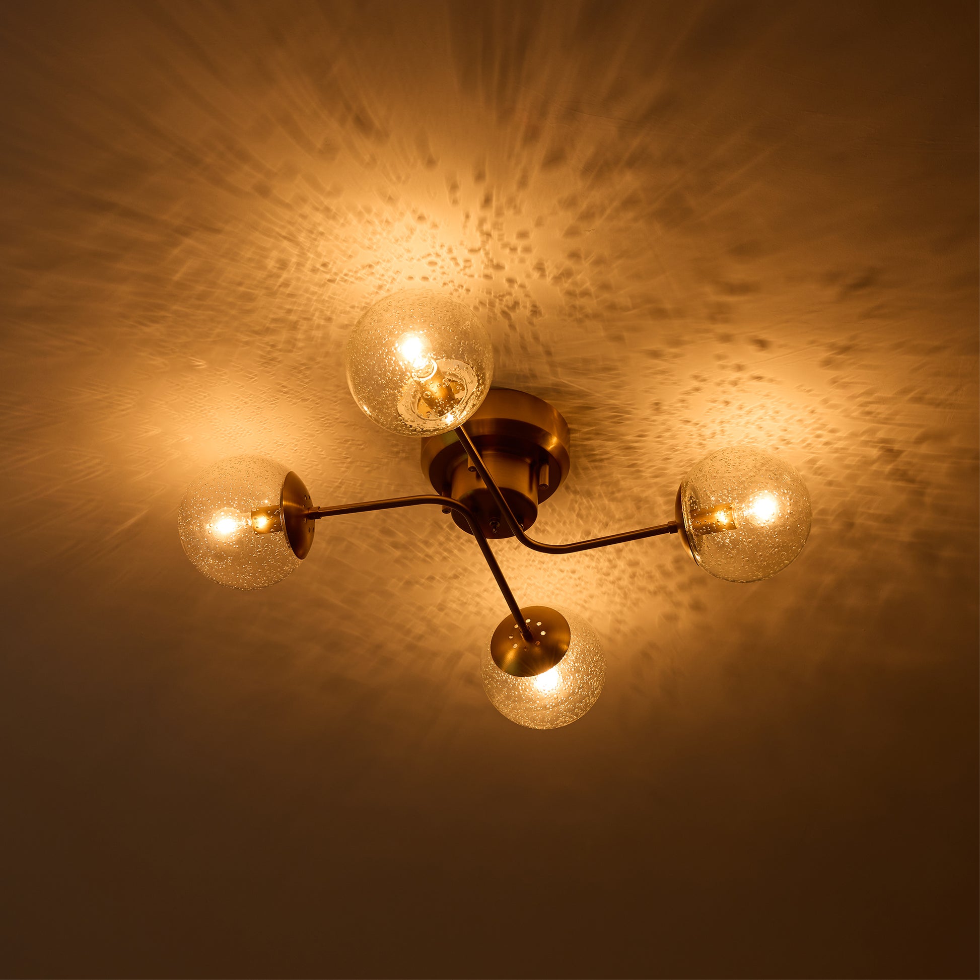 シーリングライト Modico-ART-C(モディコ-アート-C) は、ゴールドフレームとガラスシェードを組み合わせた上質なデザインが魅力の照明です。4つのライトが生み出す明るさはリビングやダイニングを華やかに照らし、ホテルのような特別感を演出します。優しい丸みのフォルムと温かな光が空間に心地良い雰囲気をもたらし、プルチェーンで2灯〜全灯まで簡単に切り替え可能。約330度の角度調整で光の向きを思い通りにコントロールできます。消灯時も美しいシルエットがインテリアのアクセントとなり、ホワイト・バブル・クラックの3種のガラスから好みに合わせて光の表情を選べます。シリーズで揃えることで、統一感のある洗練されたコーディネートも楽しめます。