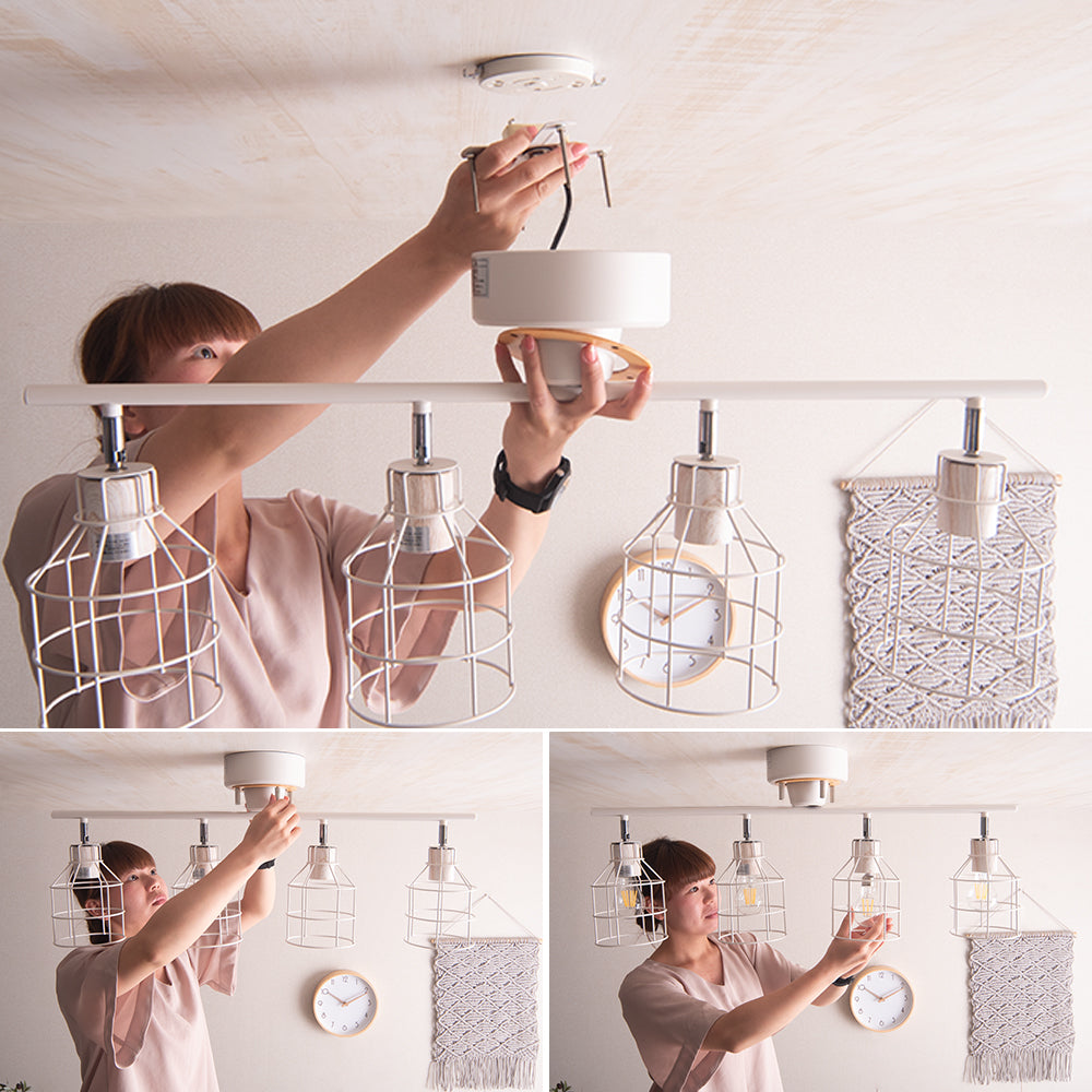 ・本体フレームバーを、回転用溝の可動範囲(約45°)を超えて【右】回転させることも出来ますが、接続したままで360°以上回転させますと、回転部分内のコードがねじれて断線・感電の恐れがあります。その場合は、一度、天井の接続部分である埋め込みローゼットや引掛けシーリングから外してお好みの角度にして下さい。