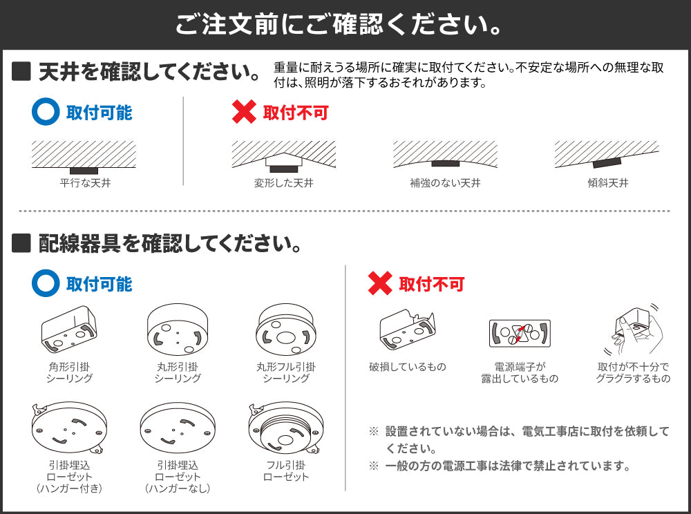 照明器具取り付けの際のご注意