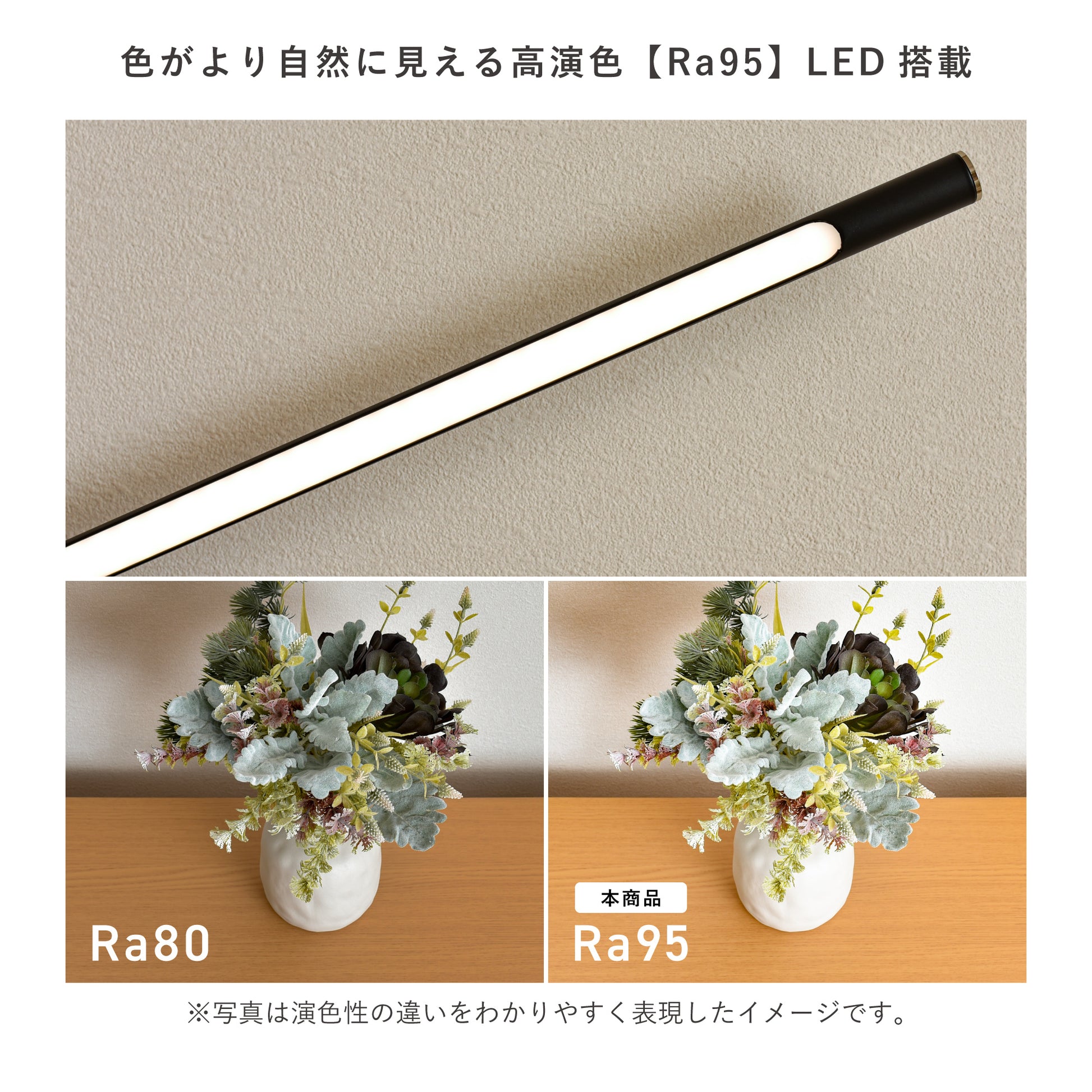 色がより自然に見える高演色【Ra95】LED搭載