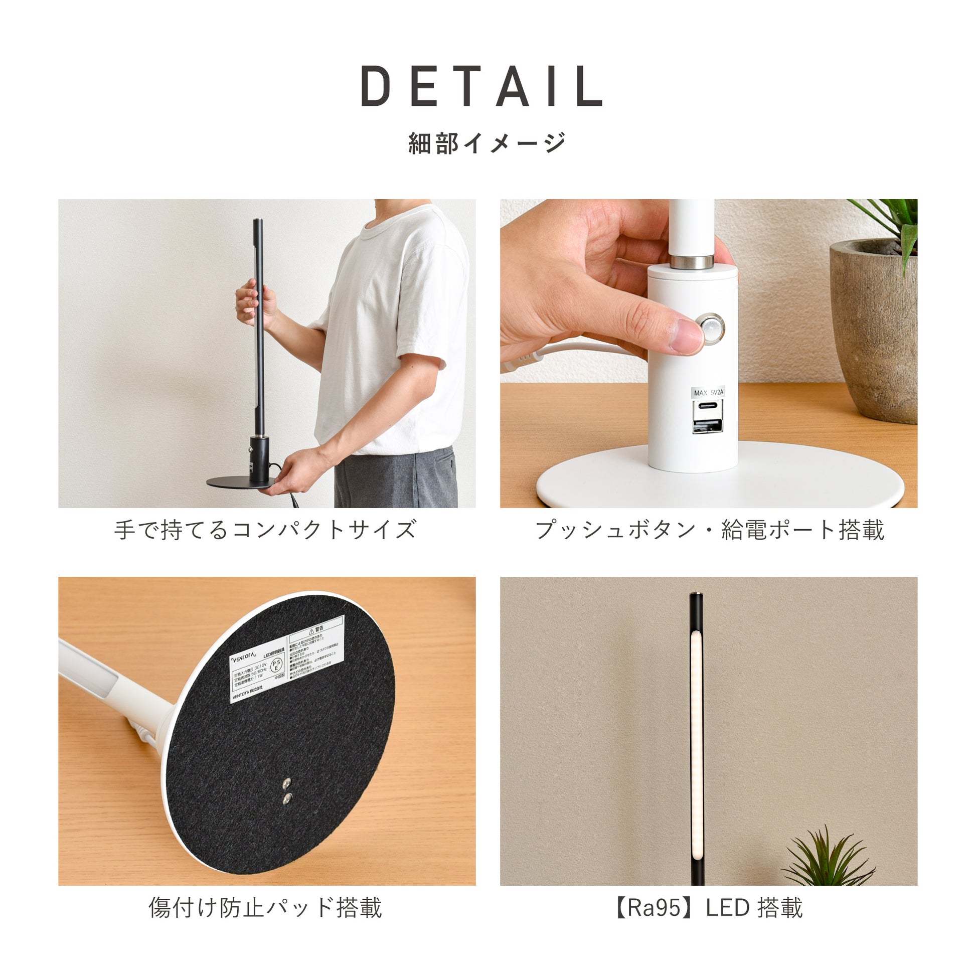 ベースはしっかりしていながらも大きすぎないサイズ。デスクに置いても邪魔にならず安定して使用できます。狭いスペースに配置できるためデスクスペースを最大限に活用できます。