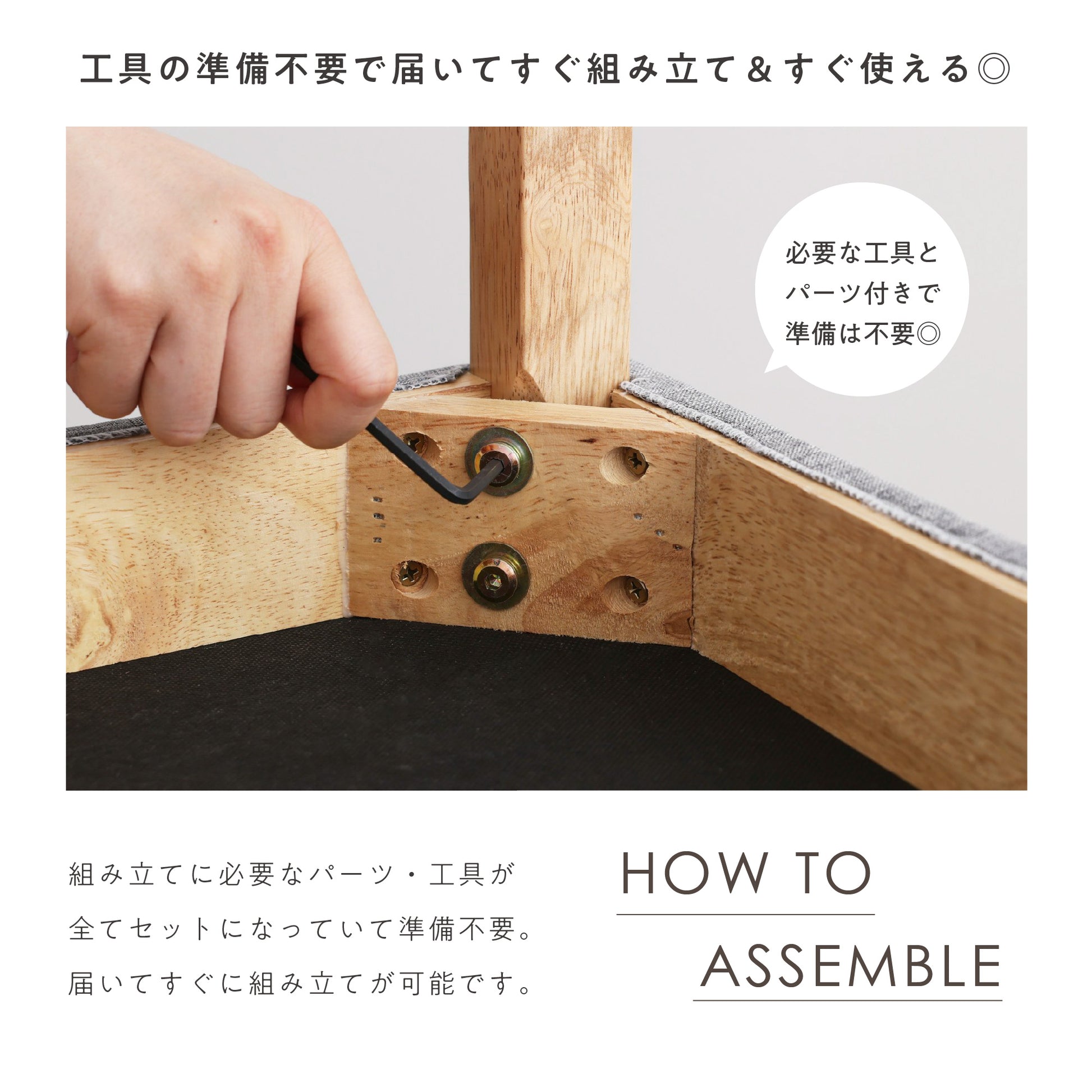 組み立てに必要なパーツ・工具は全てセットになっているので、お客様ご自身での工具の準備は必要ありません。届いてすぐに組み立てて、ご使用いただくことができます。
