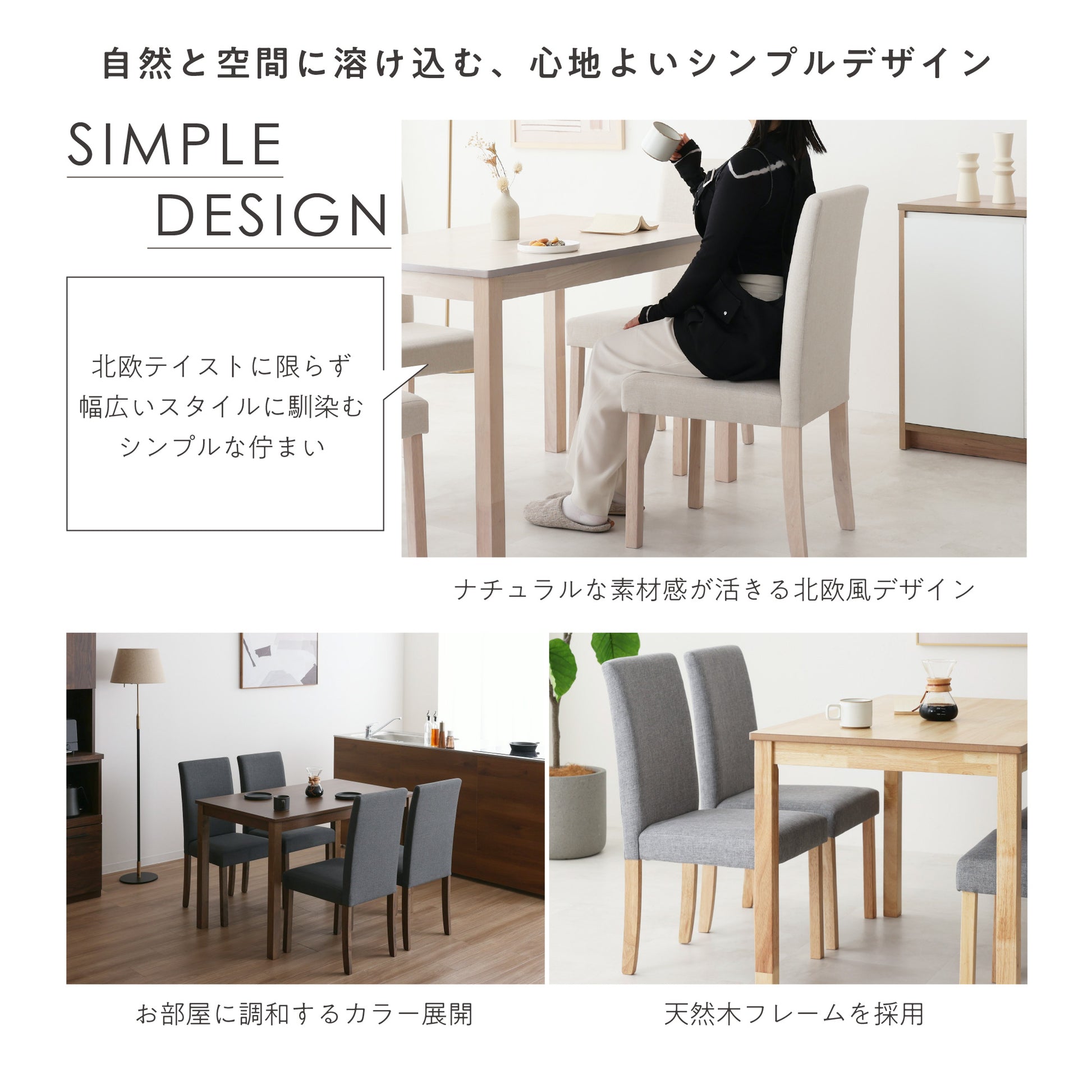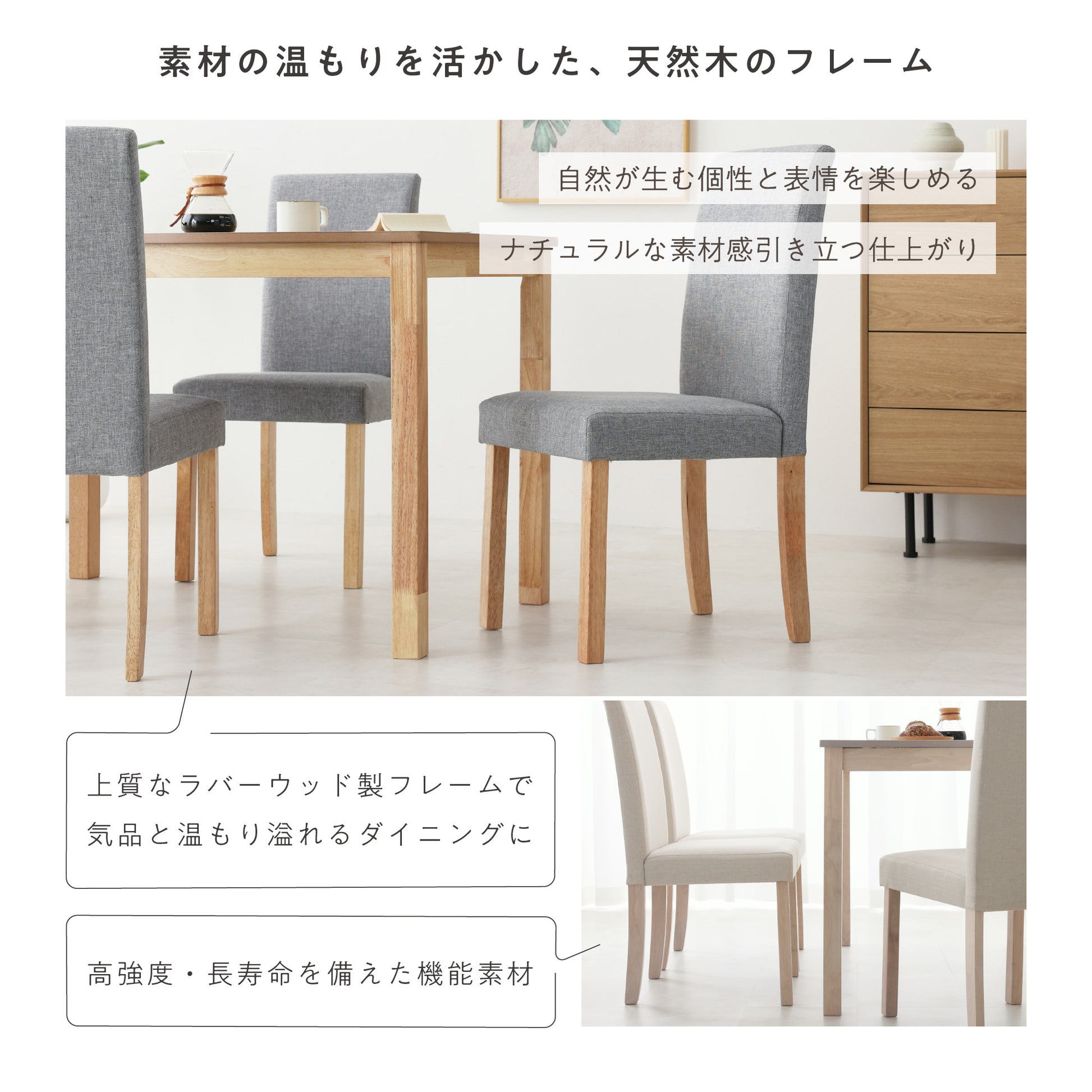 北欧テイストを取り入れたダイニングセットは、シンプルながら洗練されたデザインが特徴。暖かみある天然木のフレームを使用し、部屋全体を心地よい雰囲気へ。3色展開のニュアンスカラーは、幅広いインテリアに調和しやすく、毎日の食卓を温もり溢れるダイニング空間へと演出します。