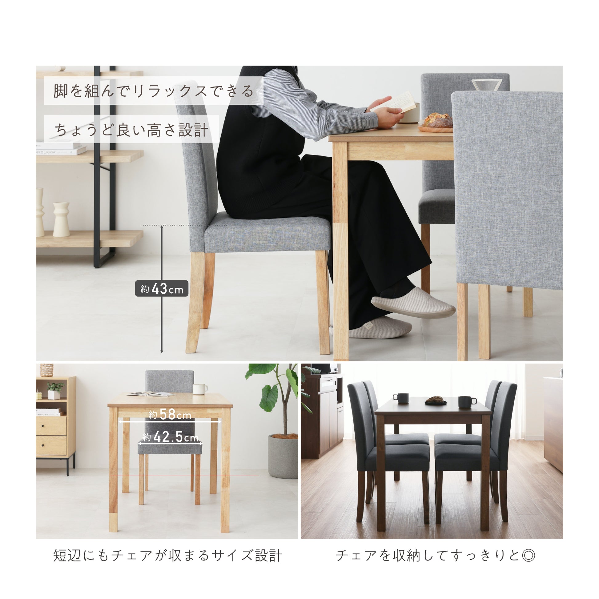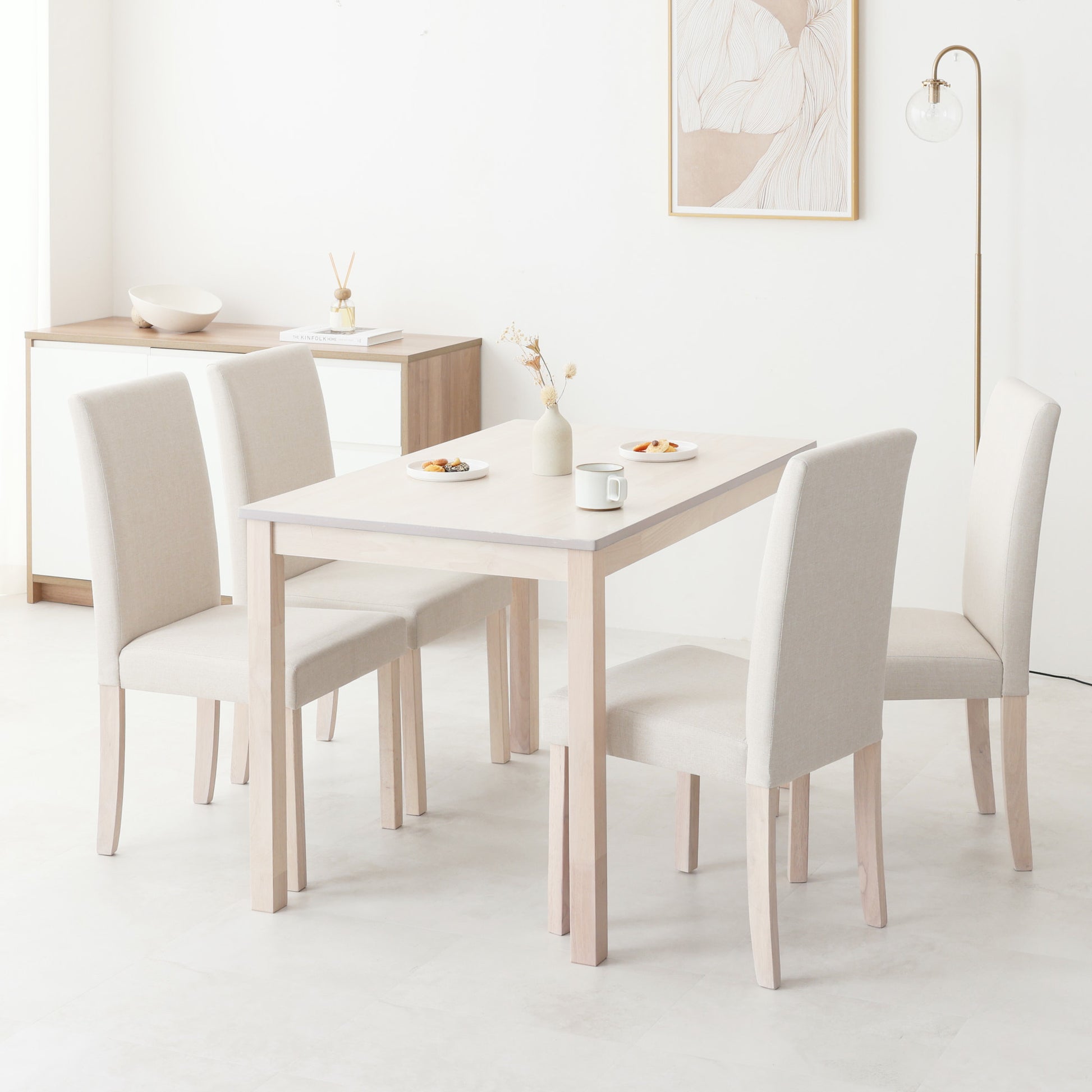 ダイニングセットCalida(カリダ)は、シンプルでありながらも洗練されたデザインが特徴です。天然木のラバーウッドを使用した天板は、美しい木目が際立ち、自然の温もりを感じさせます。コンパクトな設計ながら、4人がゆったりと過ごせるサイズ感を実現し、限られたスペースでも快適にお使いいただけます。チェアはハイバック仕様で、身体に寄り添い、ゆったりとくつろげる設計です。オールシーズン快適なファブリック生地とクッション性に優れたウレタンフォーム座面が、座るたびに心地よさを提供します。高耐荷重設計で、テーブルは約68kg、チェアは約90kgの耐荷重を誇り、安心してご使用いただけます。フローリングを傷つけないフェルト付きで、どんなお部屋にも安心して設置可能です。ウォールナット、ホワイトウォッシュ、ナチュラルの3色展開で、インテリアに合わせてお選びいただけます。Calidaは、家族や友人との大切な時間をより豊かにするためにデザインされました。