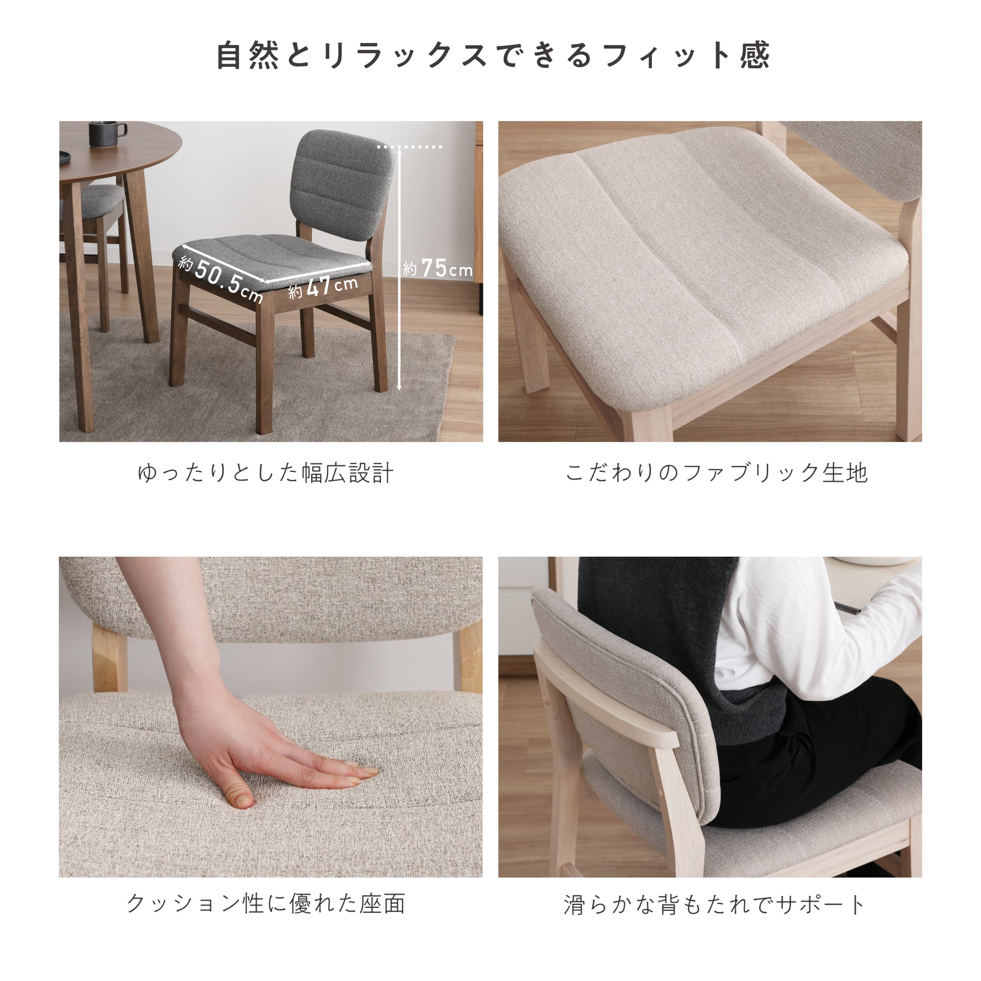 北欧テイストの洗練されたデザインに心地よい温もりを加えたダイニングチェアです。シンプルでスタイリッシュなフォルムはどんなインテリアにも調和し、ダイニングスペースをおしゃれに演出します。ホワイトウォッシュ、ナチュラル、ウォールナットの3色展開で、好みに合わせて選べるのも魅力。