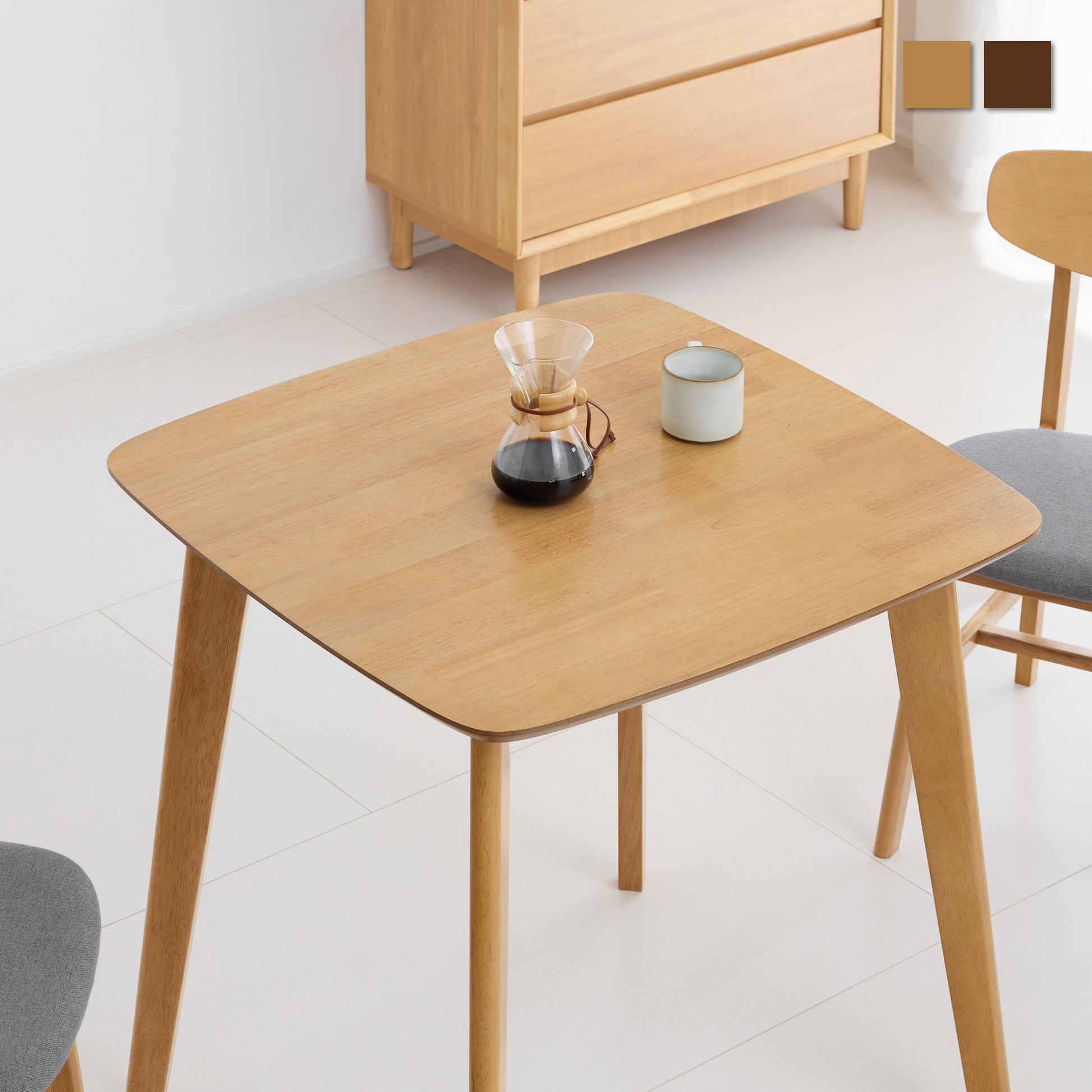 コンパクトな暮らしに調和するデザインに設計されたChiano-T75(キアノ-T75)。75cm×75cmの正方形サイズは、限られた空間でも圧迫感がなく、一人暮らしや二人暮らしの食卓に適しています。天然木ラバーウッドの自然な風合いを活かし、シンプルな北欧テイストでまとめることで、どんなお部屋にもなじむ佇まいに。化粧MDFの天板は木の質感を保ちながら、お手入れのしやすさにも配慮しました。柔らかな曲線を描く脚部が空間に軽やかさを添え、耐荷重68kgの設計により、日常使いに安心して取り入れられる一台です。