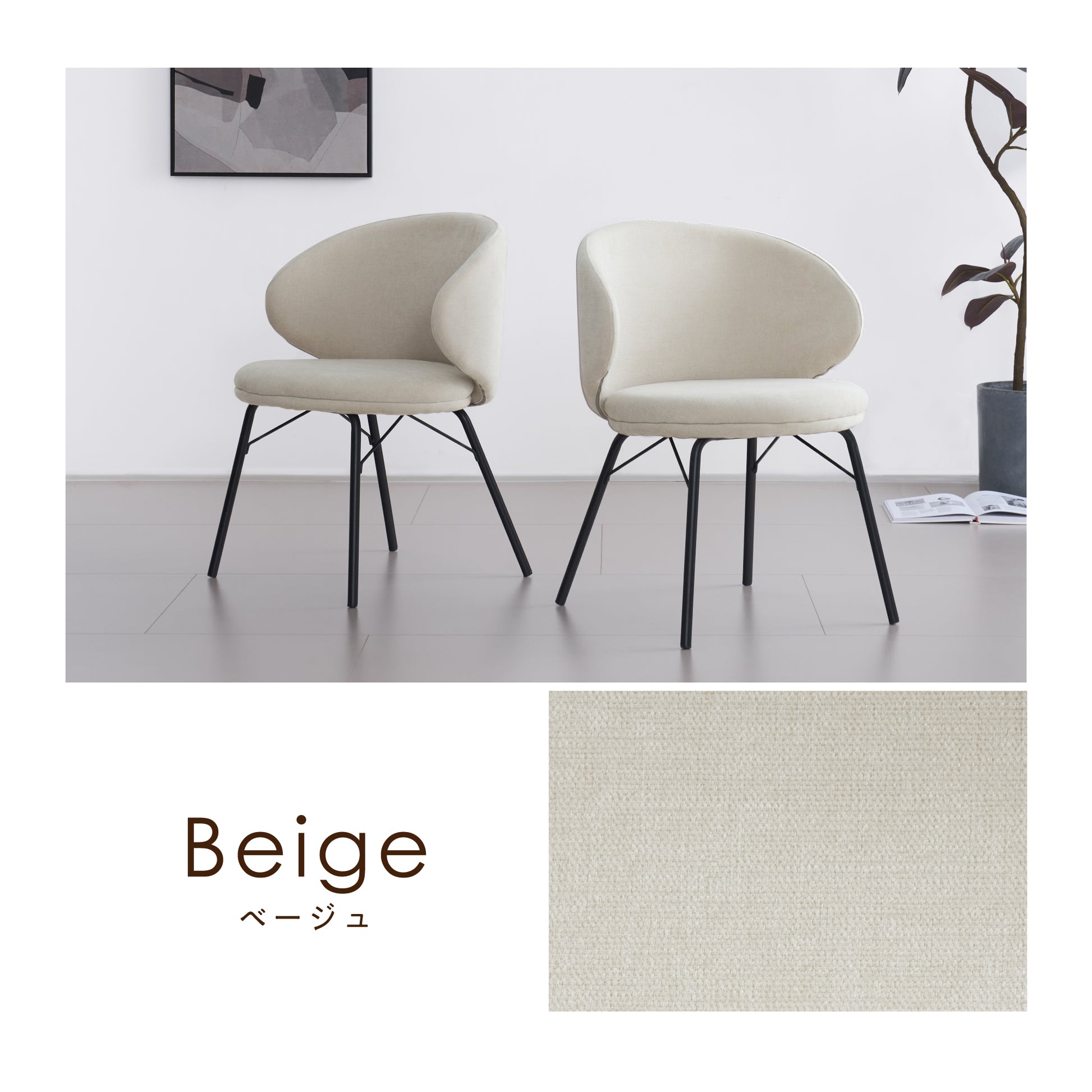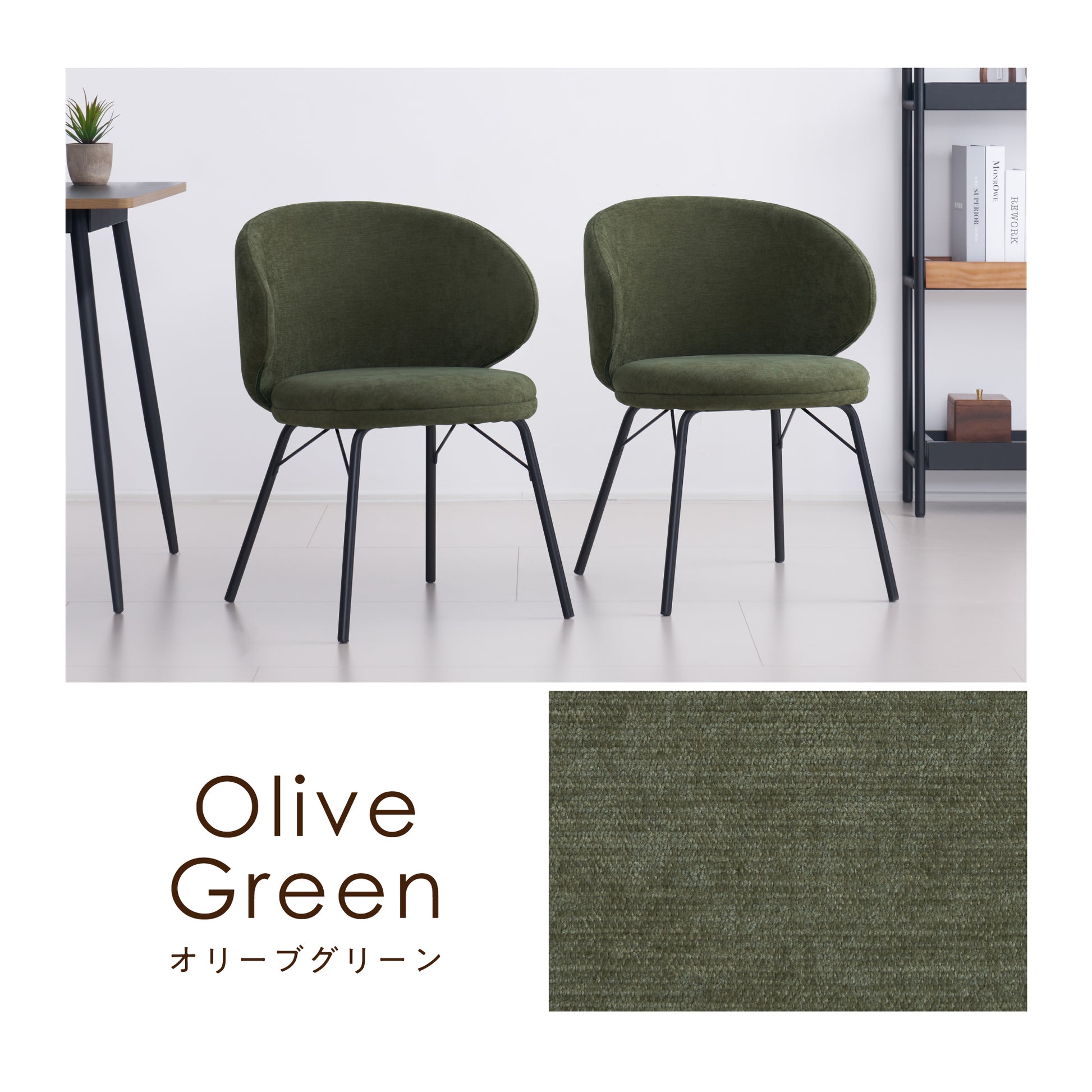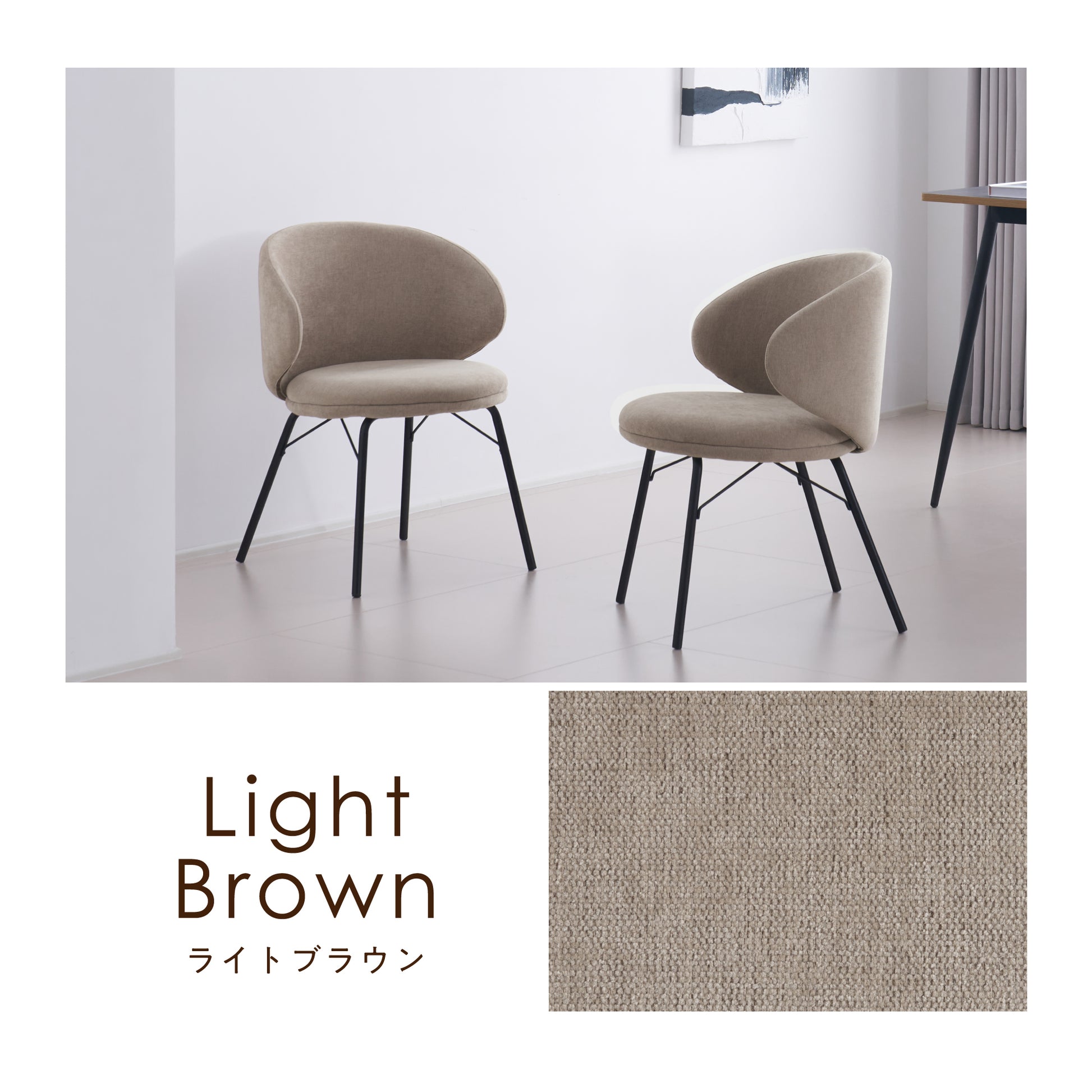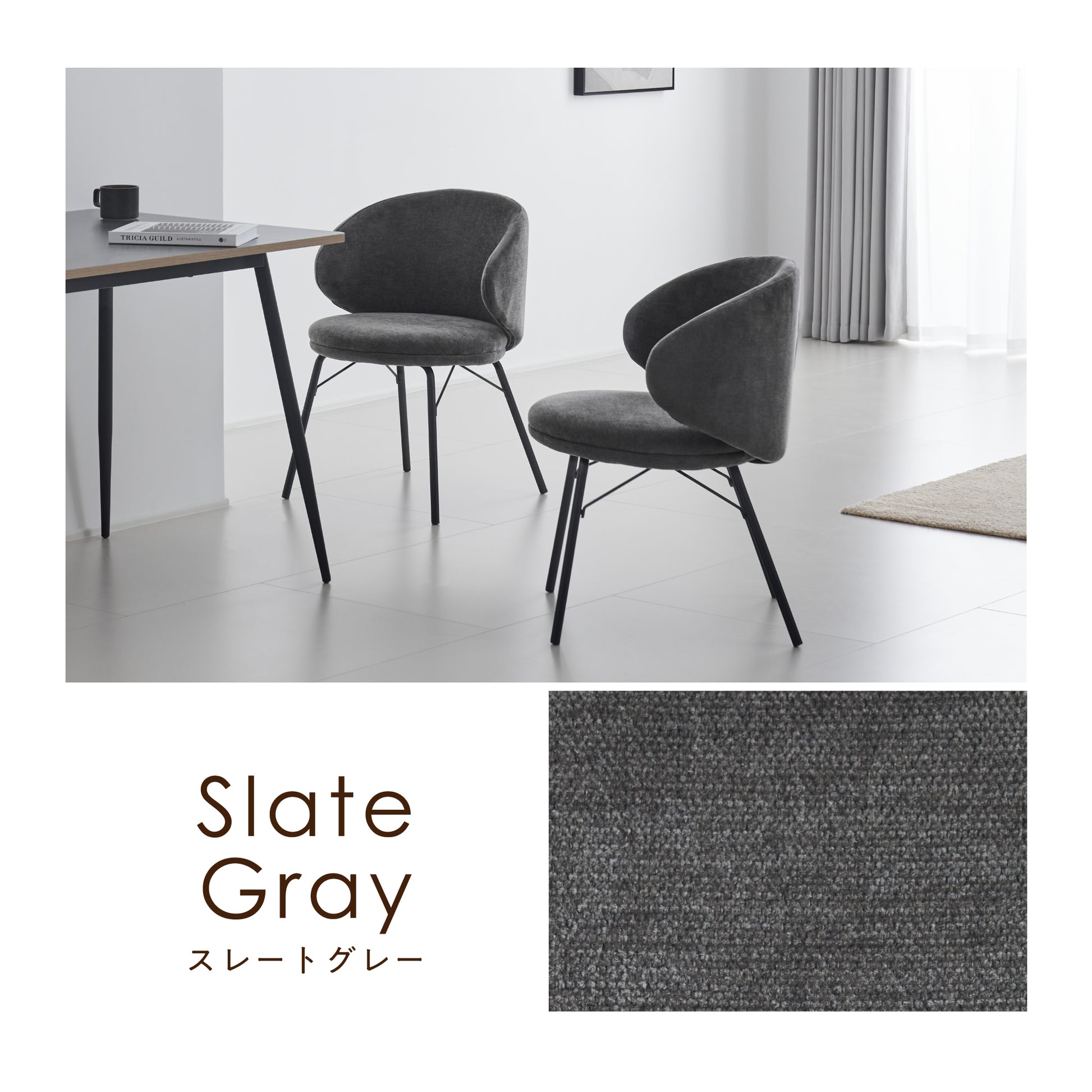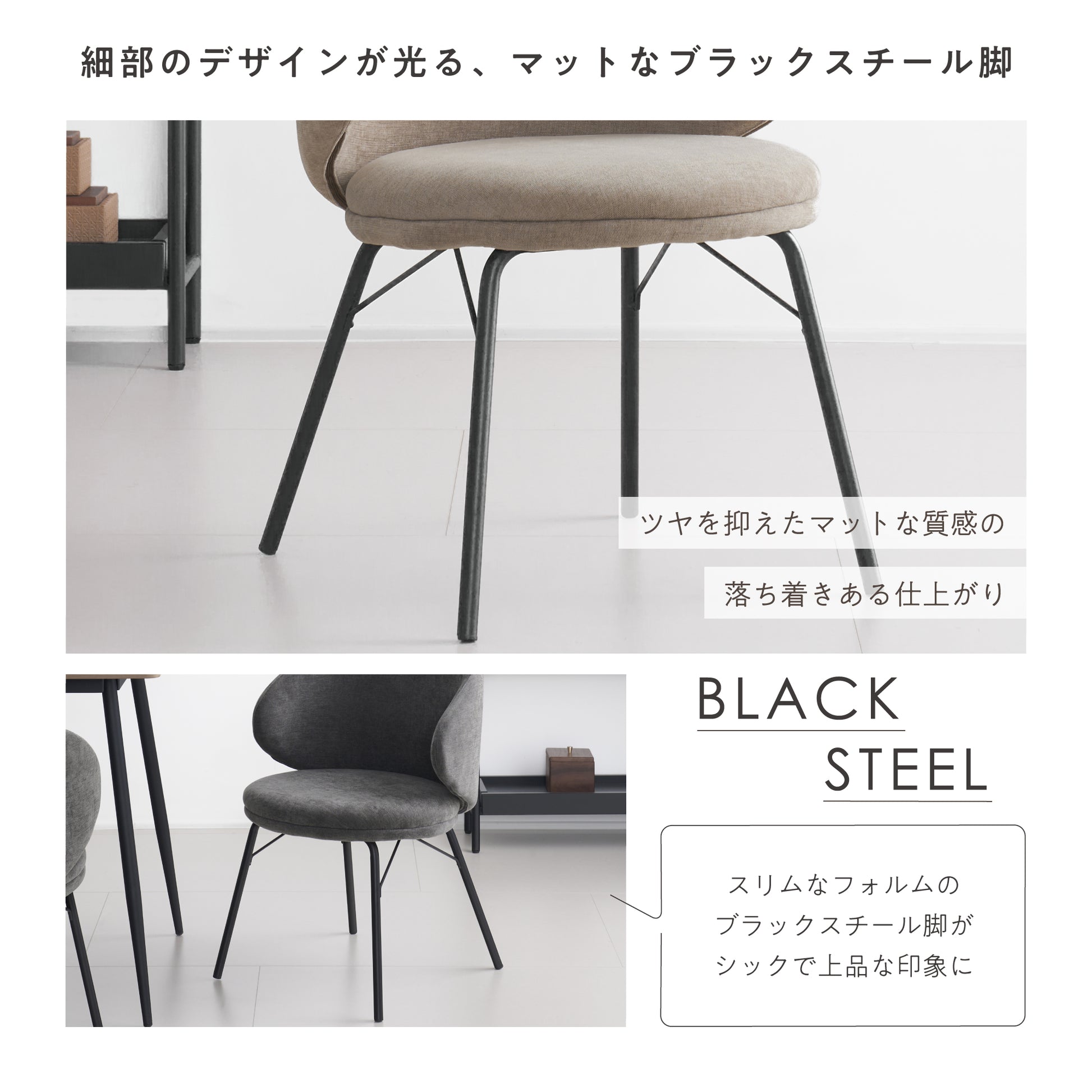 スリムなブラックスチール脚が、チェアのデザインを引き締めながら、全体のバランスをセンス良くまとめています。ツヤを抑えた質感が上品なマット仕上げで、よりスタイリッシュな印象に仕上げました。