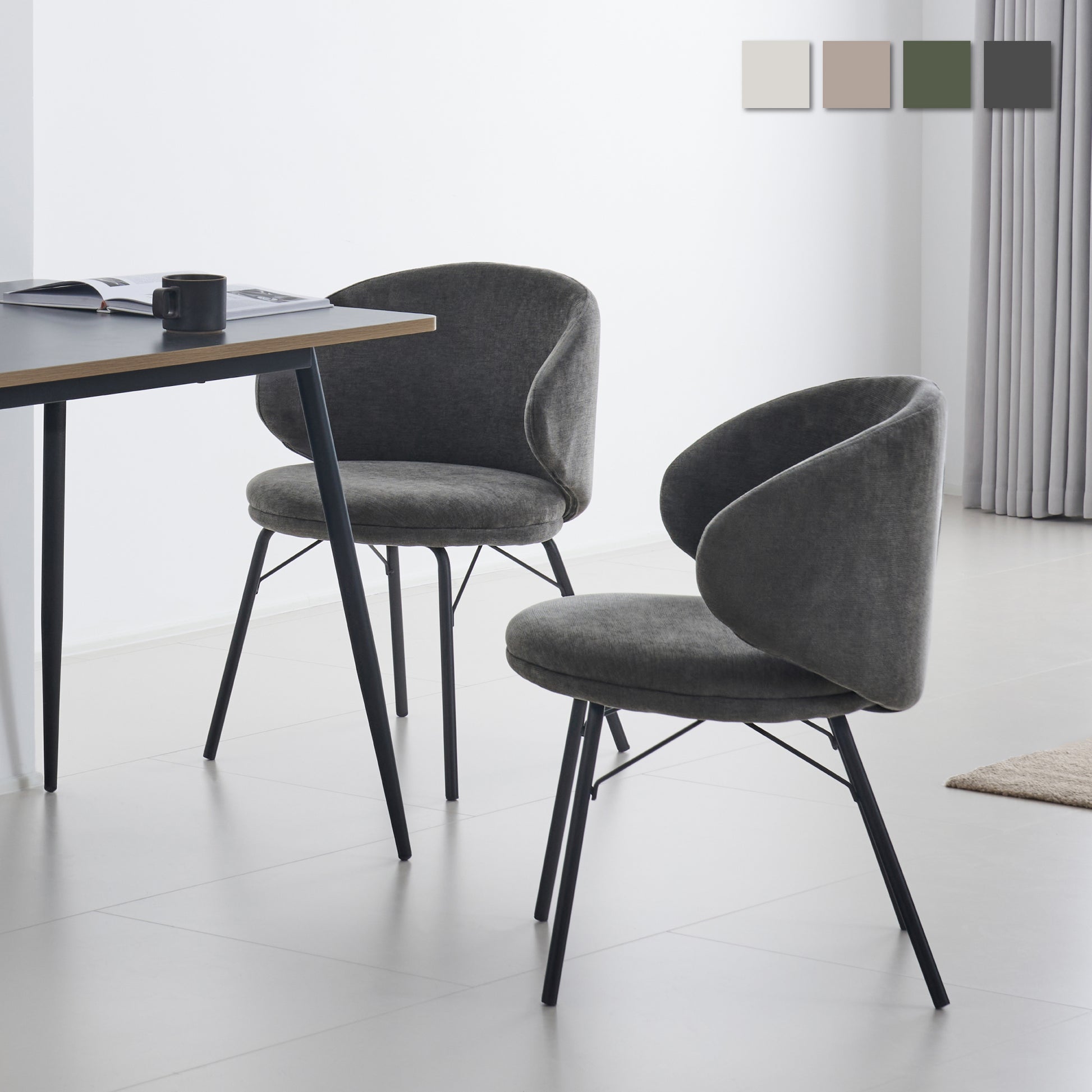 曲線フォルムが身体をやさしく包み込み、座るたびに心地よさを実感できるダイニングチェア。深みのある色合いと柔らかなファブリックが、見た目の美しさだけでなく触れた瞬間の安らぎも演出し、空間に上質で落ち着いた雰囲気を添えます。さらに、マットなブラックスチール脚が全体のデザインを引き締め、モダンで洗練された印象に。日常の暮らしに自然と馴染みながら、食卓やリビングを豊かで心地よい時間で満たしてくれる一脚です。