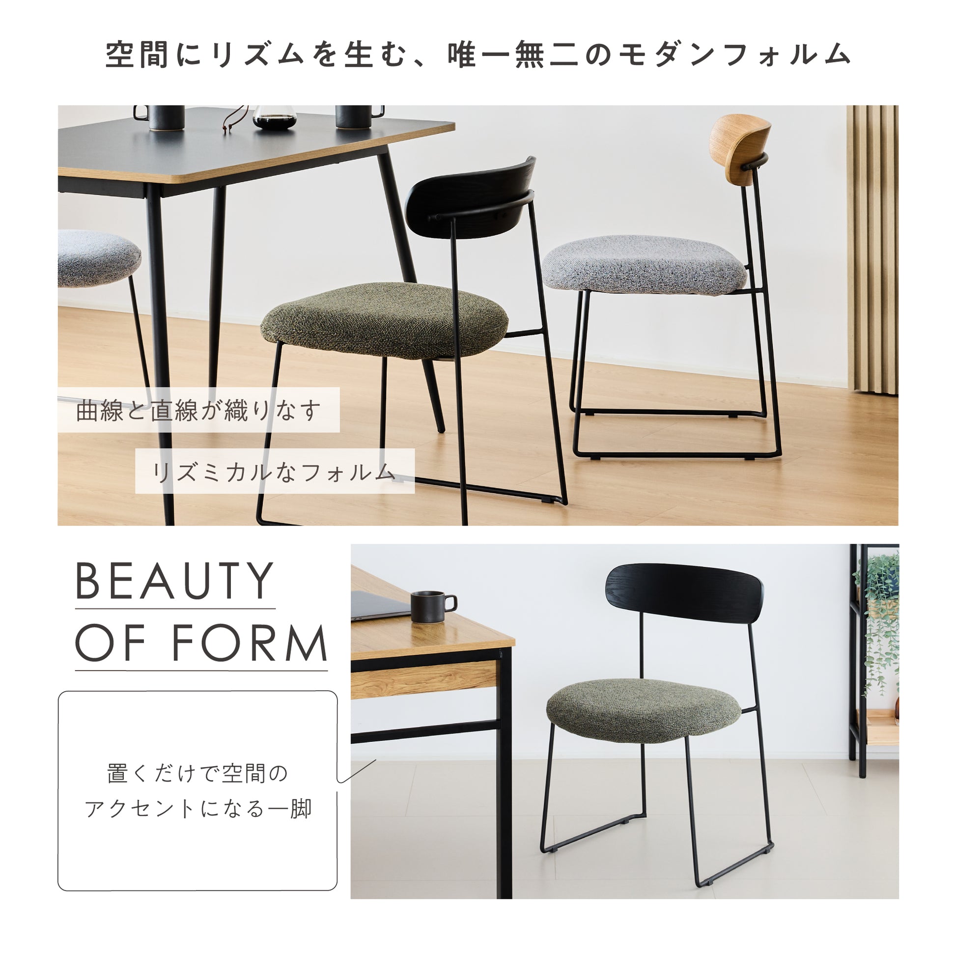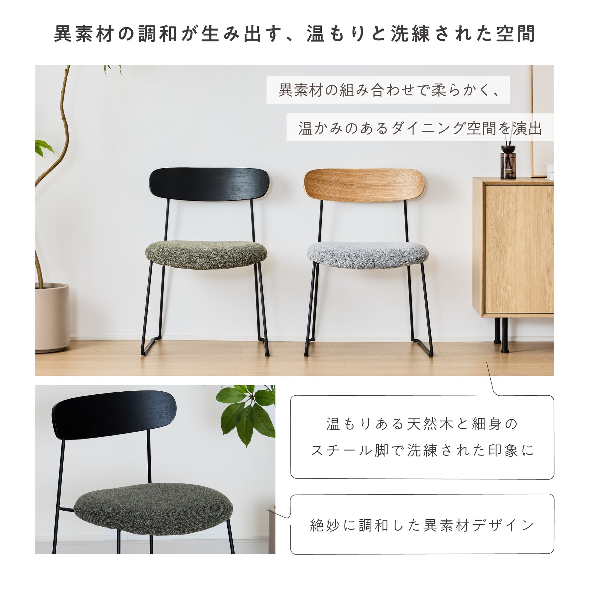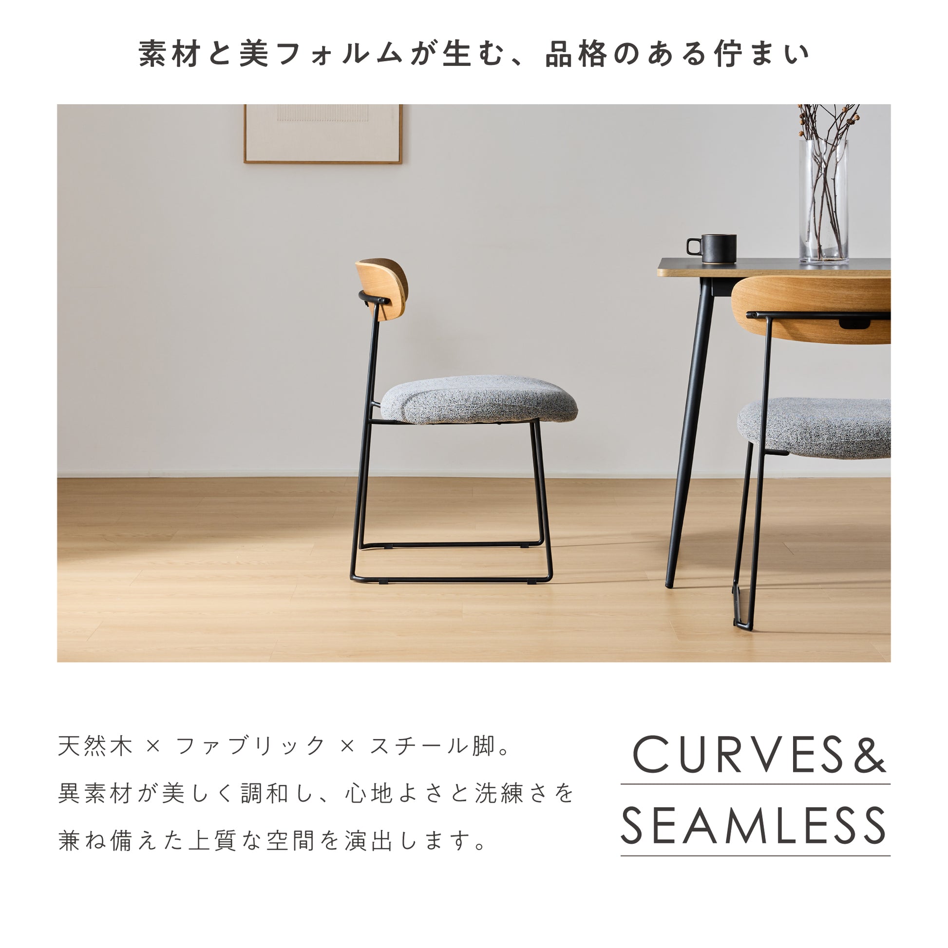 天然木の温もり×ファブリックの柔らかな風合い×スチール脚のシャープな質感。異なる素材が美しく調和し、心地よさと洗練さを兼ね備えた上質な空間を演出します。細部までこだわったデザインが、日常の暮らしに穏やかな美しさとリズムをもたらします。