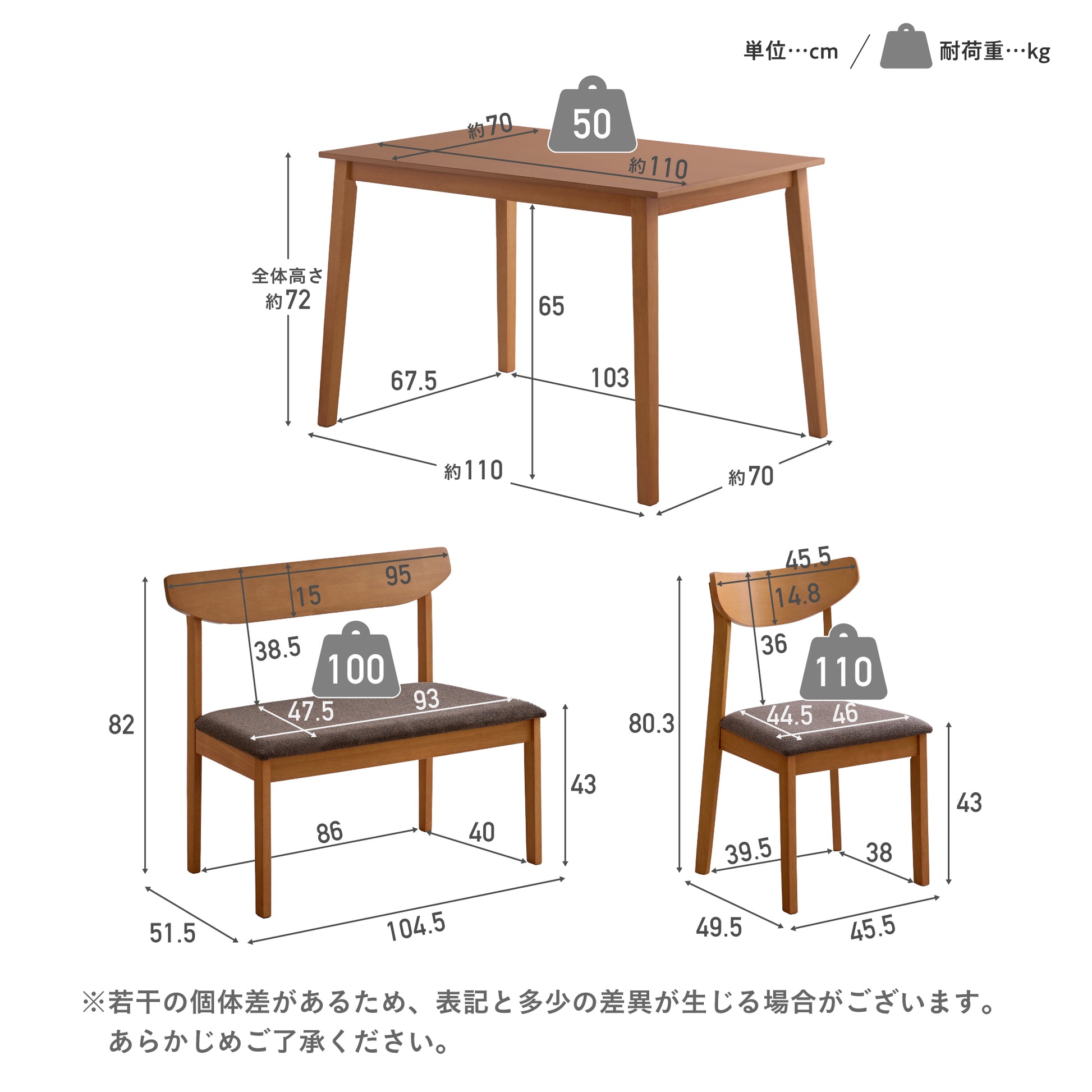 | テーブル / チェア※ /ベンチ 約50kg / 約110kg / 約100kg ※1脚あたりの耐荷重 |