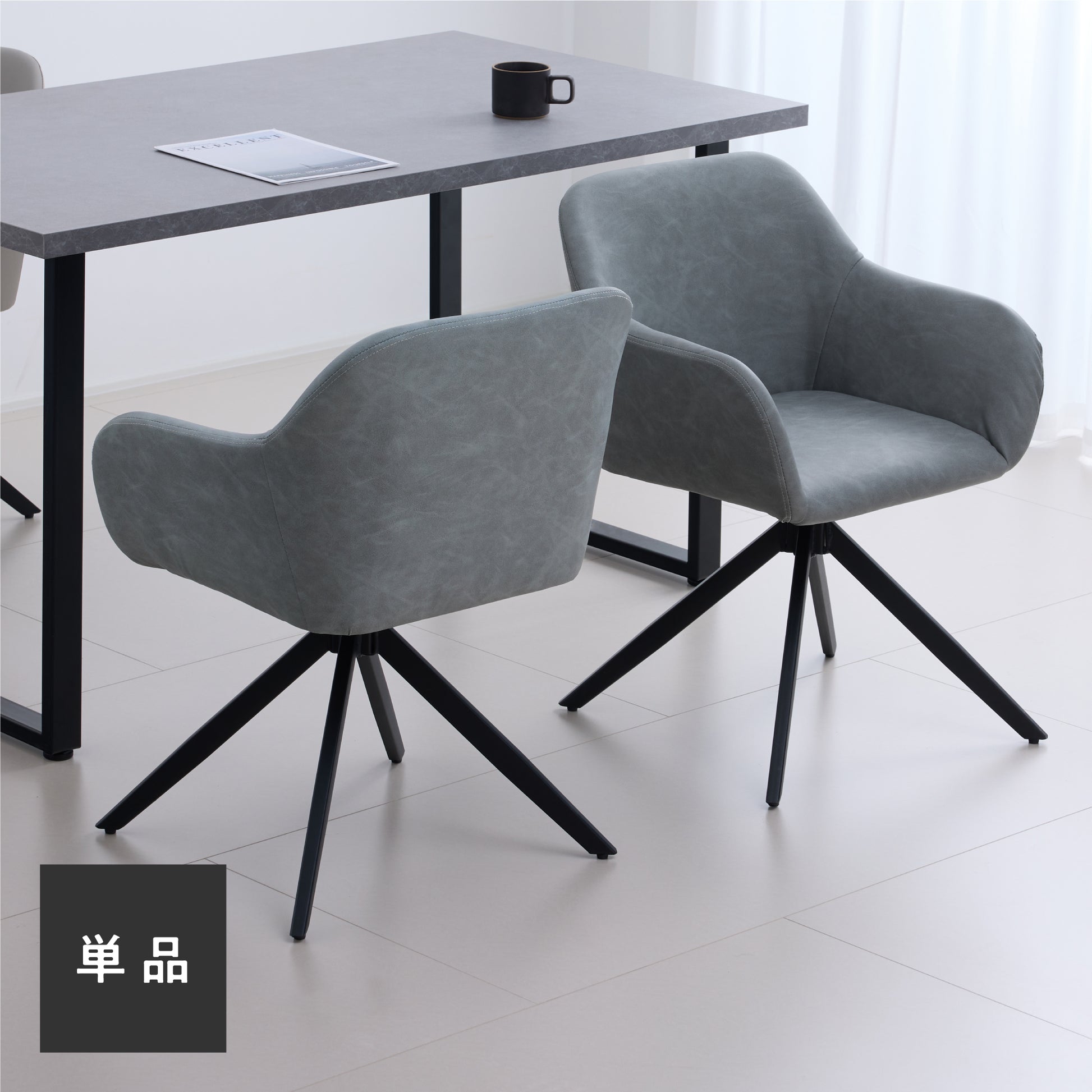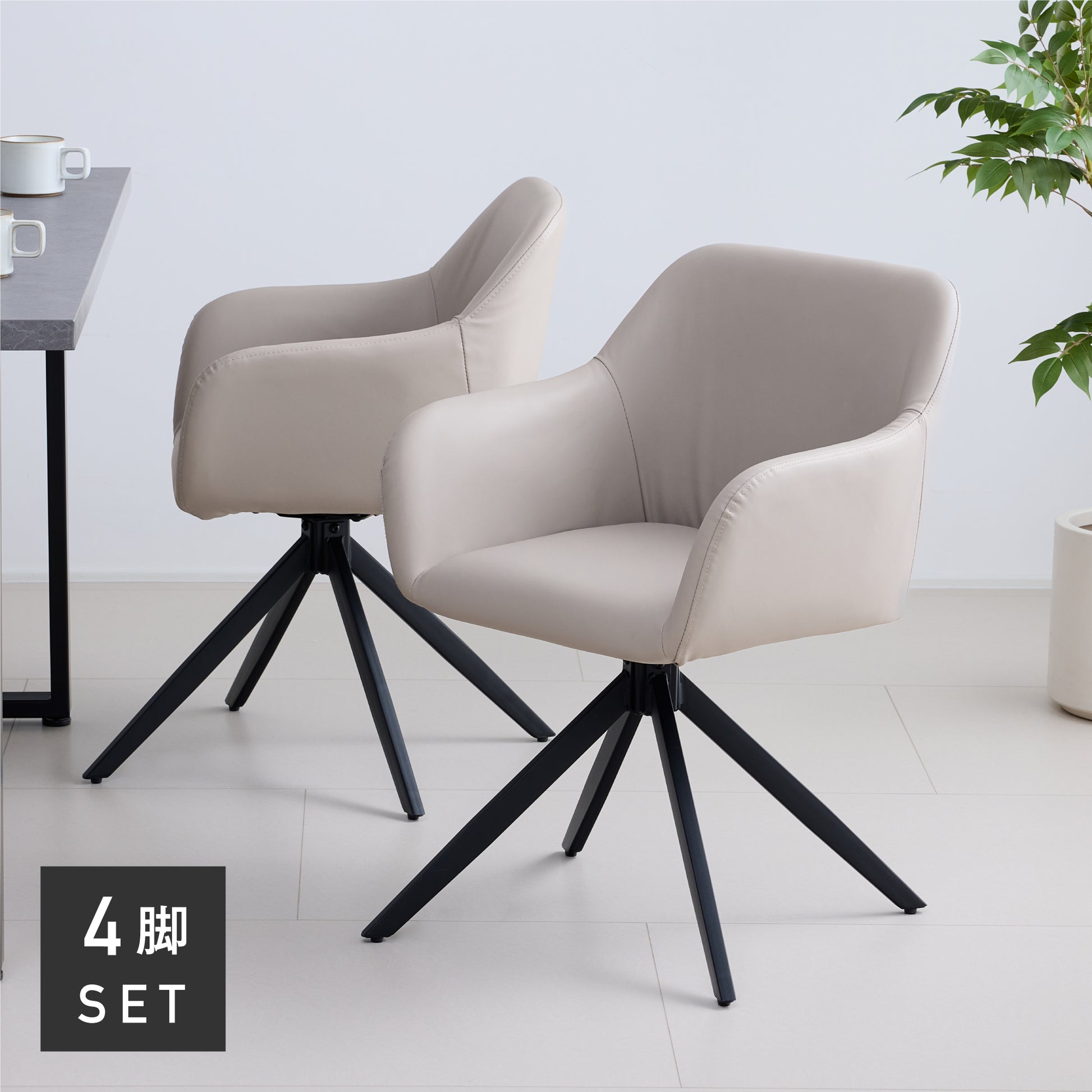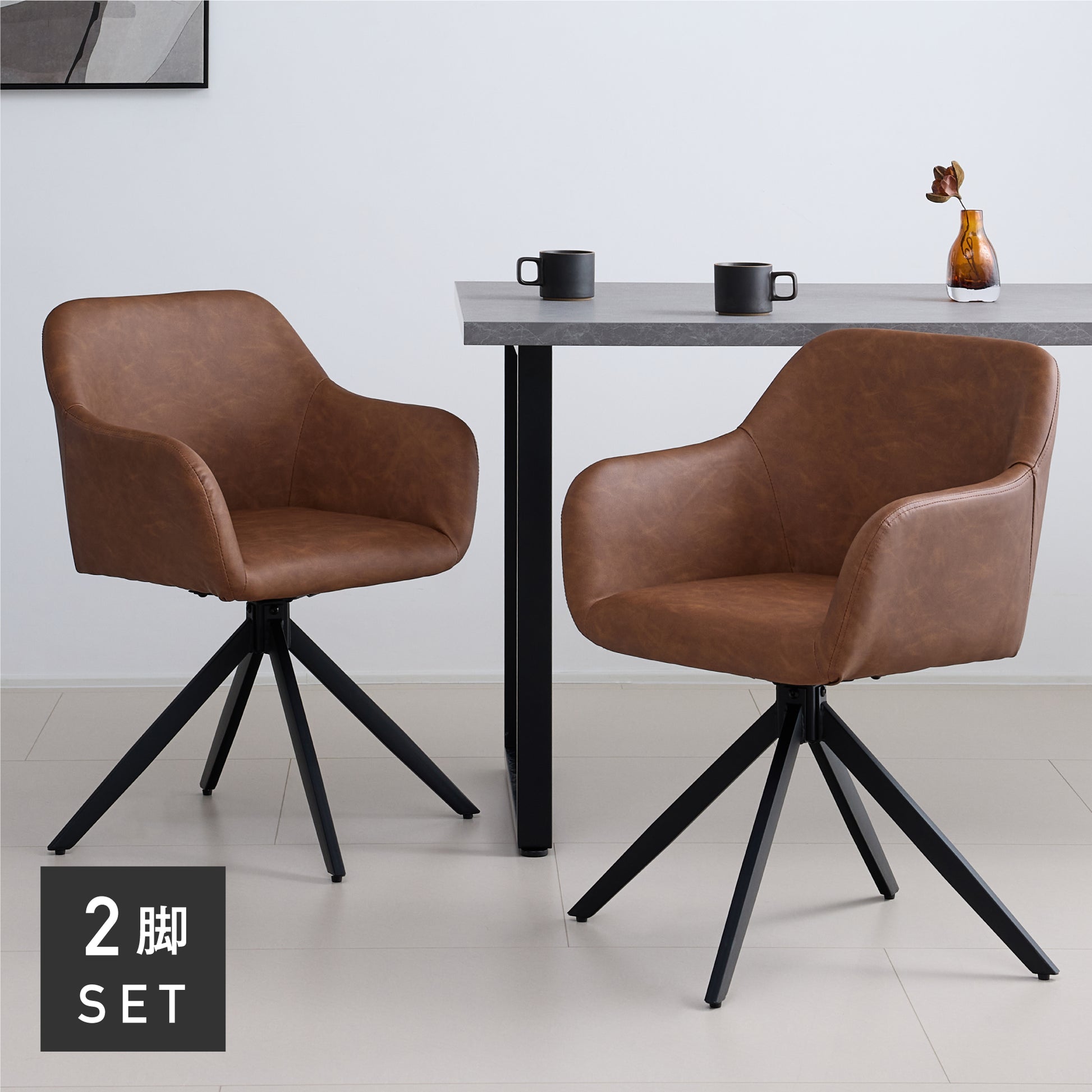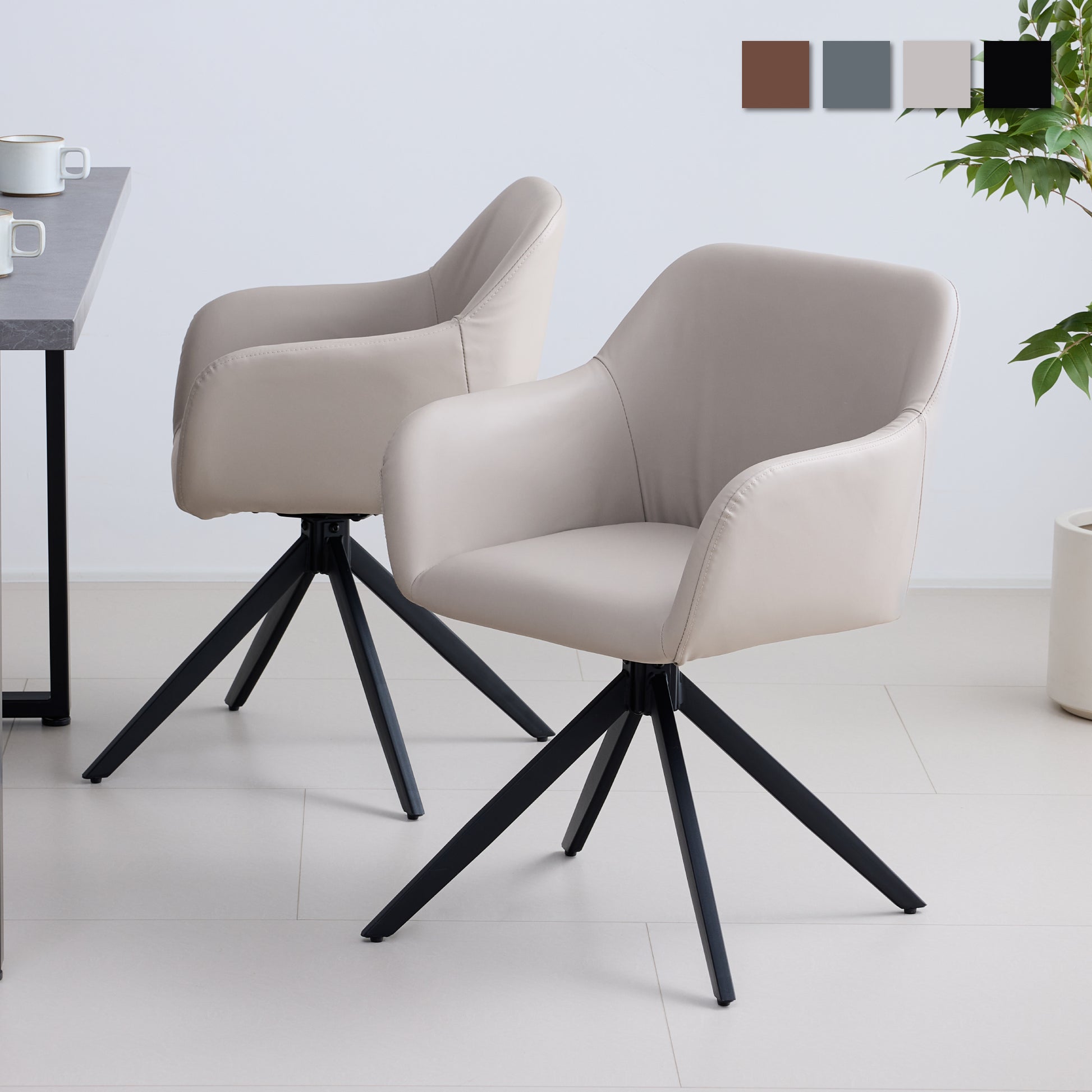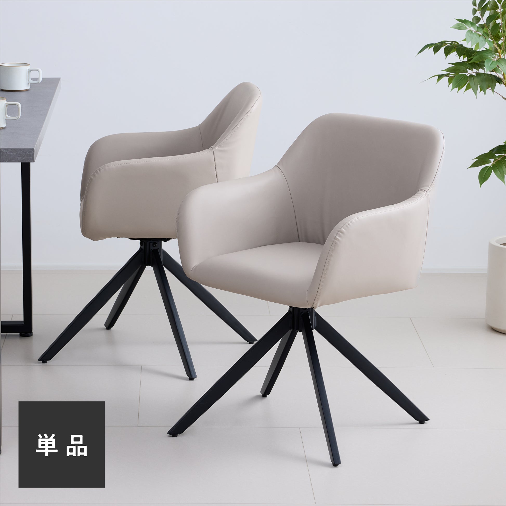 滑らかなPUレザーの座面と安定感のあるブラックスチールフレームで、座る時間も快適なダイニングチェア。回転式座面により、立ち座りや向きの調整が楽にできます。柔らかな曲線のシルエットと身体にフィットする座面・背もたれ、滑らかなアームレストにより、長時間座っても疲れにくい設計に。座面はゆったり、でも空間に重さを感じさせないデザインで、ダイニングを上品に整えます。
