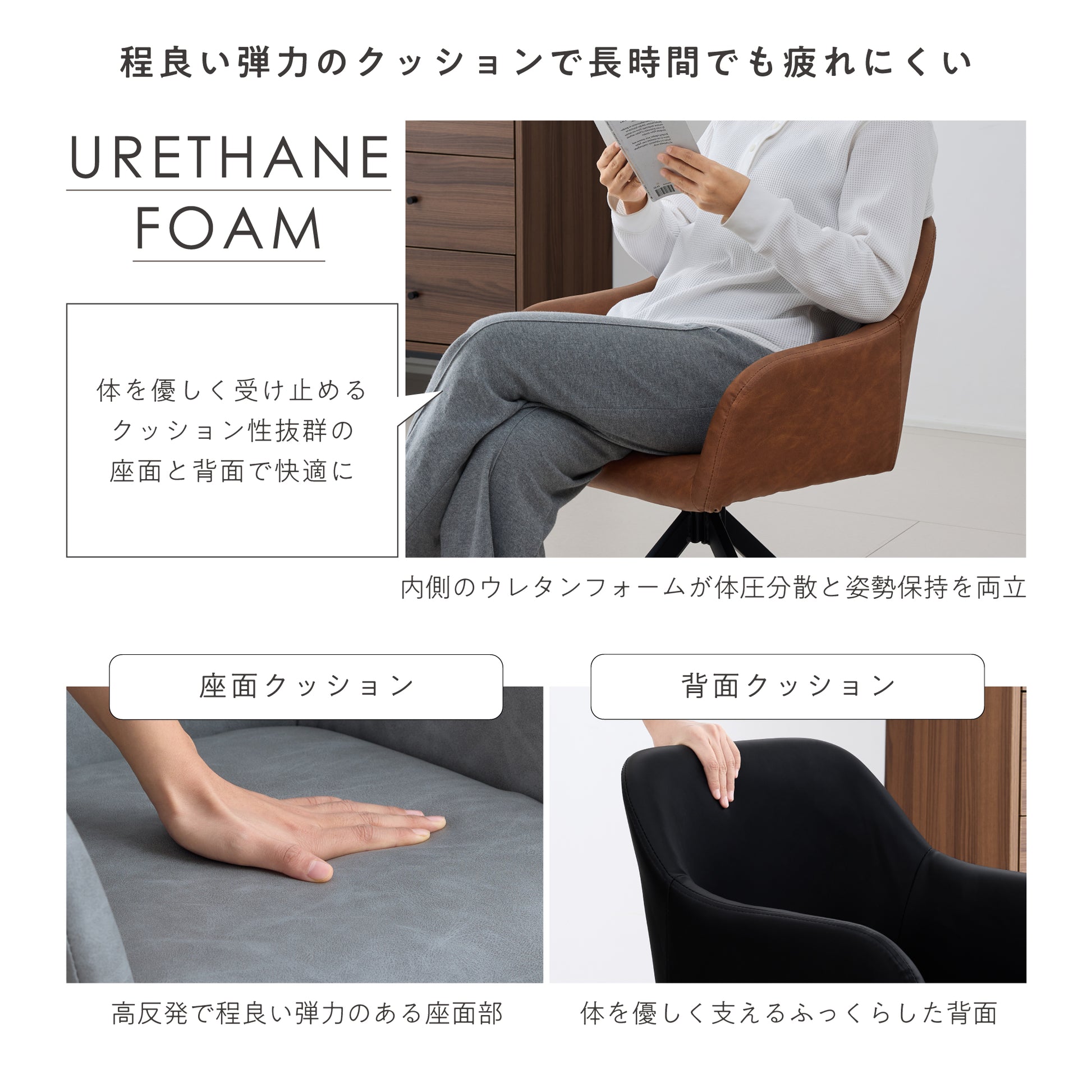 Function/02 | 程良い弾力のクッションで長時間座っていても疲れにくい