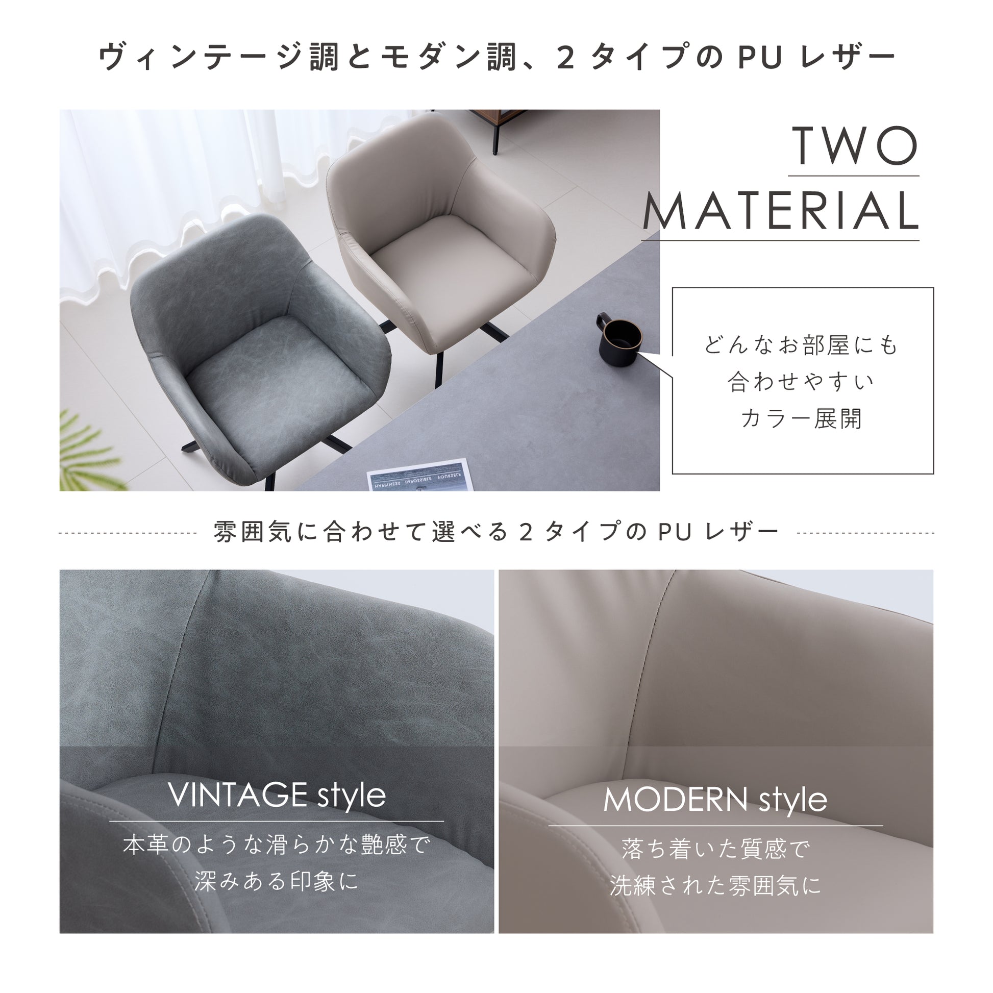 雰囲気に合わせて選べる、2タイプのPUレザー