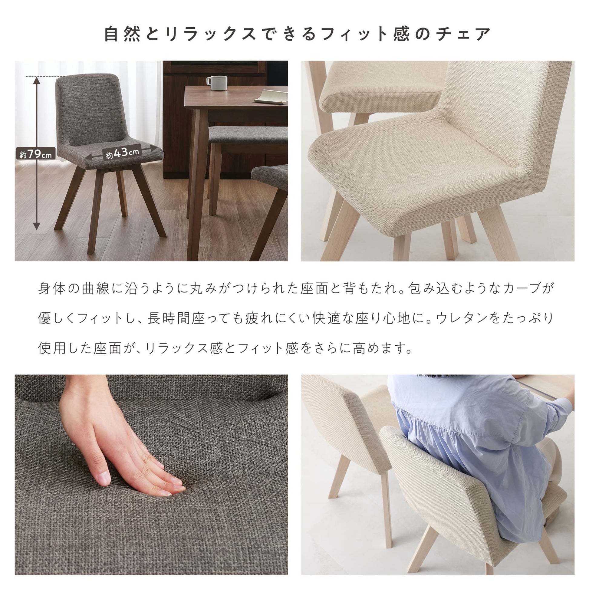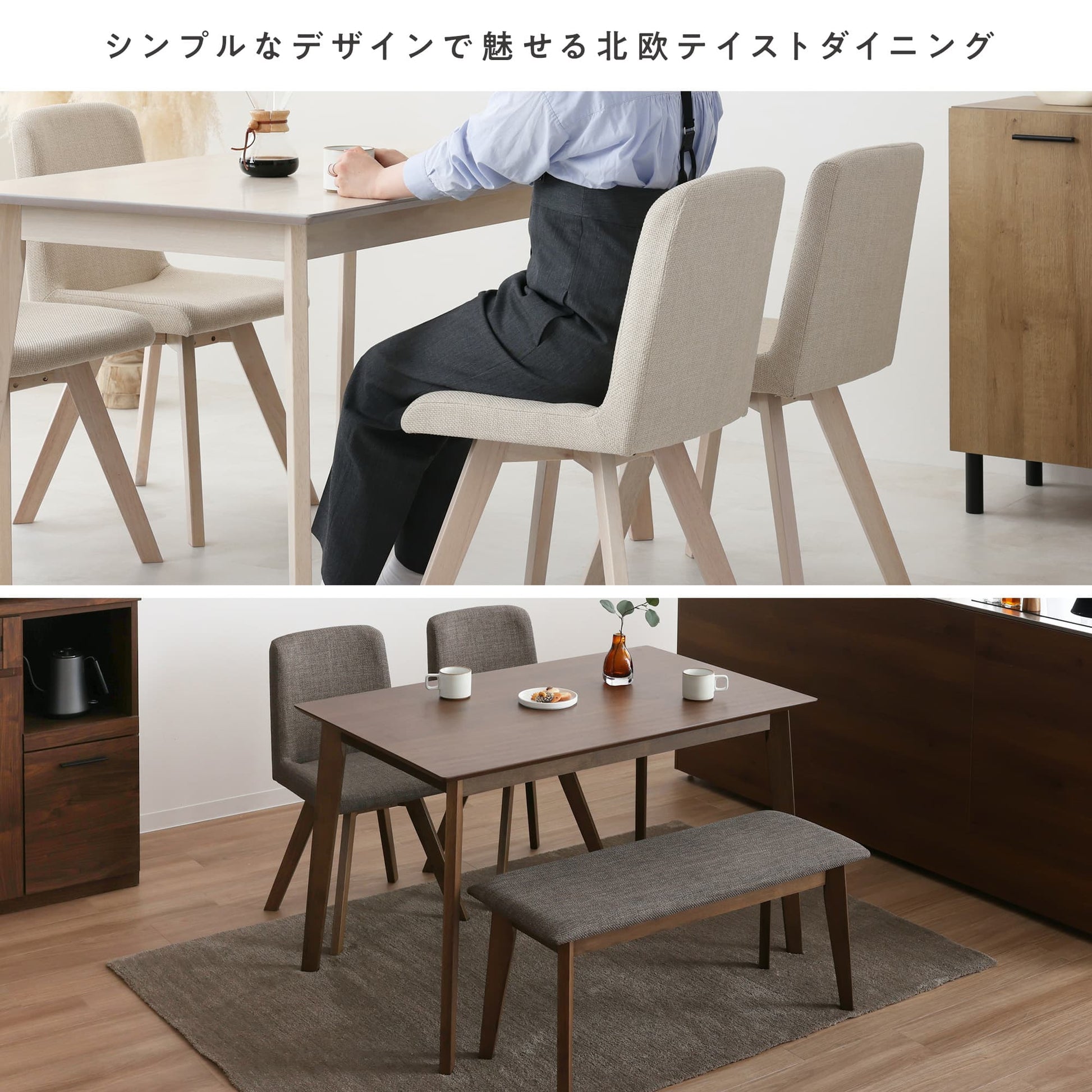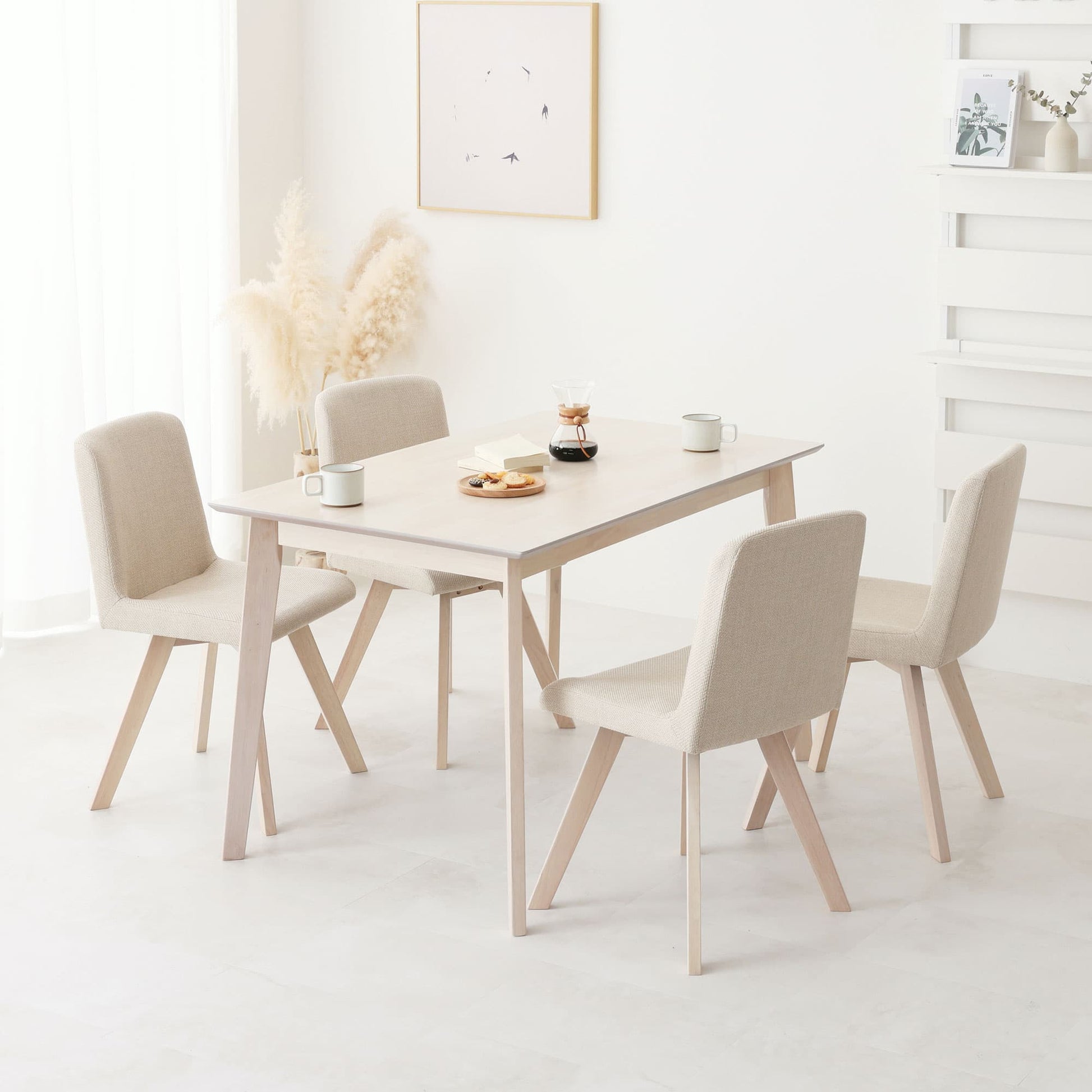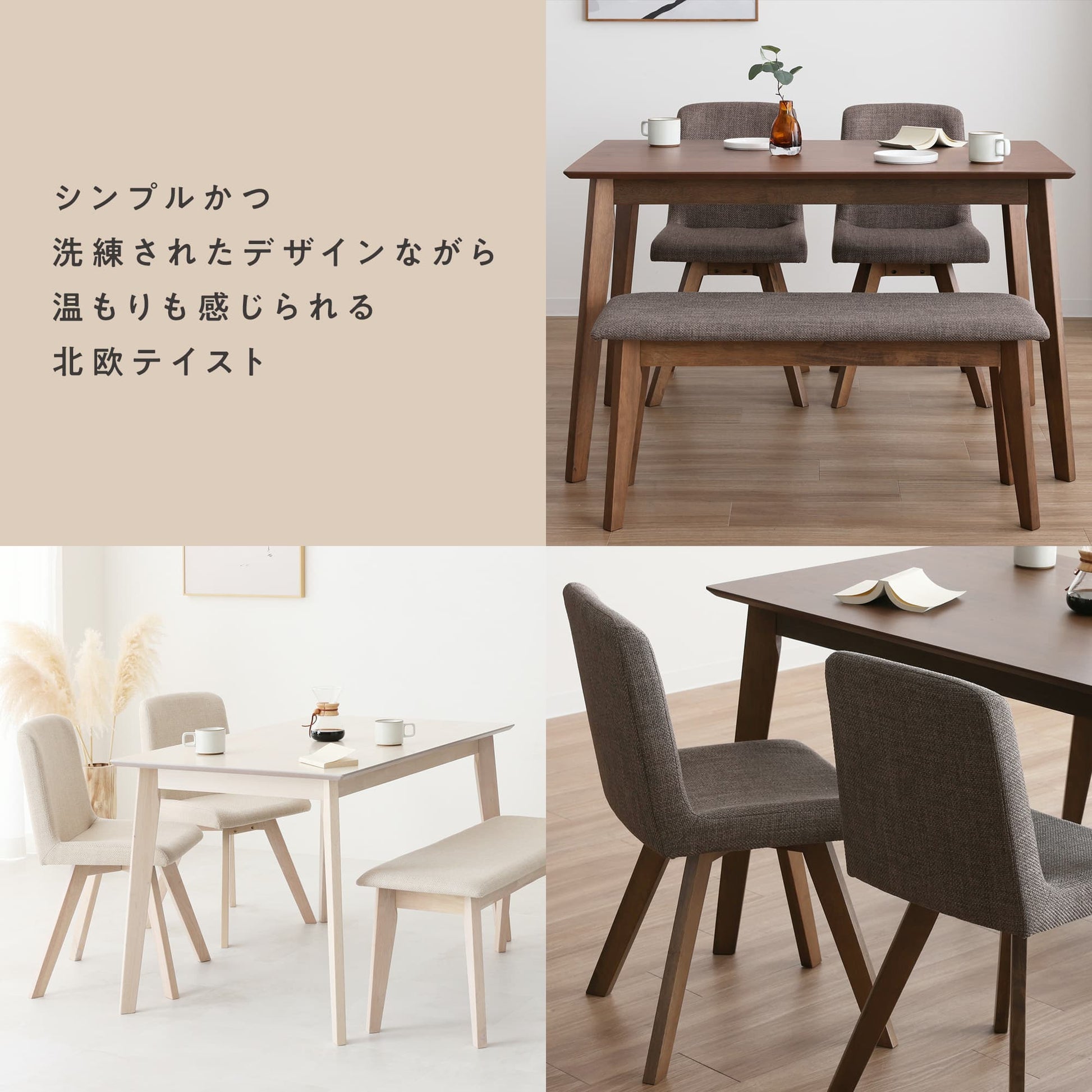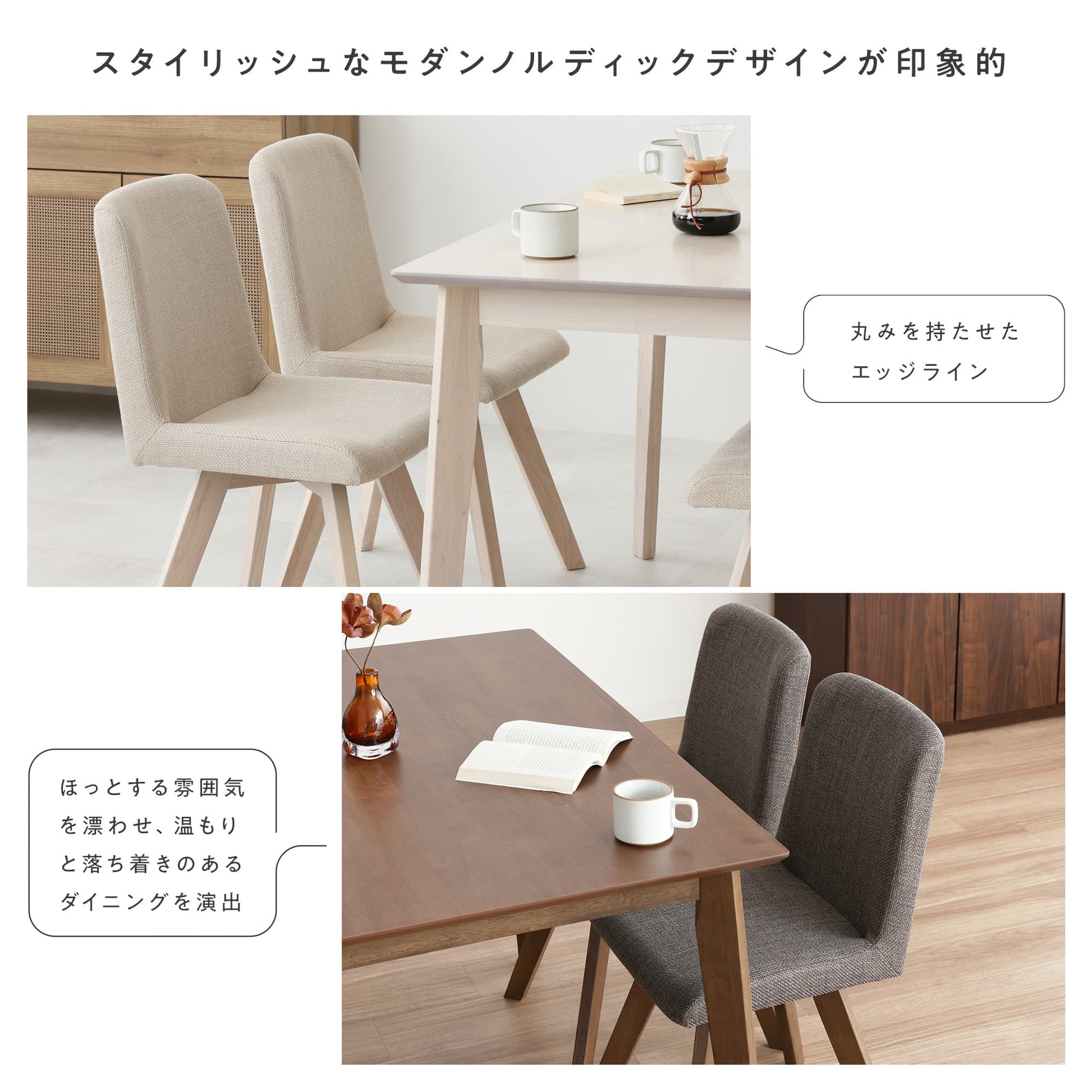 スタイリッシュなモダンノルディックデザインが印象的なダイニングセット。素朴で柔らかな素材感と色合いに、シンプルなデザインながら程良い存在感でお部屋を選ばずインテリアに馴染みます。丸みを持たせたエッジラインがどこかほっとする雰囲気を漂わせ、温もりと落ち着きのあるダイニングを演出します。