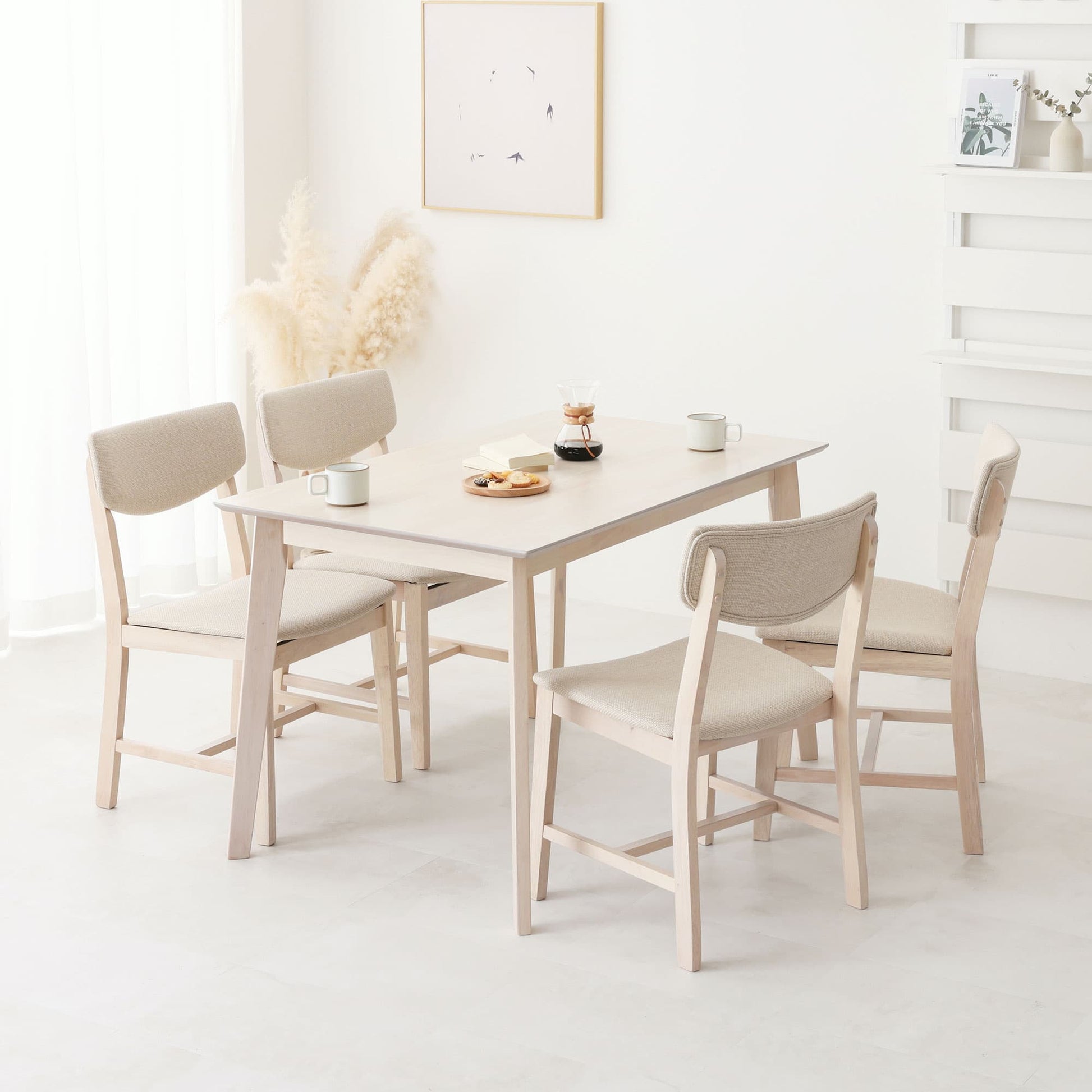 スタイリッシュなモダンノルディックデザインが印象的なダイニングセット。素朴で柔らかな素材感と色合いに、シンプルなデザインながら程良い存在感でお部屋を選ばずインテリアに馴染みます。シンプルながらもどこかノスタルジックを感じるディテールが、温もりと落ち着きのあるダイニングを演出します。