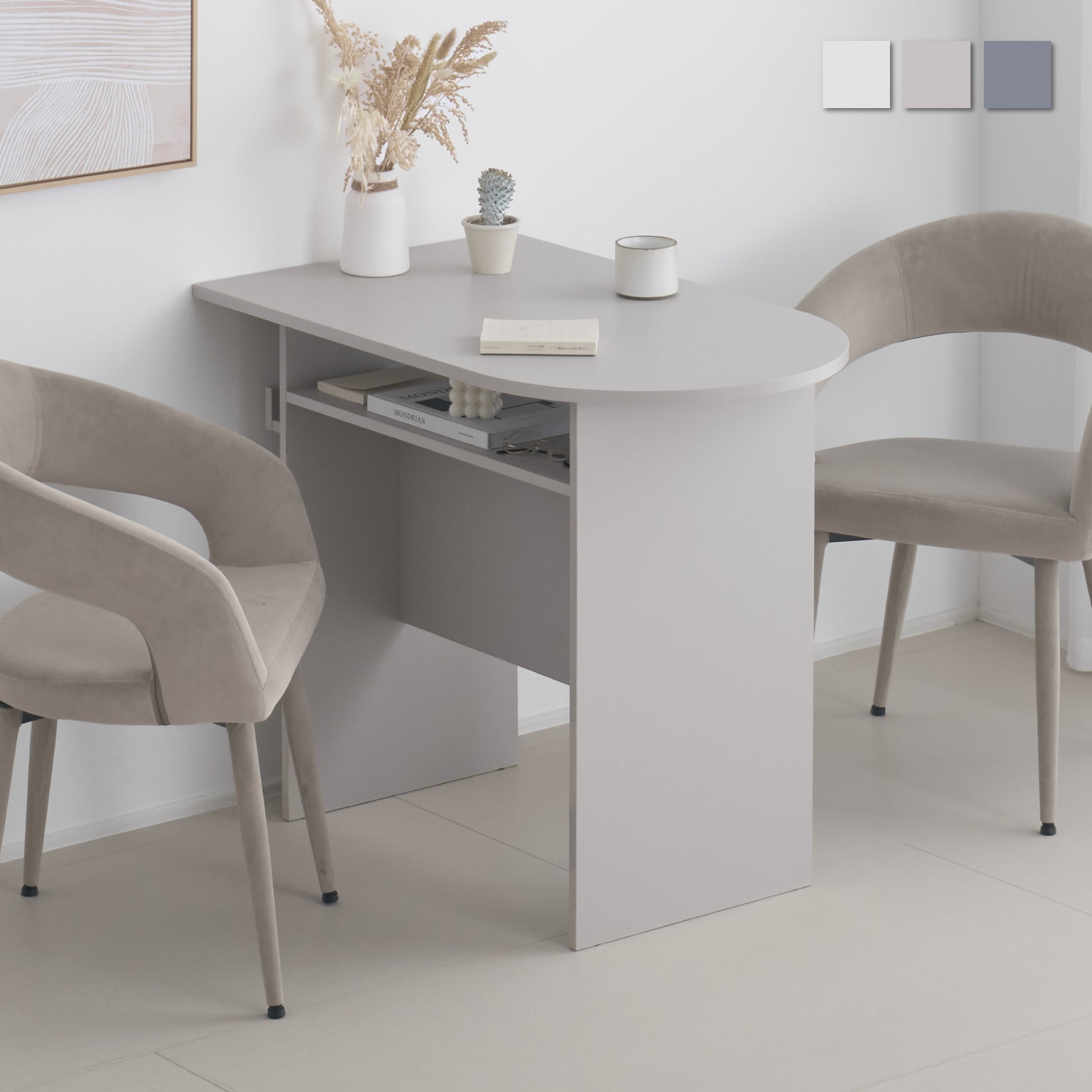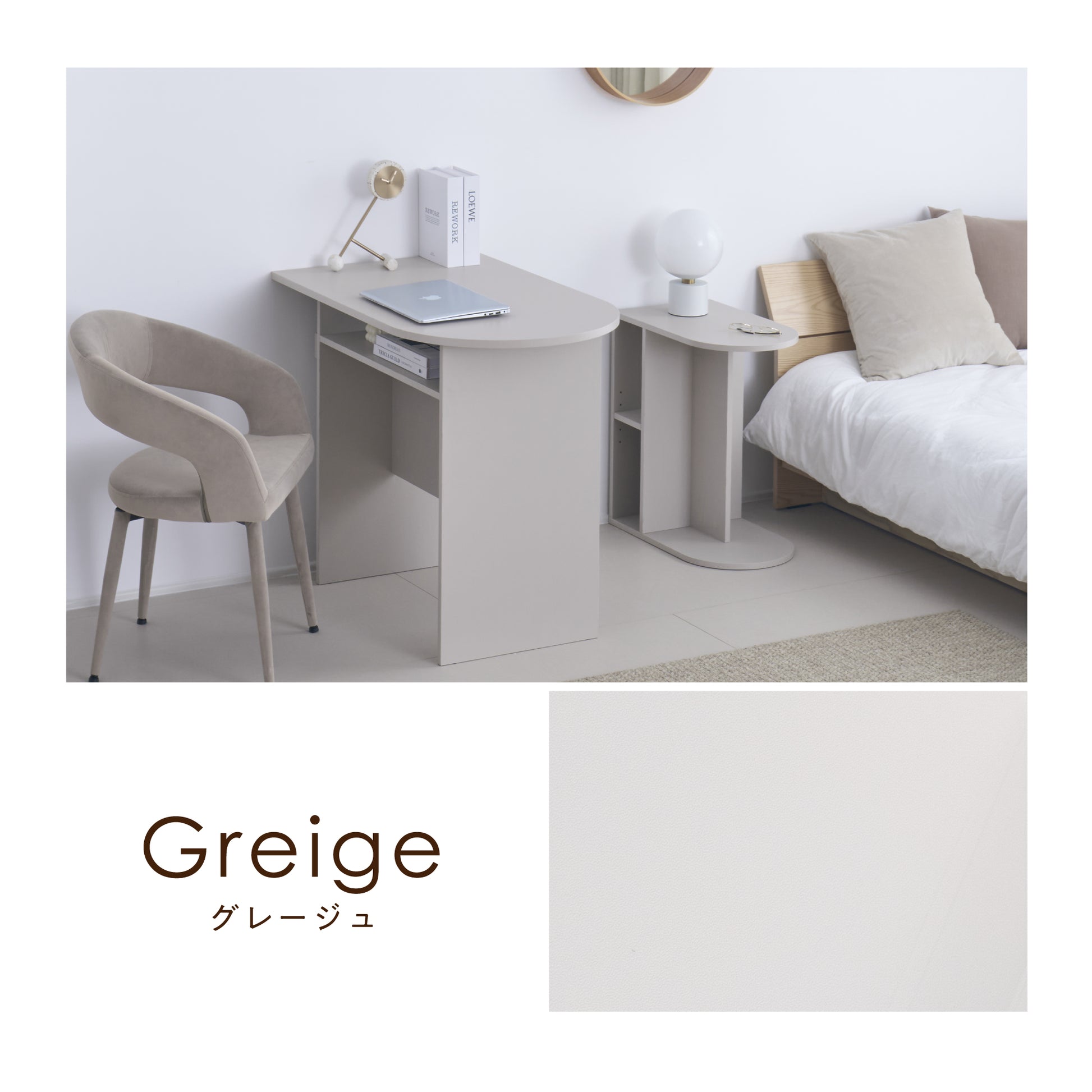デスクCirllo-Dは、あなたの暮らしに寄り添うパートナーとしてデザインされました。シャープな直線と柔らかな曲線が絶妙に融合したフォルムは、どんな空間にも自然に溶け込み、上質な品格をプラスします。ホワイト、グレージュ、グレーの3色から選べるカラーバリエーションは、インテリアに合わせてお選びいただけます。コンパクトなサイズながらも、2人でもゆったり使える天板は、ダイニングやワークスペース、メイクスペースとして多用途に活躍します。デスク下の収納棚は、手元に置きたい小物をすっきり収納でき、コードスリット付きのタップ収納は、配線をすっきり整理します。頑丈設計で安心して使用でき、ねじ穴の目隠しシールや傷防止フェルトなど、細部にまでこだわりを持たせました。シリーズで揃えることで、統一感のあるハイセンスな空間を演出できます。あなたの生活をもっと便利に、もっと心地よくする一台です。
