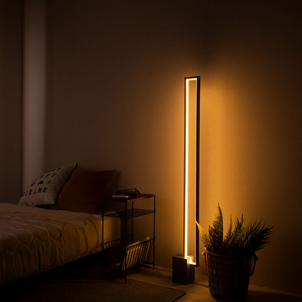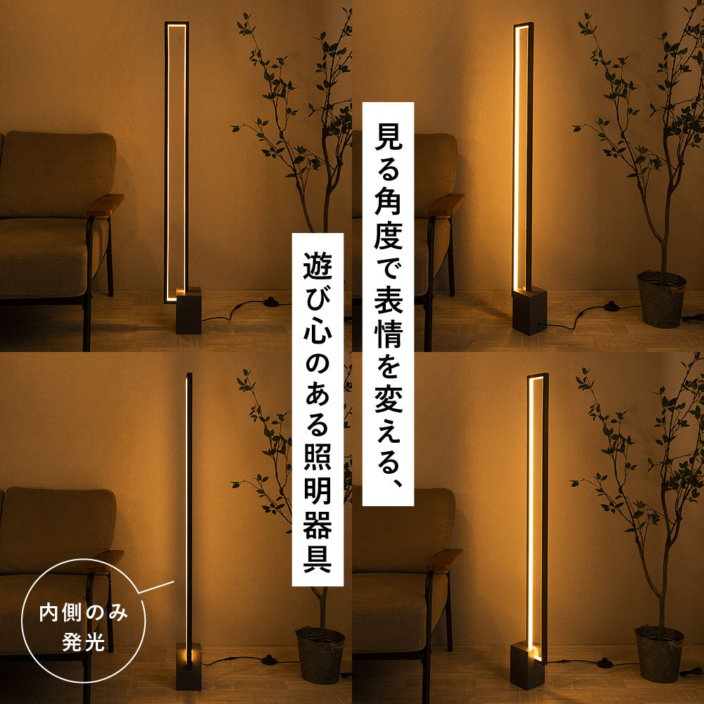 ペースの幅わずか15cmほど、設置場所を選ばず好きな位置に置くだけで設置が完了します。発光部分は縦の長方形になっており、内側にのみ発光するので、趣向を変えて本体の向きを調整すると、壁に浮かぶ陰影がより顕著に表れたり、光が隠されたり、空間にメリハリがでます。同じ配置でも見る角度によって違う表情が見えるので飽きにくく、インテリア照明として個性がある、とても遊び心満載なインテリア照明です。