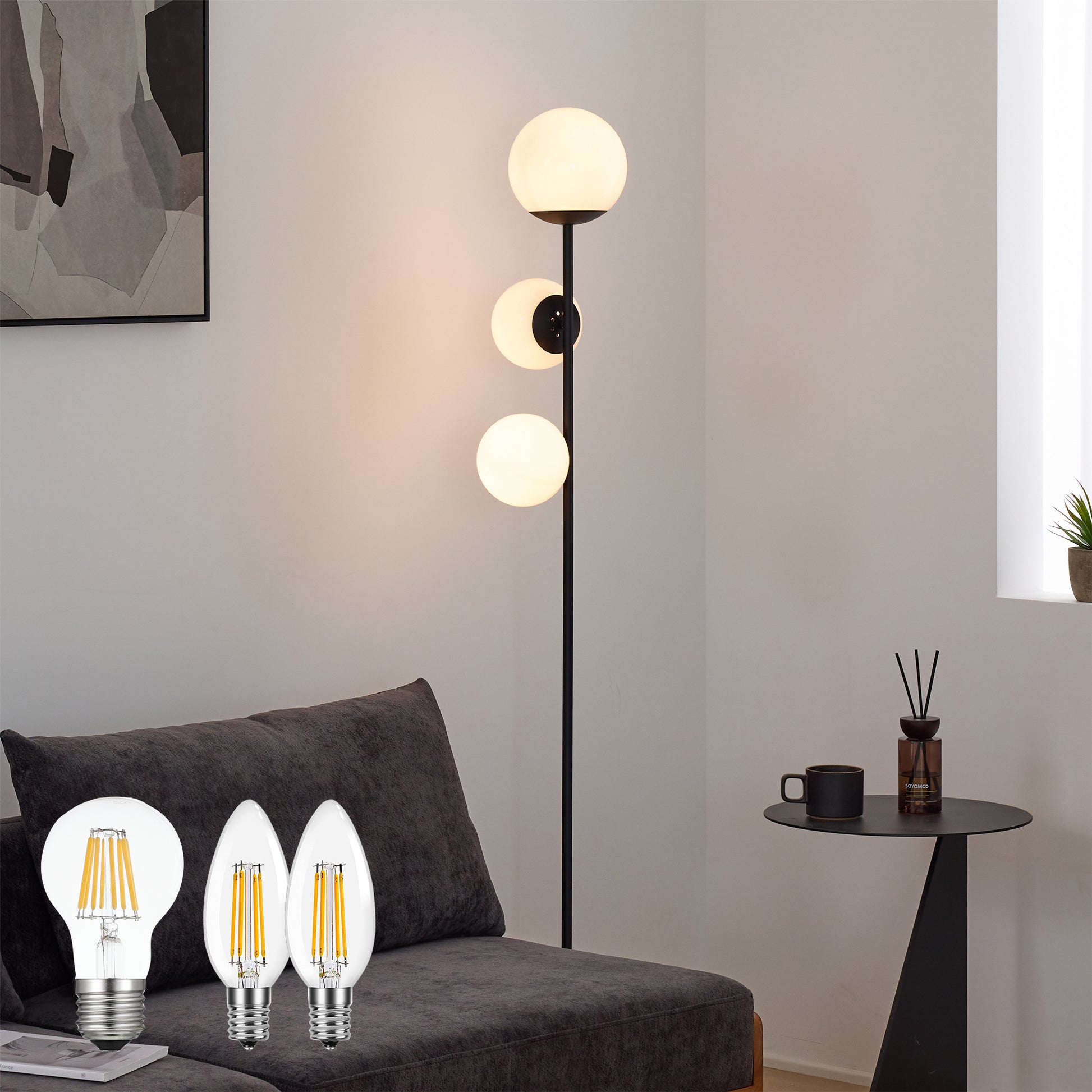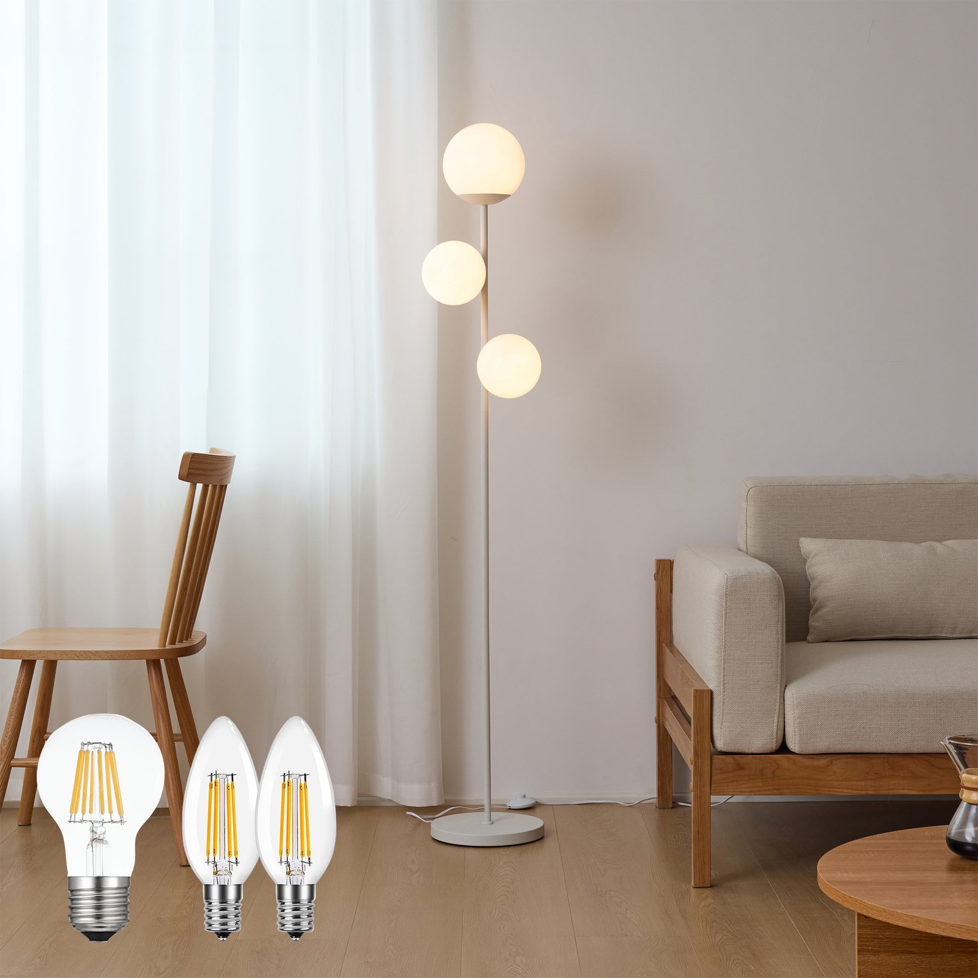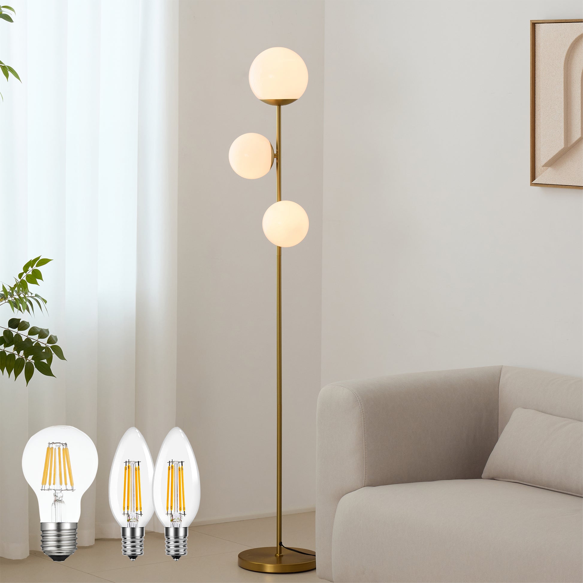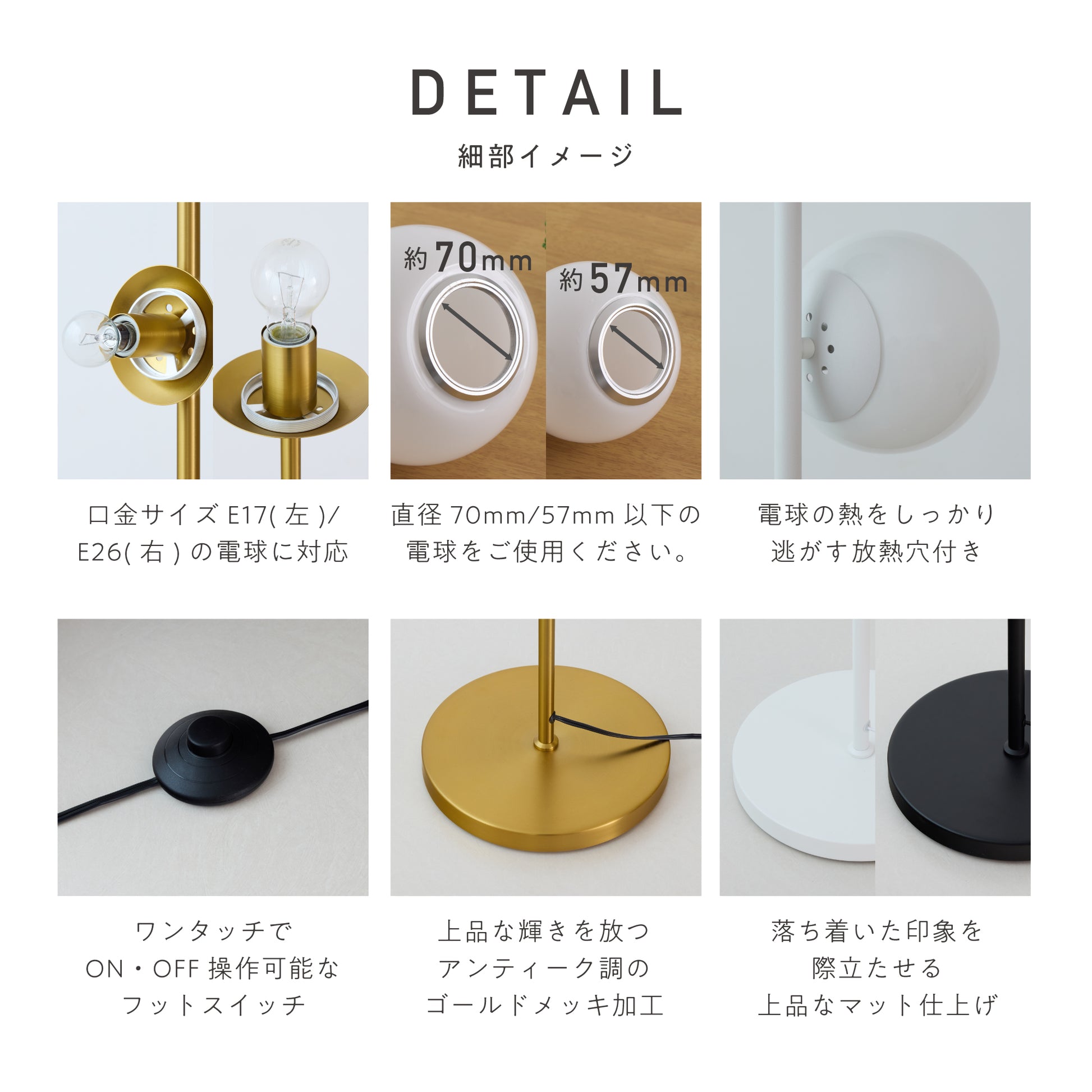 丸みのあるガラスシェードが光を優しく拡散し、空間全体を温かく包み込みます。なめらかなフォルムにより光は自然と四方八方へと広がり、リビングや寝室に安らぎのある心地良い雰囲気を演出。異なる高さに配置された3つのガラスシェードが立体的な光のレイヤーを生み出し、フロアライトとしてはもちろん間接照明としても活躍するなど、多彩な表情を楽しめます。