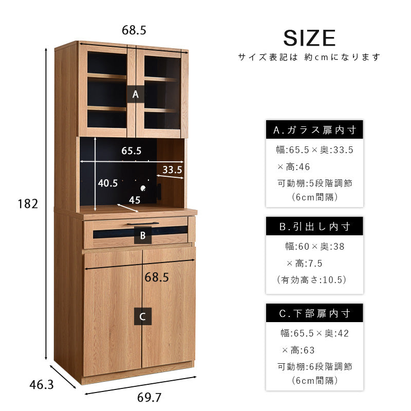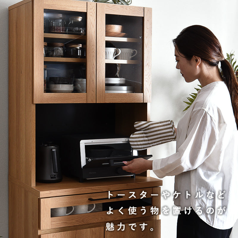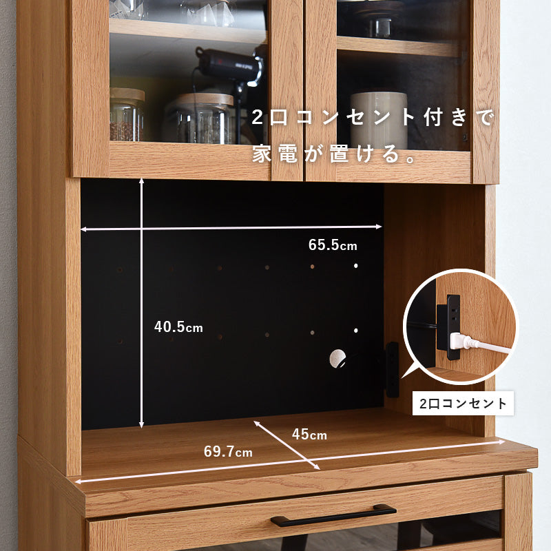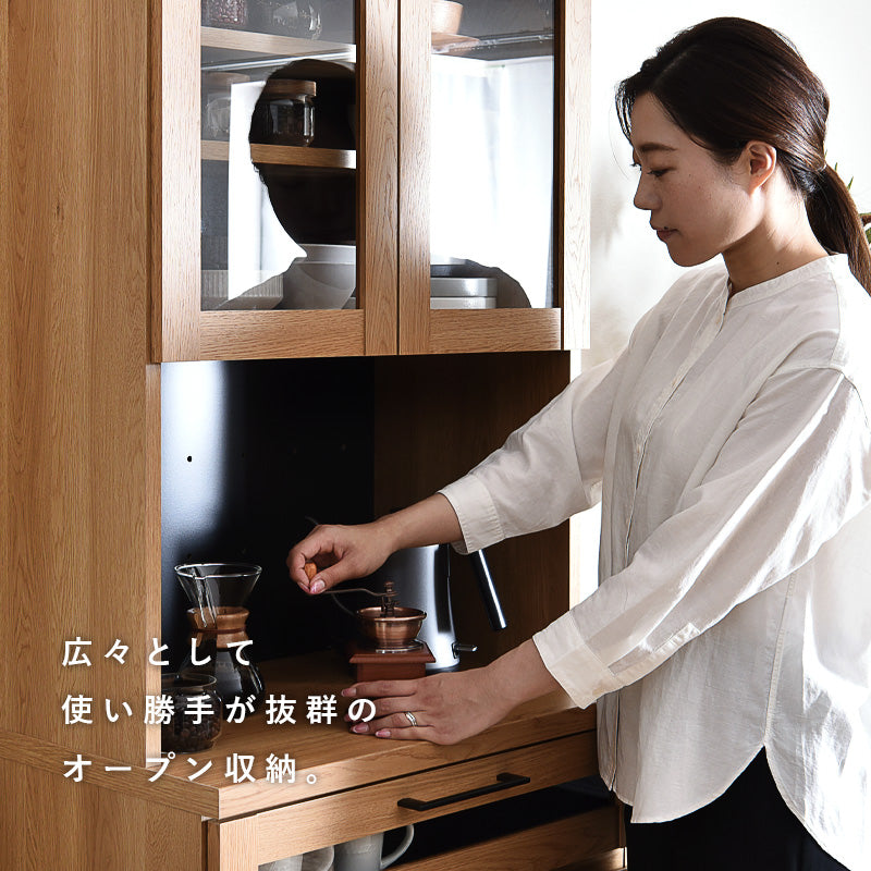 横幅は約69.7cmで、オープンスペースでレンジやコーヒーメーカーなどの家電を置いたり作業用スペースとして自由に使える広さ。よく使うお気に入りの家電を置いたままにできるのでキッチンが広々と快適に使えます。