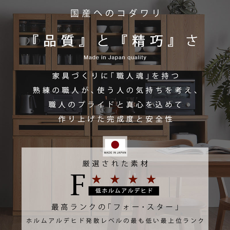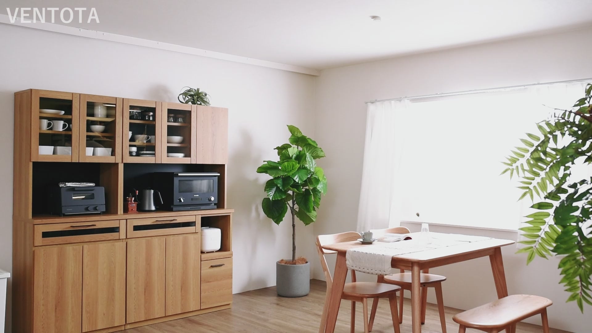 キッチン家電や食器類や小物などひとまとめに収納ができる充実した収納スペースを搭載。収納だけでなく使いやすさも抜群なキッチンボード。