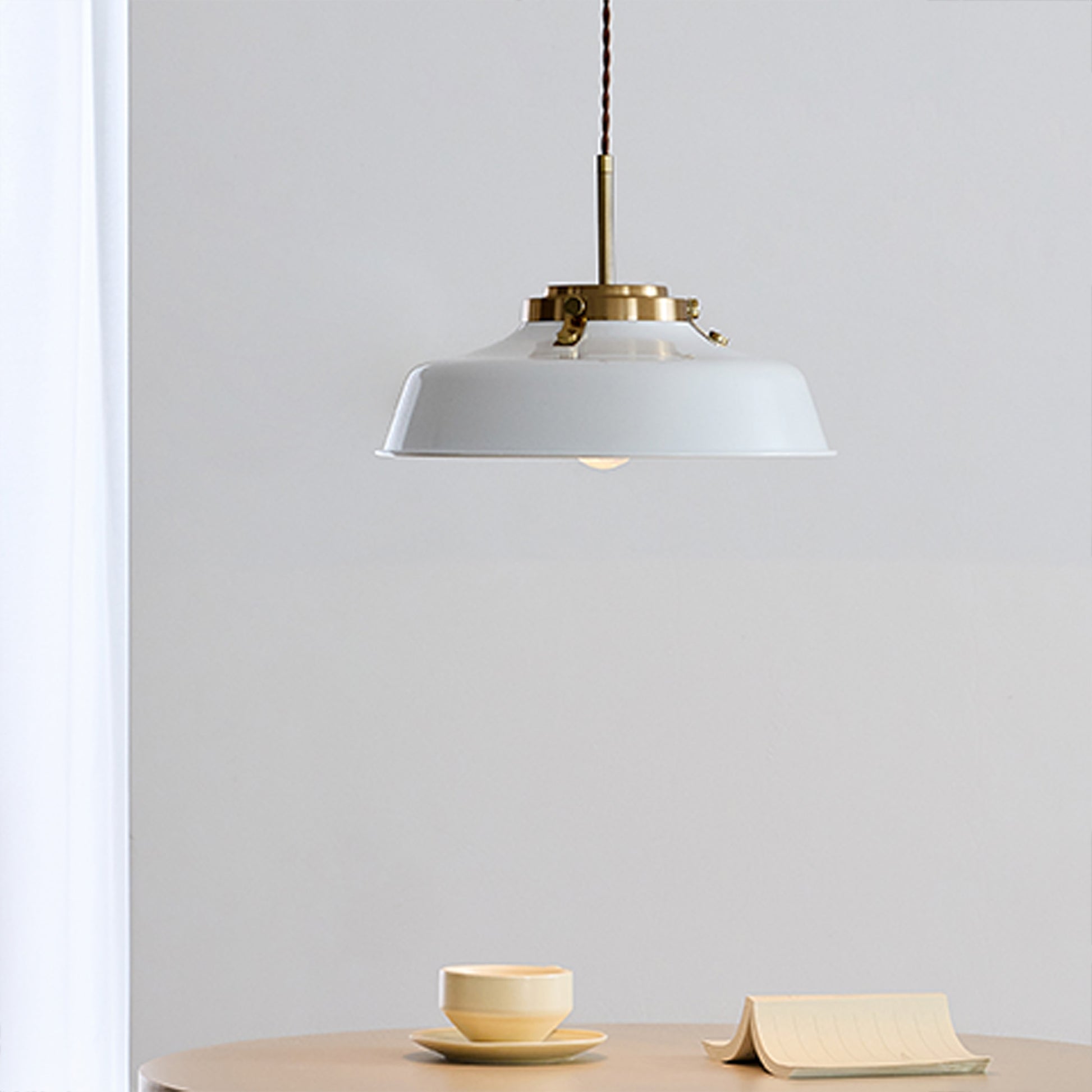 ノスタルジックなフォルムとヴィンテージ感のあるゴールドのアクセントが、昼は自然光で美しい陰影を、夜は柔らかな灯りで印象的に演出。インダストリアルなフォルムながらも洗練された優美さも感じさせ、日々の暮らしに調和と安らぎを与えてくれる照明です。