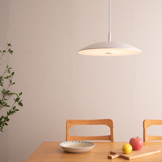 丸みのある優しいフォルムを採用し、フレームと丸いシェードが柔らかい印象を与えます。ダイニングや寝室など、様々な空間にマッチし、心地よい雰囲気を作り出します。どんなスタイルのお部屋にも自然に溶け込むデザインです。