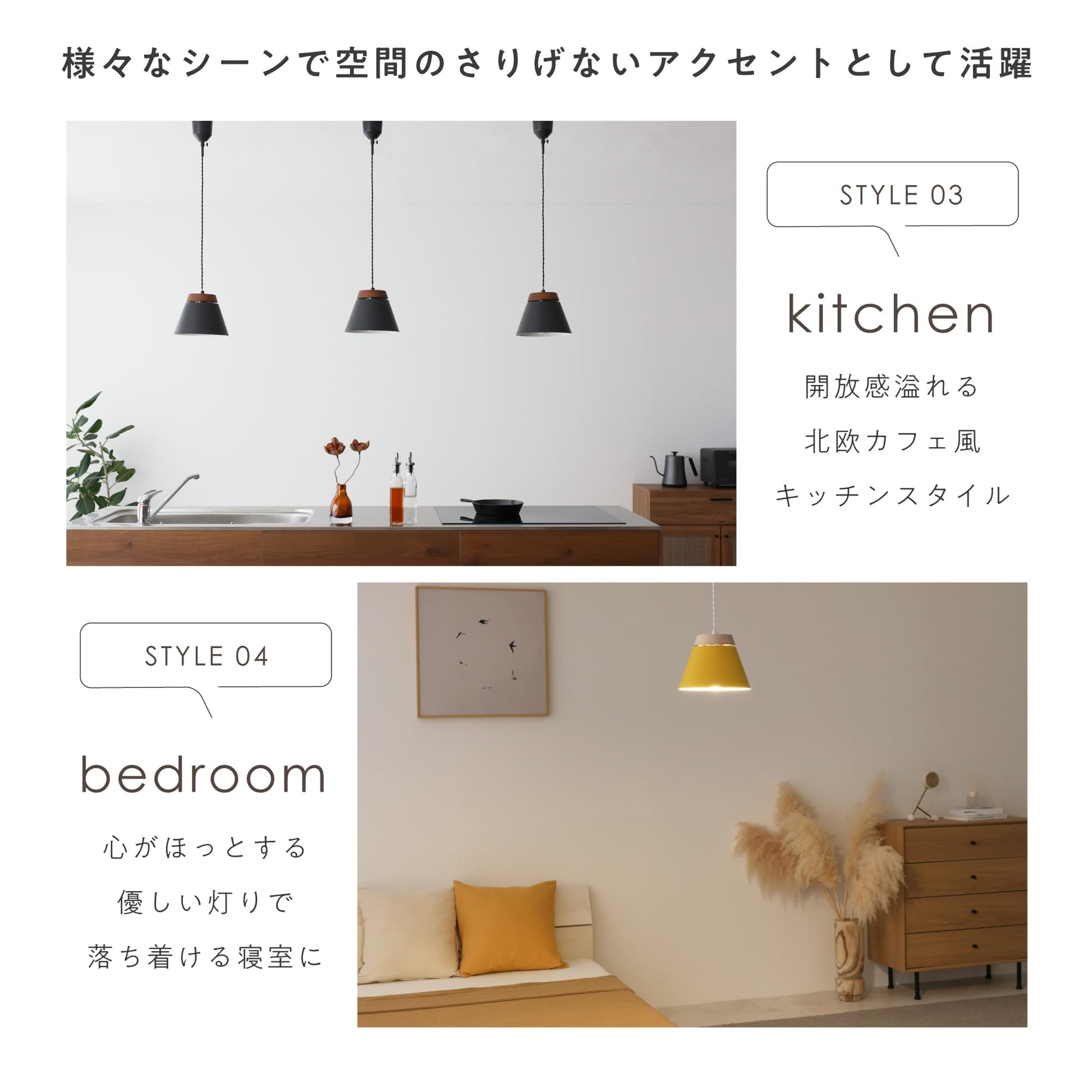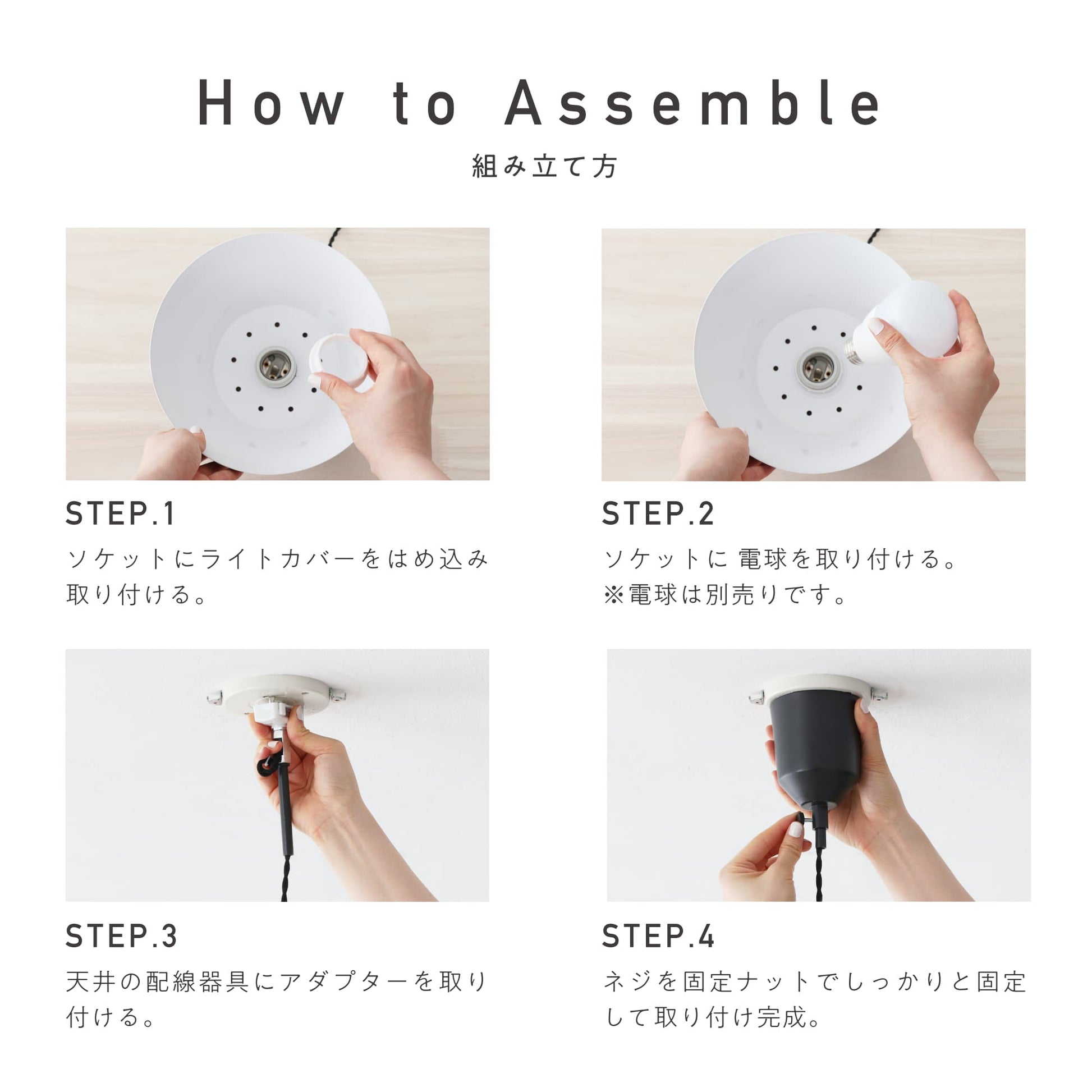 コードの長さは簡単に調節が可能。天井の高さやお好みに合わせて自由に設置できるので、最適な照明環境を実現。取り付けも簡単な4ステップで、気軽にお部屋の雰囲気を変えることも◎余ったコードをまとめられるクリップ付きで、見た目もすっきりと。
