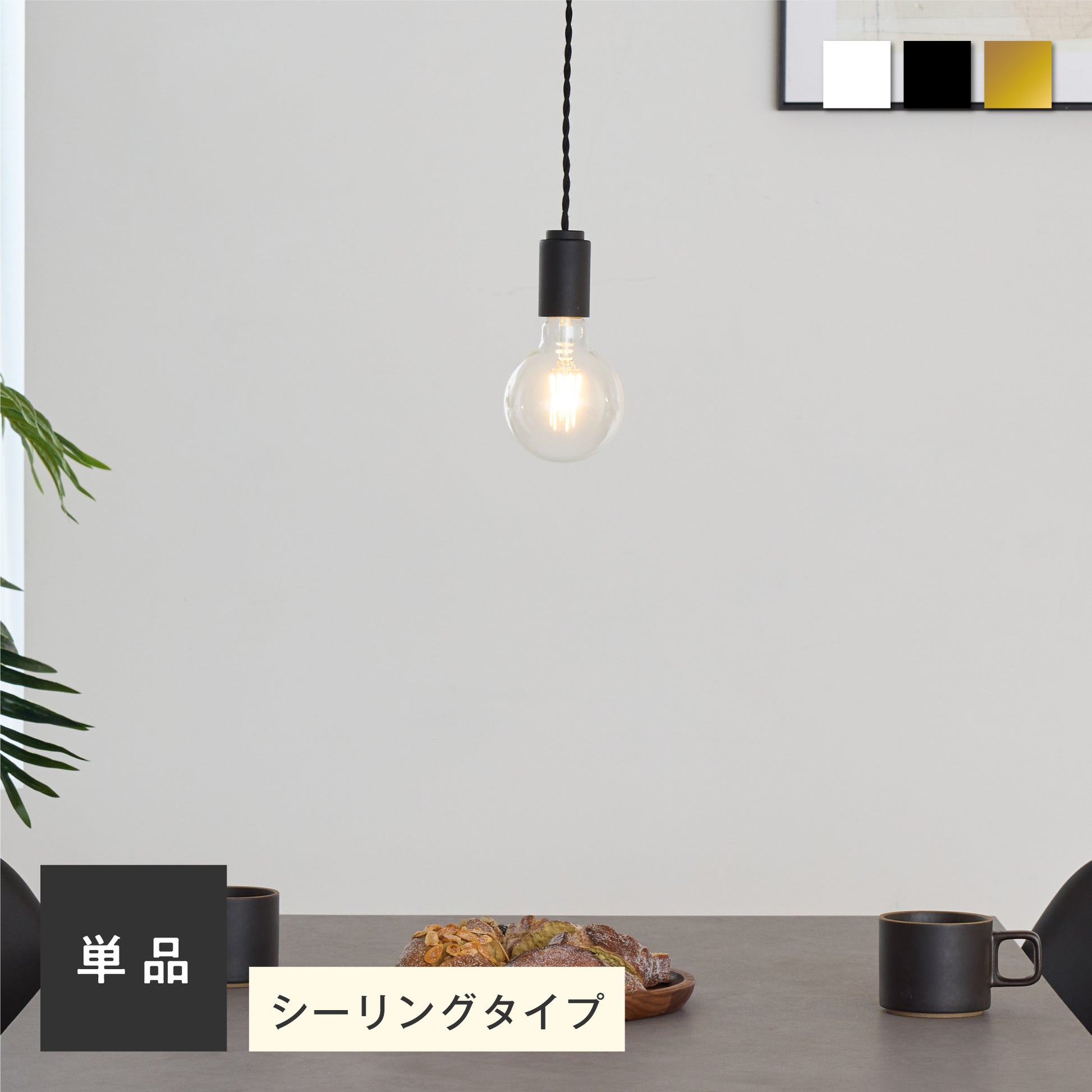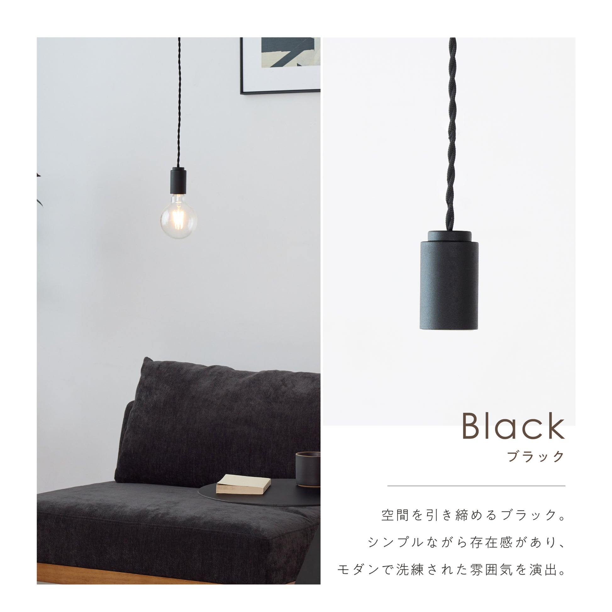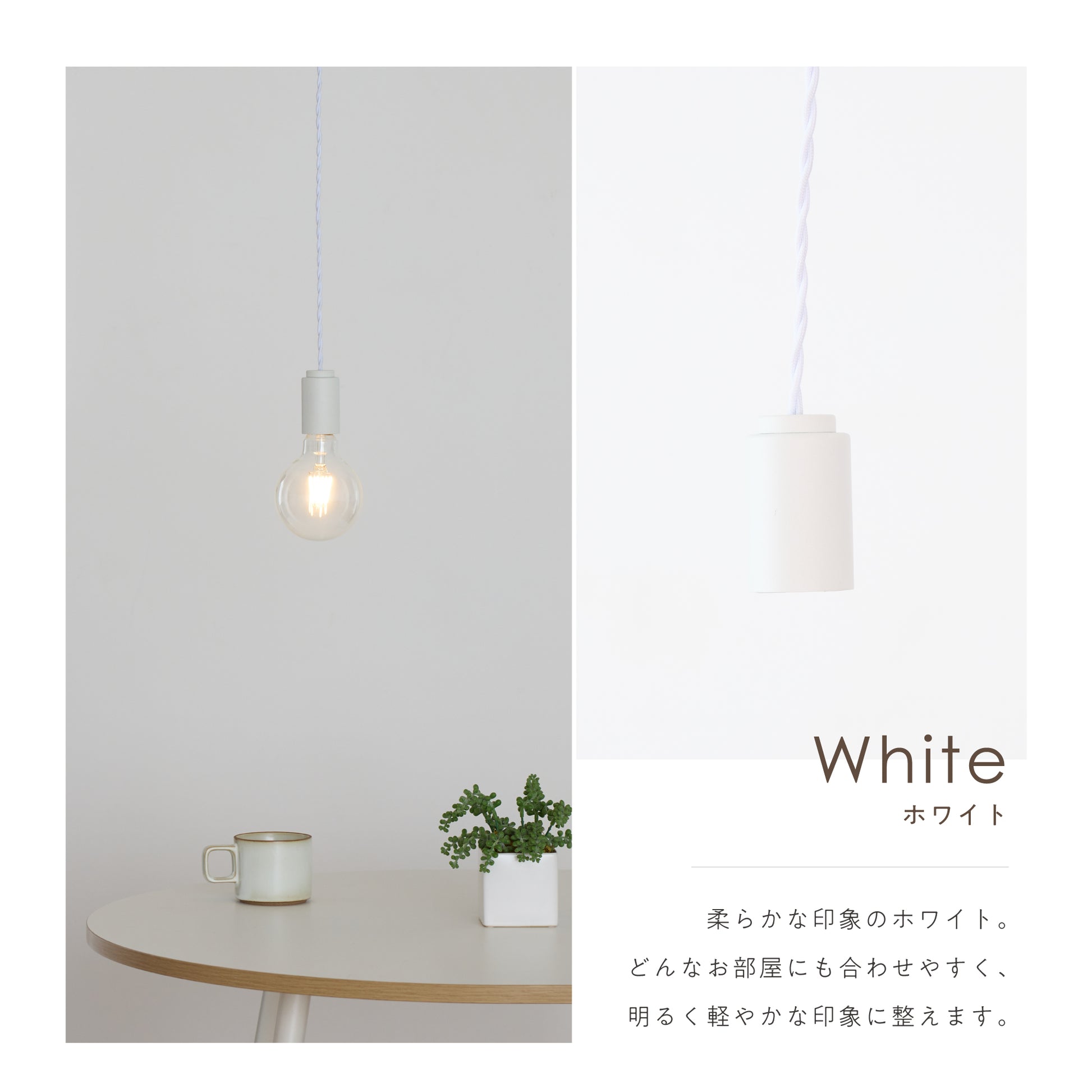 シェードを持たないシンプルなソケットデザインにより、使用する電球の種類や形状を自由に選ぶことができます。当店オリジナルのフィラメントLED電球だと、ヴィンテージ感漂う灯りに。調光調色機能付きのフィラメントLED電球なら、シーンに応じて雰囲気を自在に変えられます。選ぶ電球によって、空間にさまざまな表情を生み出す自由度の高い照明です。