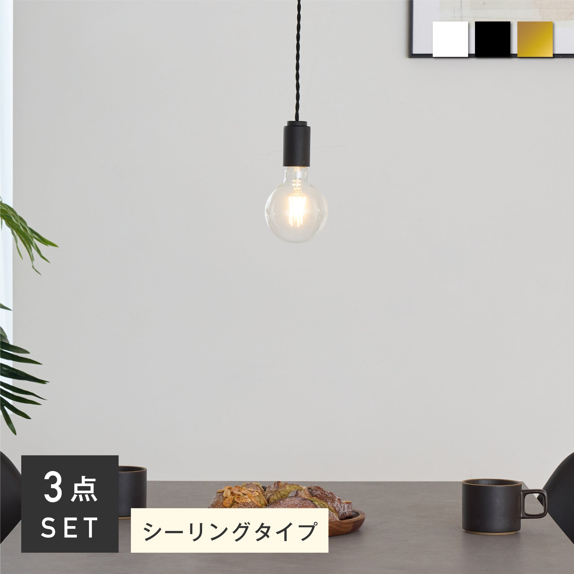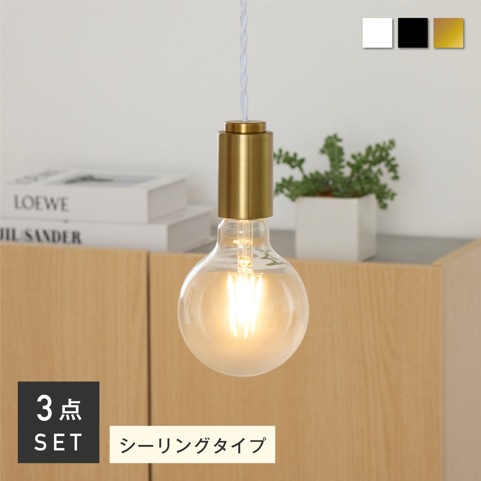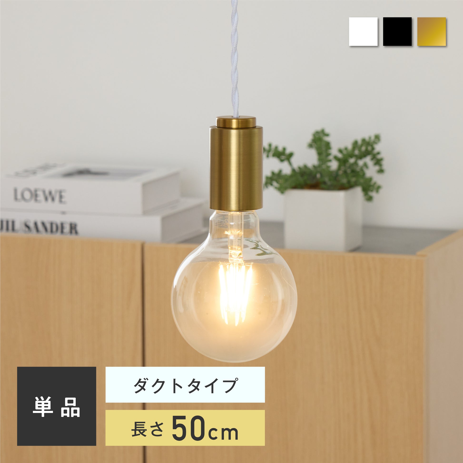 シェードを持たないシンプルなソケットデザインにより、使用する電球の種類や形状を自由に選ぶことができます。当店オリジナルのフィラメントLED電球だと、ヴィンテージ感漂う灯りに。調光調色機能付きのフィラメントLED電球なら、シーンに応じて雰囲気を自在に変えられます。選ぶ電球によって、空間にさまざまな表情を生み出す自由度の高い照明です。
