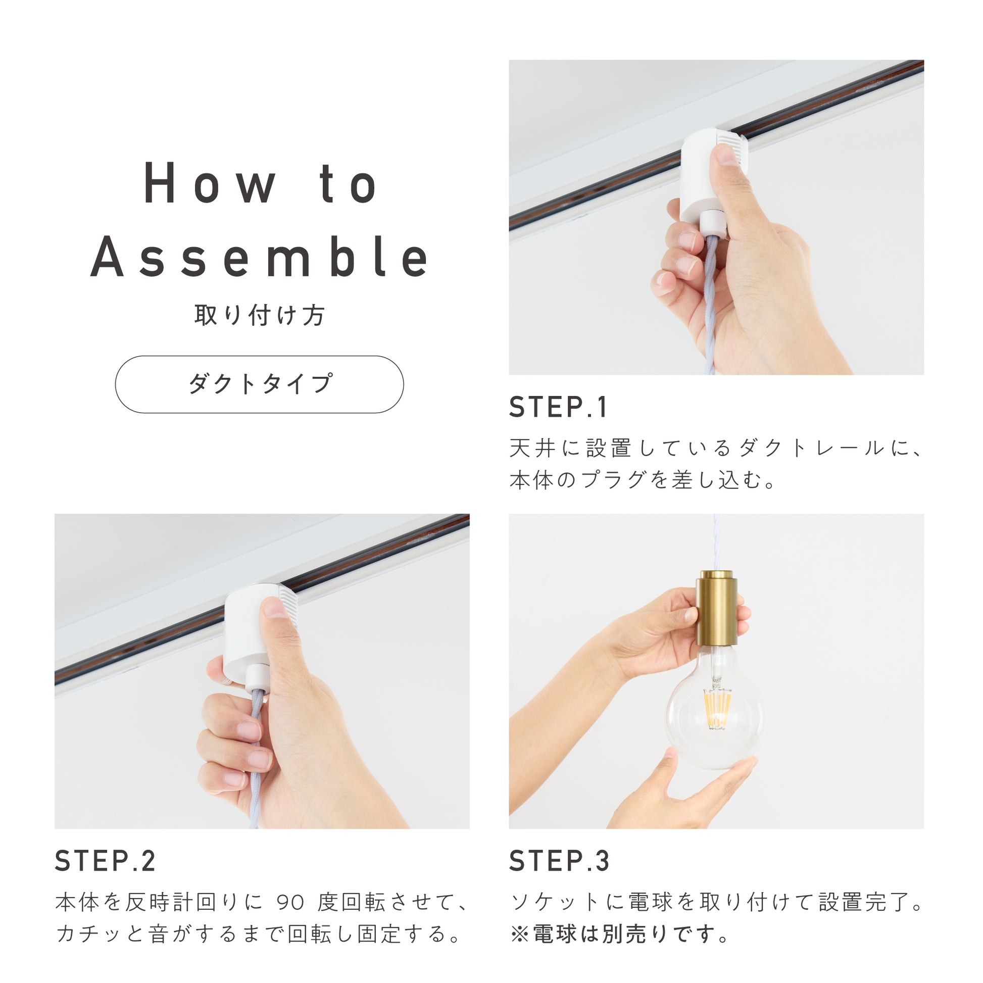 最後に電球をソケットに取り付けて設置完了。 ※電球は別売りです。