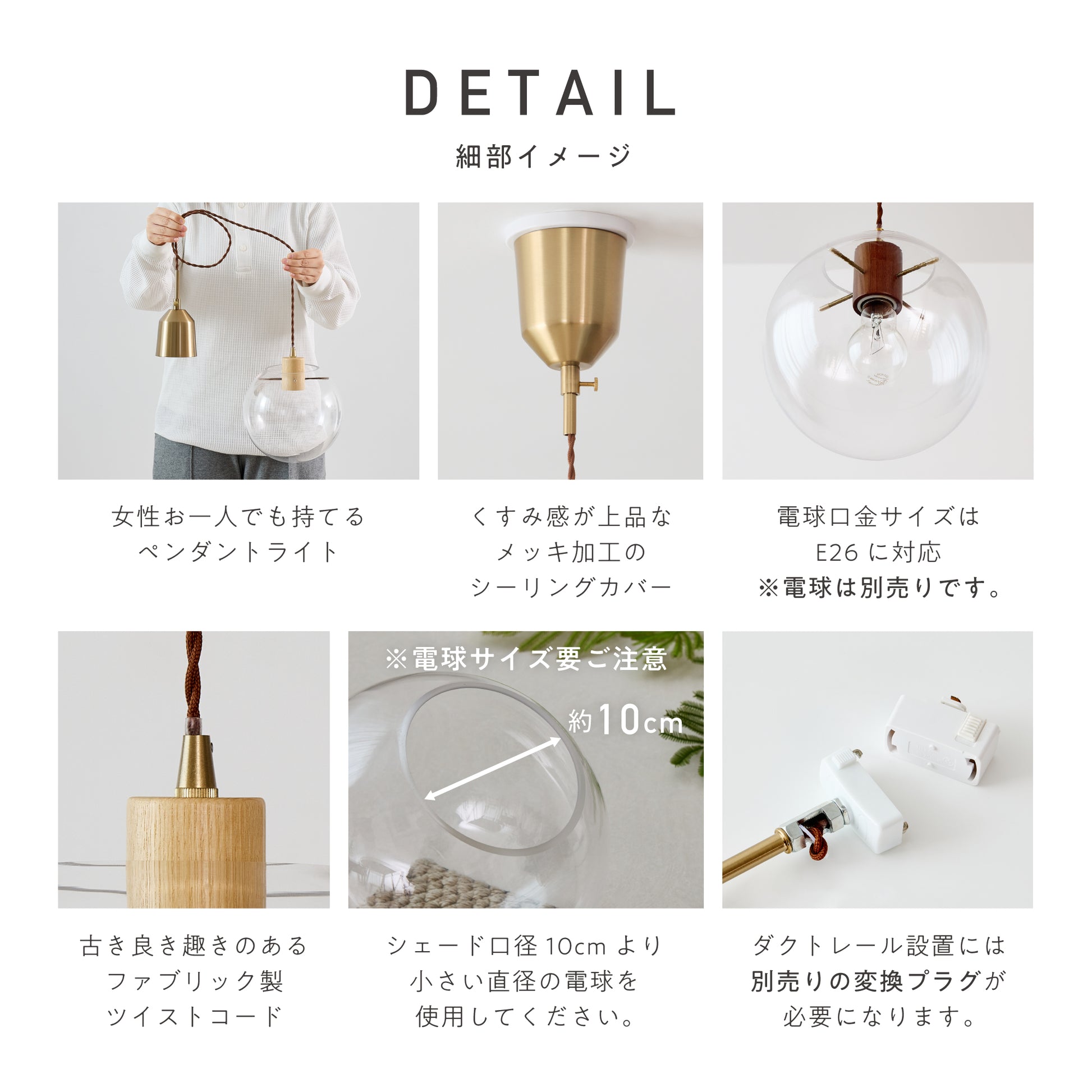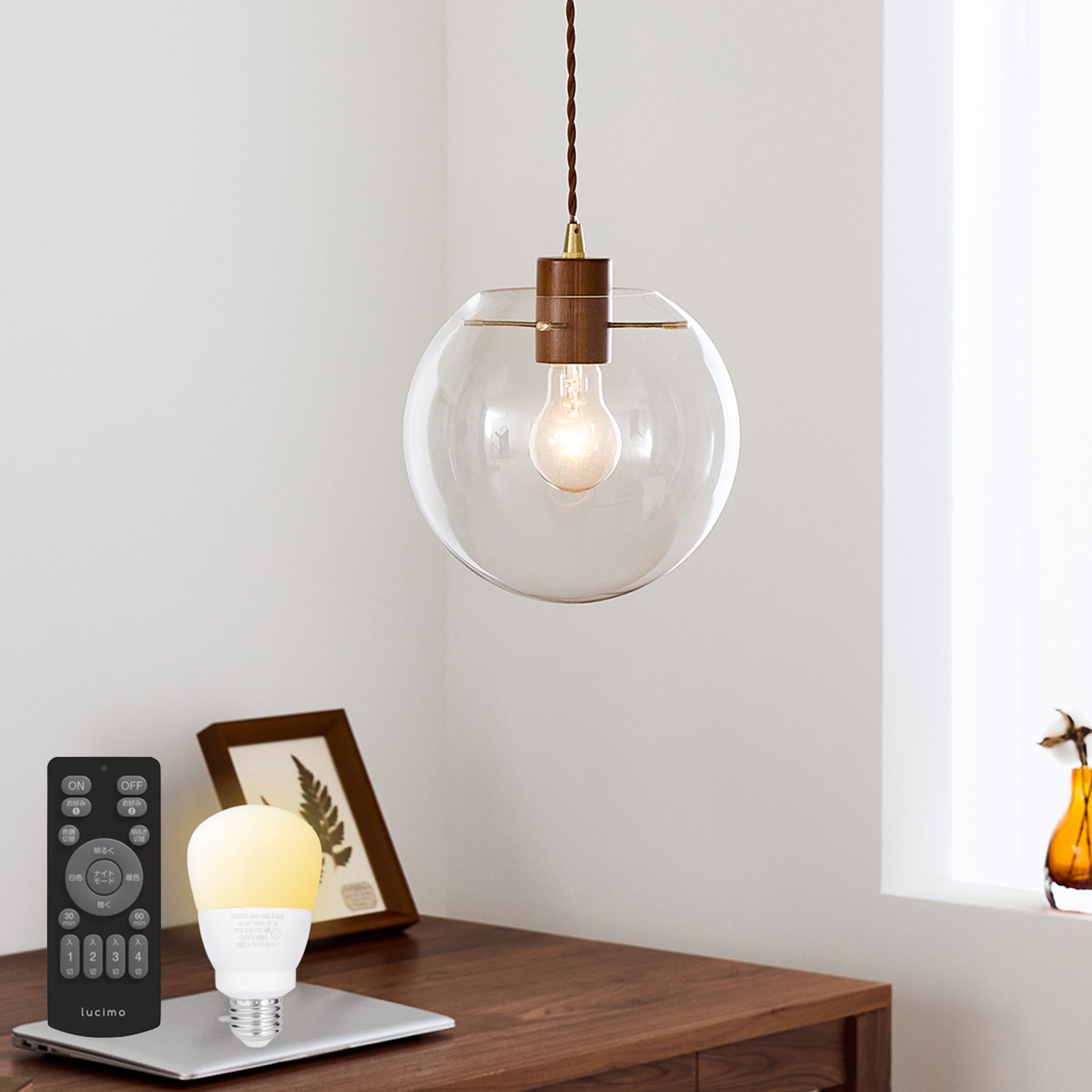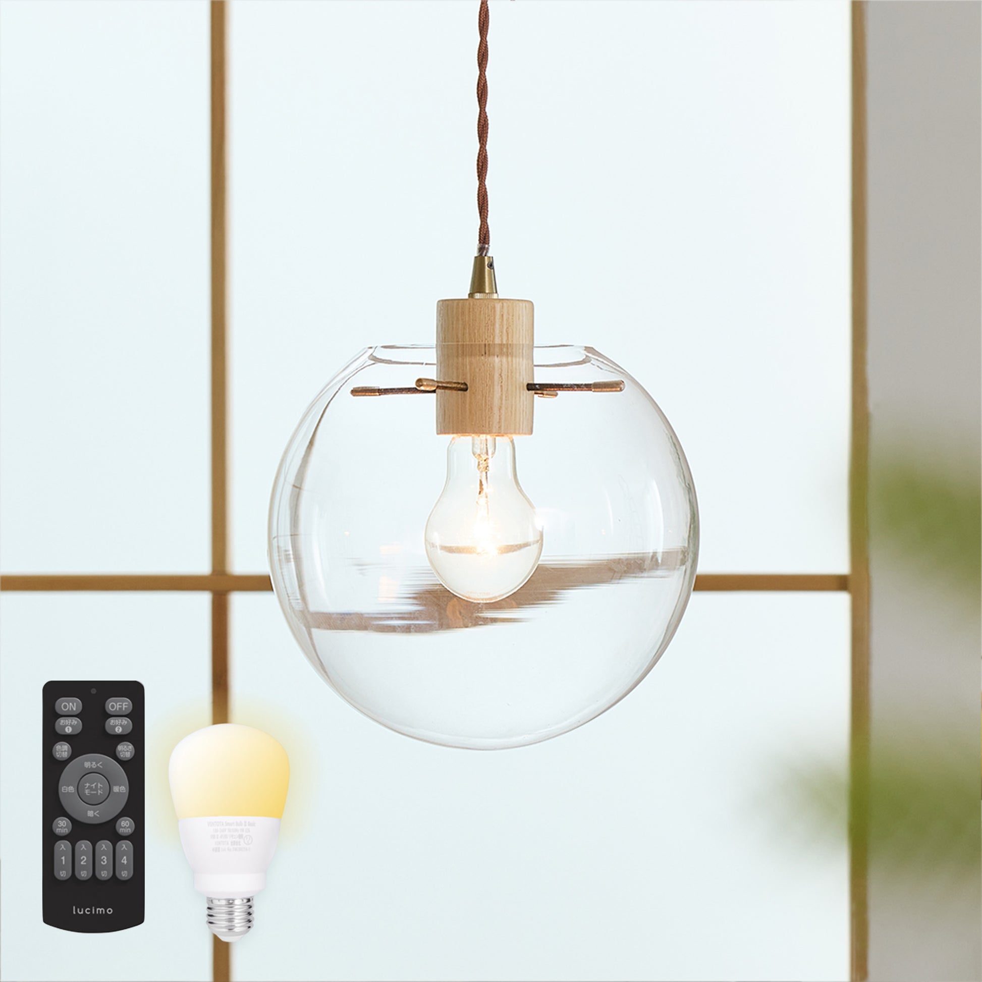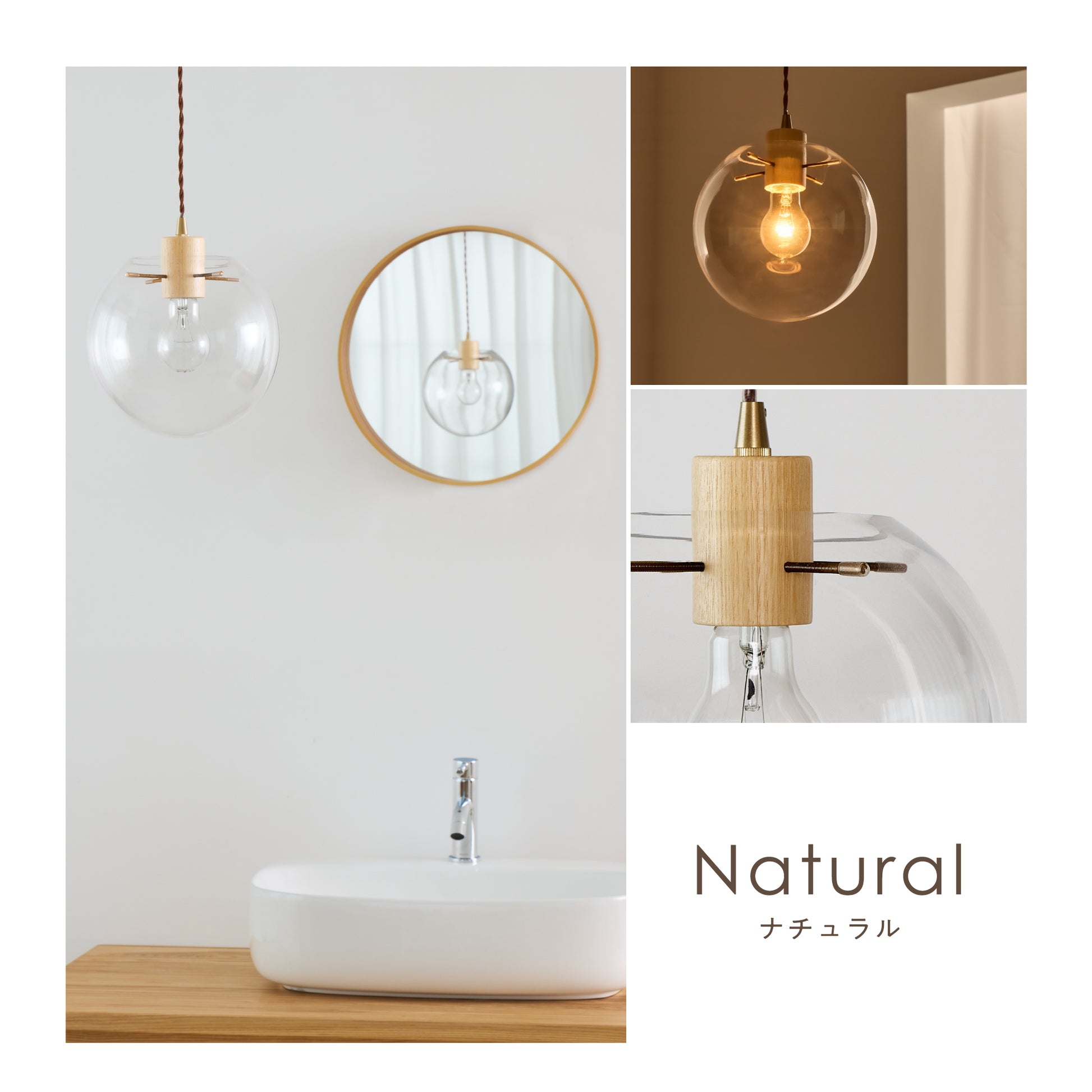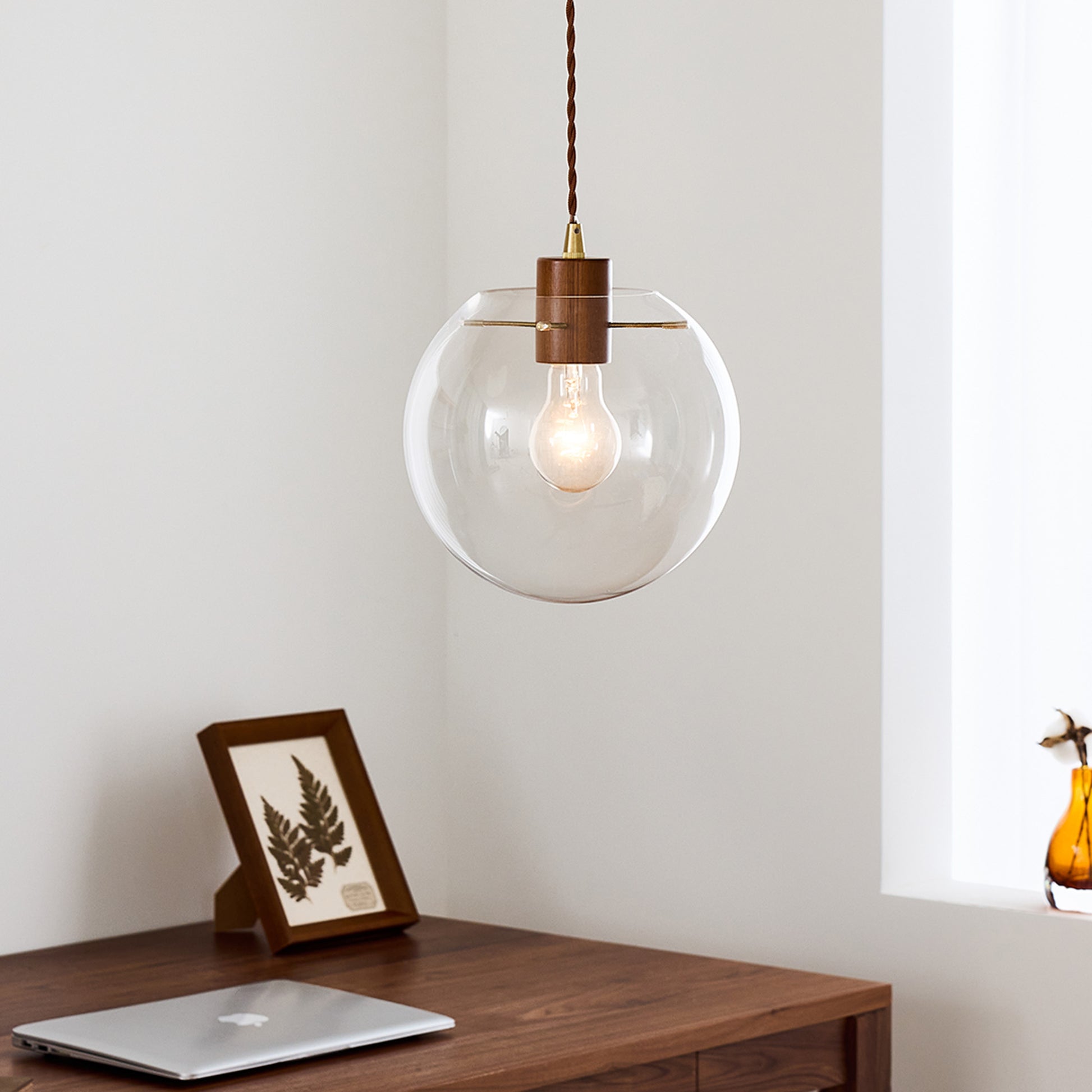 丸みのあるガラスシェードと天然木パーツの柔らかな曲線の重なりが、空間に軽やかな余白をプラス。直径20cmの控えめなサイズが周囲にゆとりを生み、灯した瞬間、光が静かに広がって空気が整うような心地よさに。丸いフォルムがふわりと優雅な陰影を描き、ナチュラルモダンな表情を静かに引き立ててくれます。