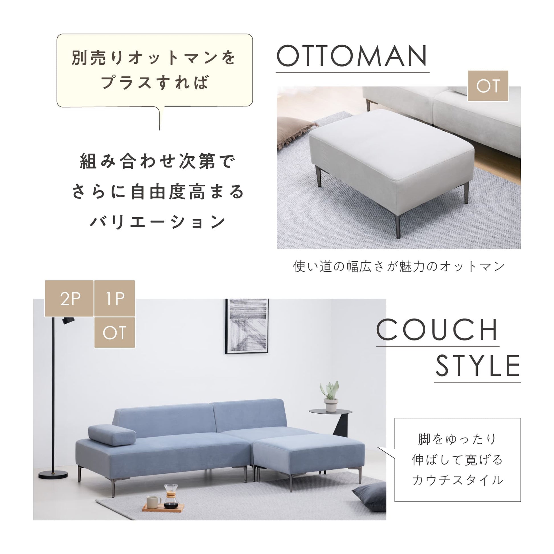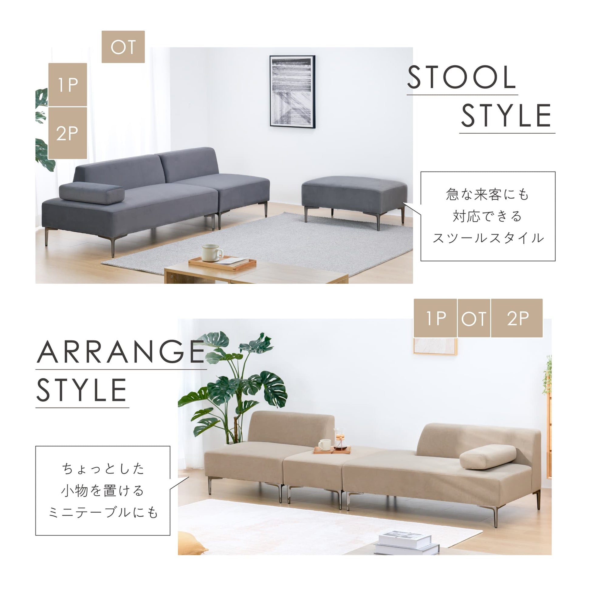 オットマンを組み合わせることで、カウチスタイルやスツールスタイルなど、自由自在にレイアウトを楽しむことができます。お部屋のスペースに合わせて、様々なスタイルを試せます。