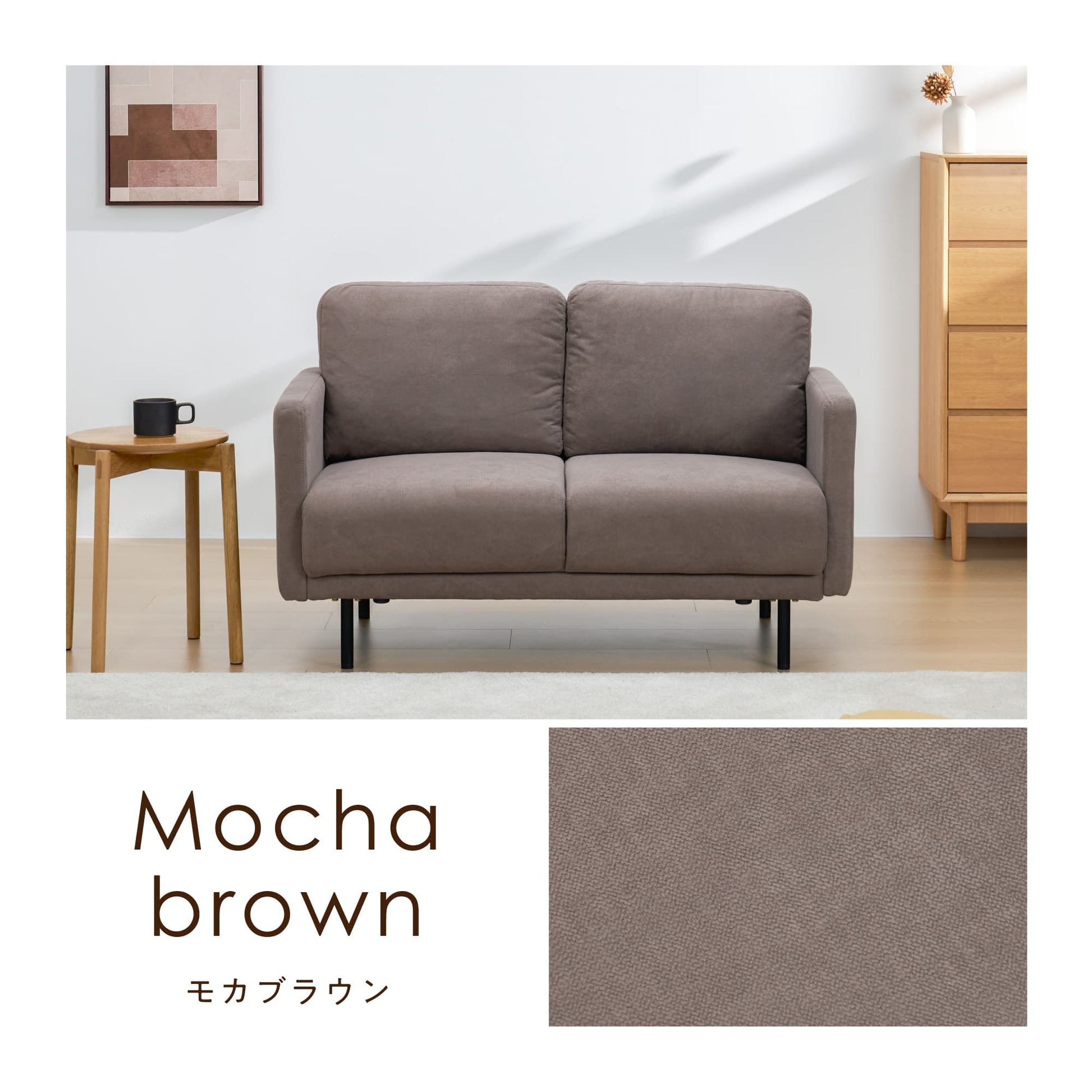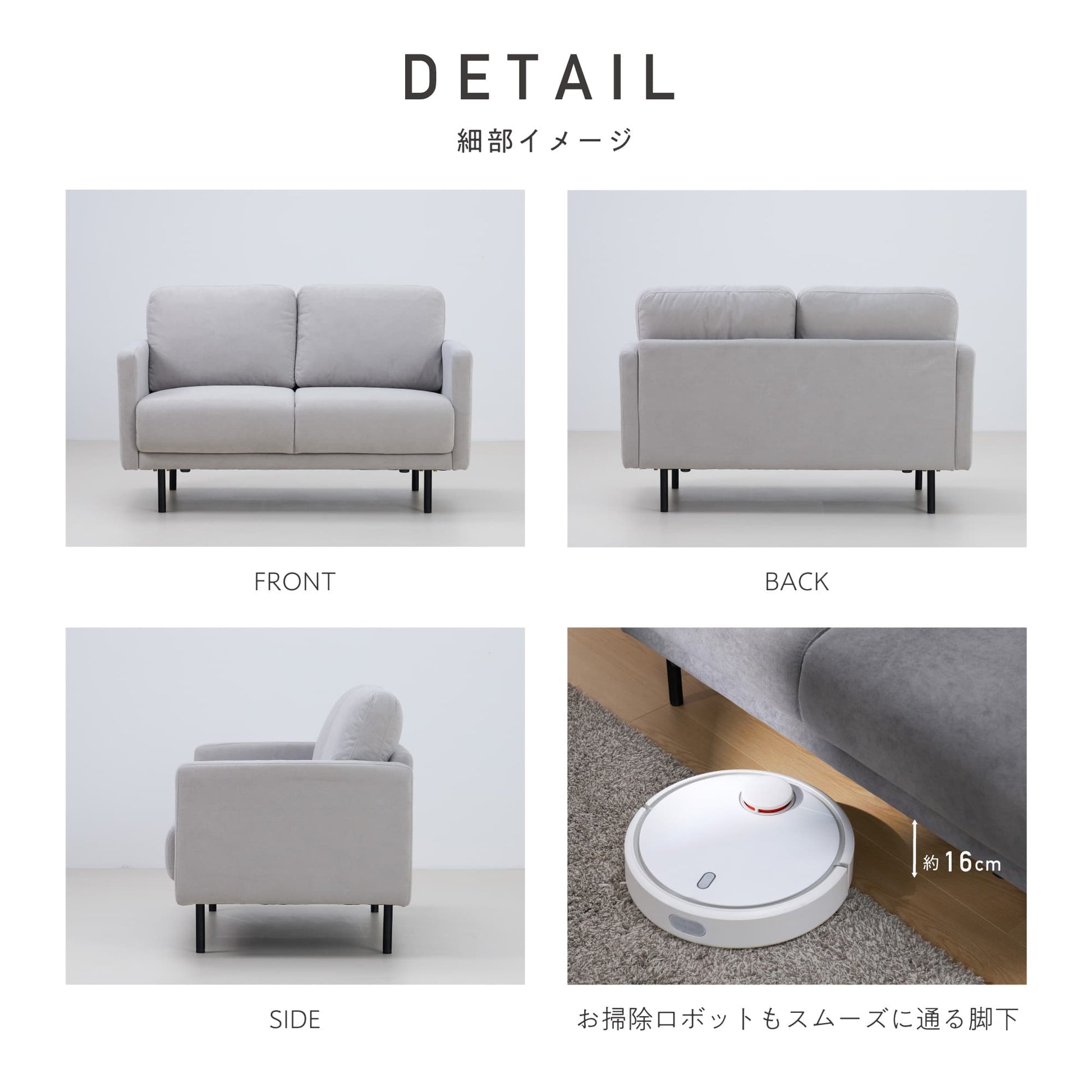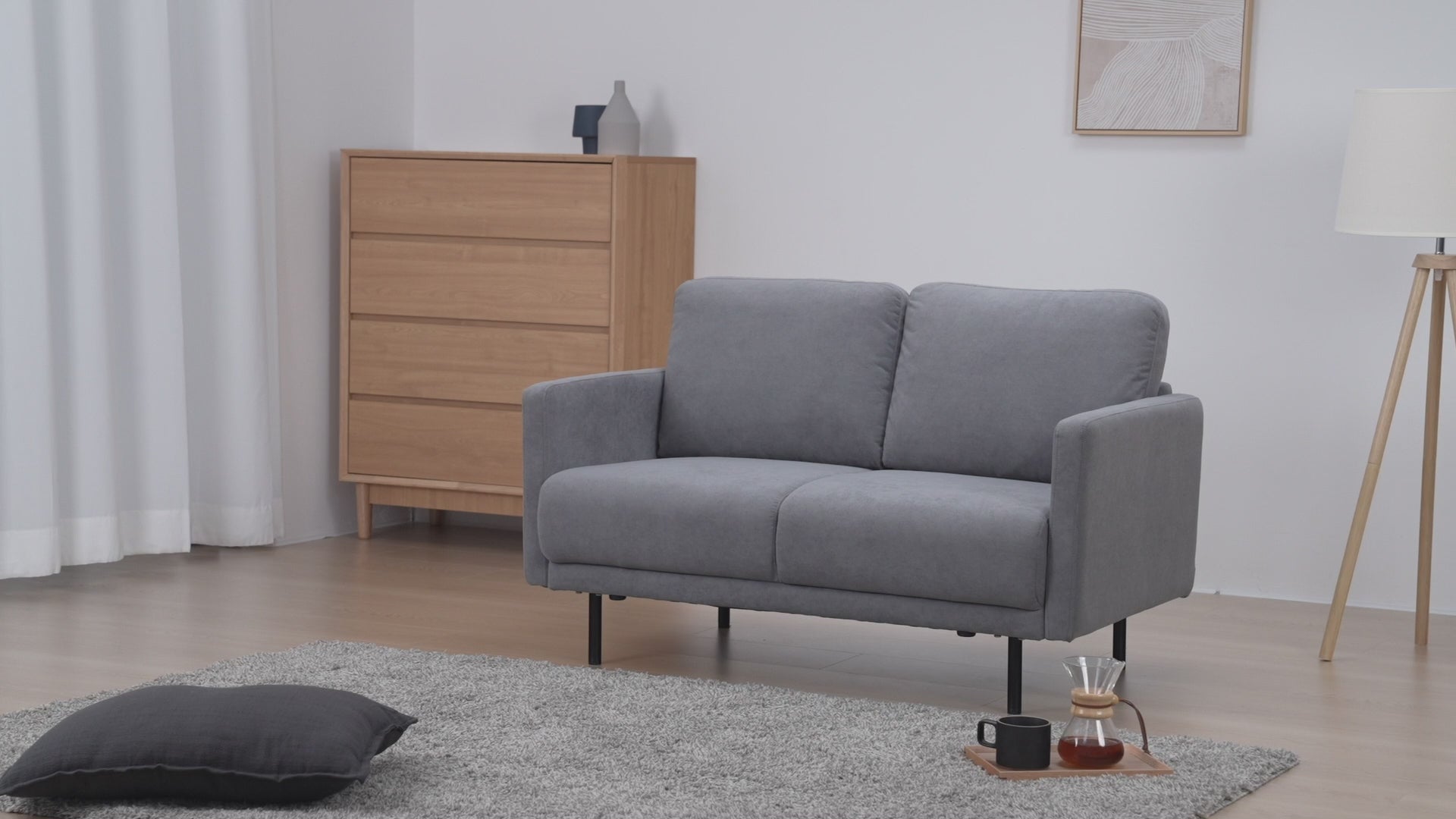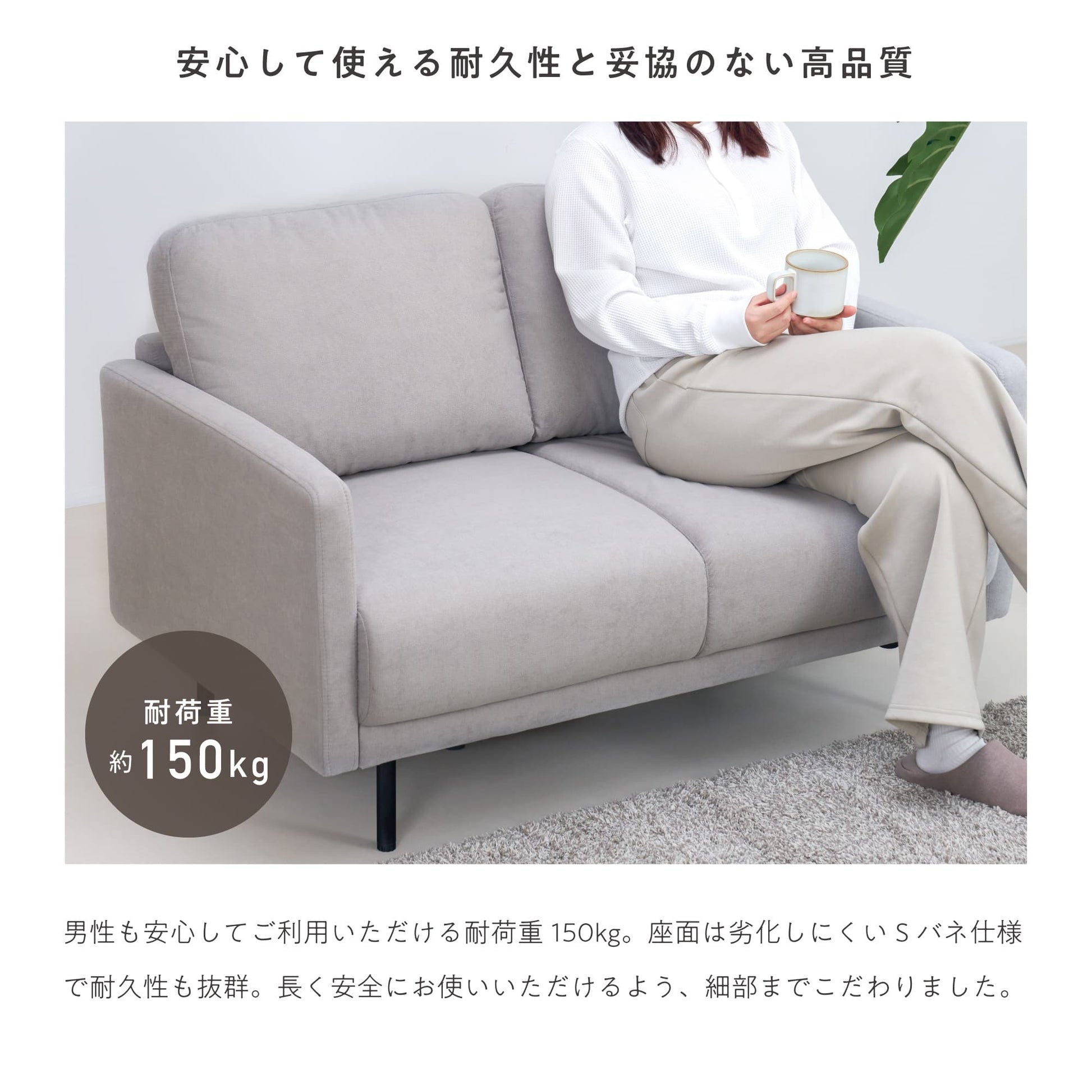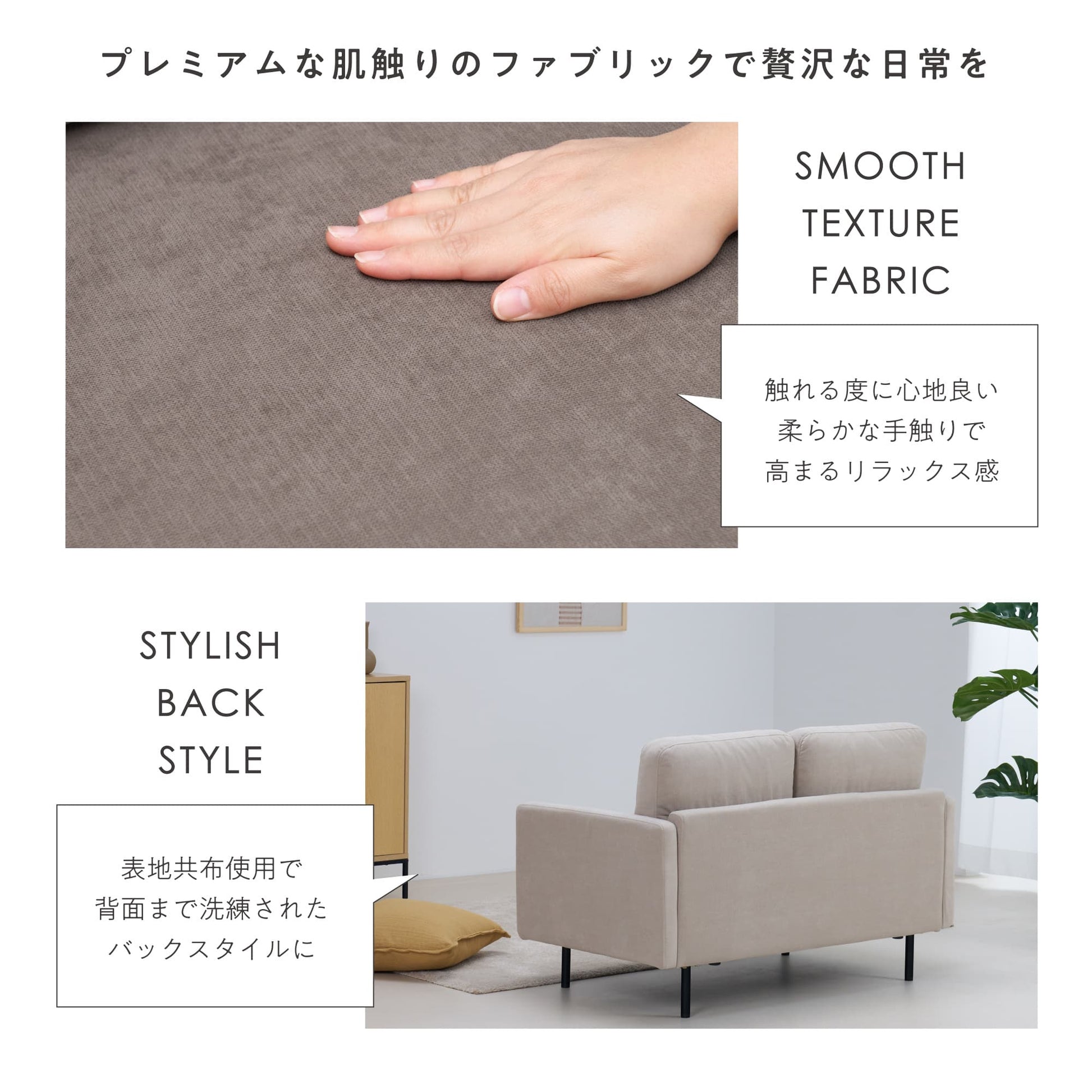 コンパクトながら、ゆったりとした座り心地の二人掛けソファ「Bela(ベラ)」。都会的な空気をまとったシンプルなデザインが、どんな空間にもマッチ。ファブリックは肌ざわりが良く、リラックスした時間を過ごすのに最適です。ソリッドなブラックスチール脚が、モダンな雰囲気をプラス。脚を外せばローソファとしても使用でき、視界を遮らない低重心スタイルですっきりとした印象に。また、耐荷重150kgと高耐久で長く使える安心設計。さりげなく溶け込むニュアンスカラーの4色展開で、インテリアに合わせてお選びいただけます。