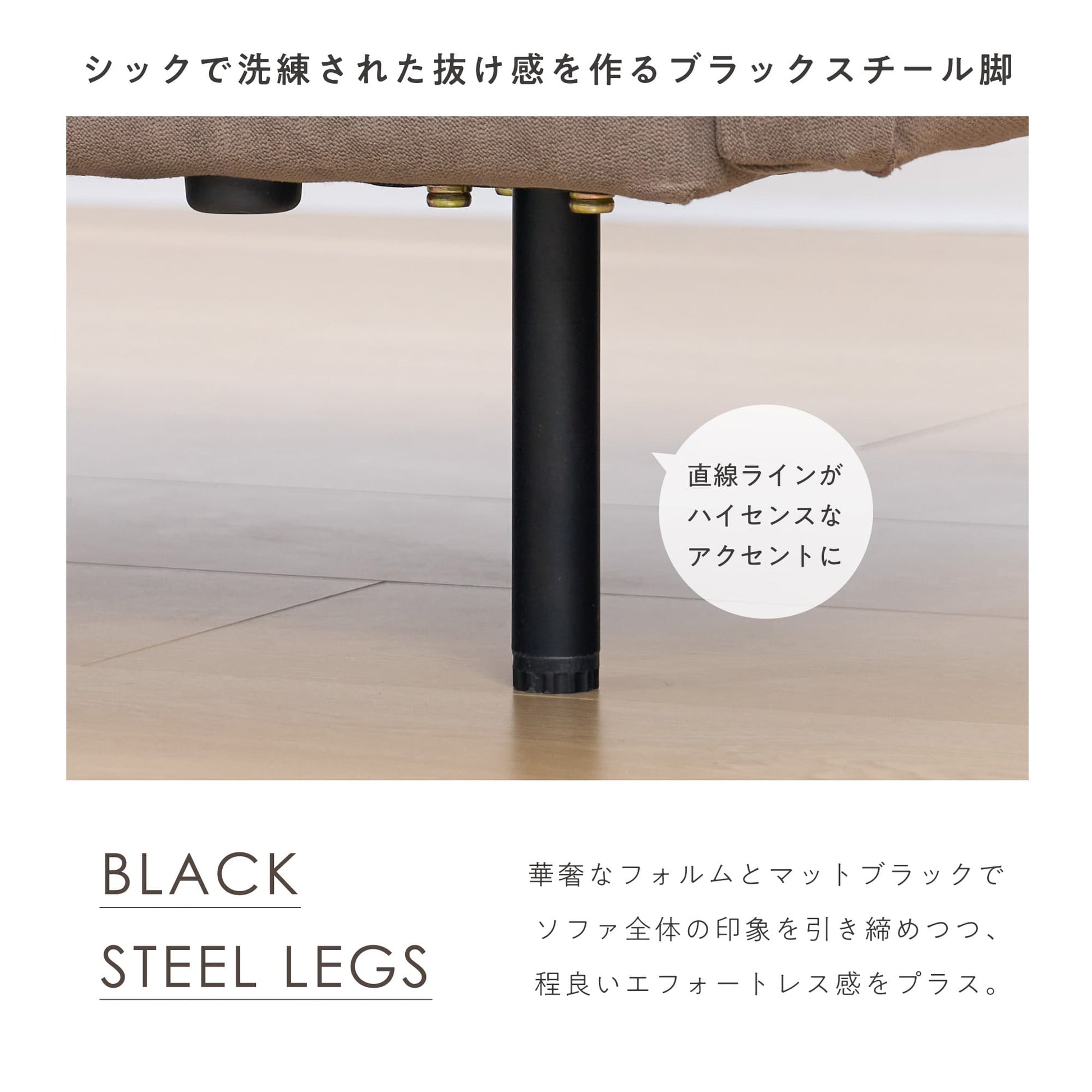 ブラックスチール脚部が適度な抜け感で、お部屋を洗練された上品な印象に。線の華奢さと艶を抑えたマット仕上げが、インテリアにスタイリッシュなアクセントを加えてくれます。