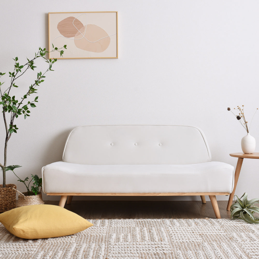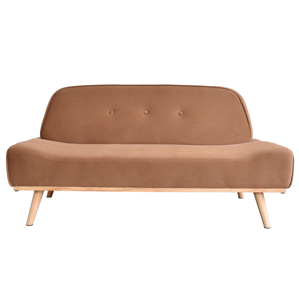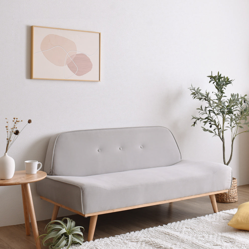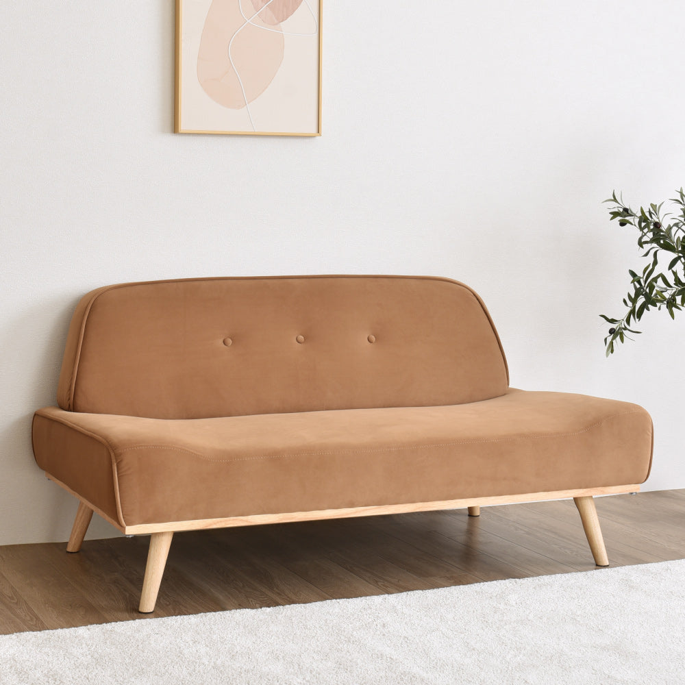 丸いフォルムが特徴のシンプル&ミニマルなデザインの2人掛けソファ『Cauto』。座面と背もたれにベロア調の生地を使用し、触った瞬間にしっとりと肌に馴染む質感でいつまでも触っていたくなるような柔らかさのソファです。ミニマル設計でもゆったりと余裕のあるサイズ感で、足を伸ばしてくつろいだり、大人2人が並んで座ることもできます。天然木の脚の組み合わせがアクセントとなりお部屋をより一層おしゃれに引き立てます。脚を取り外せば、低い位置でリラックスできるロータイプソファとしてもお使いいただけます。