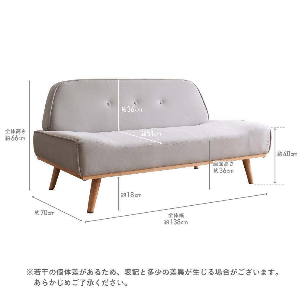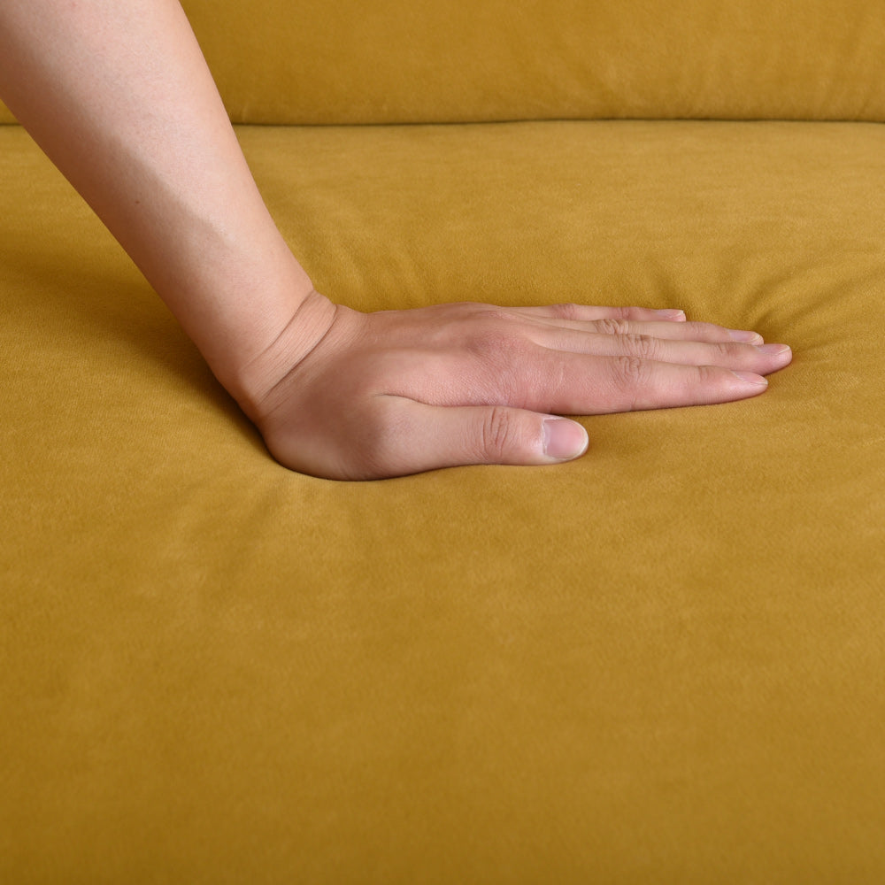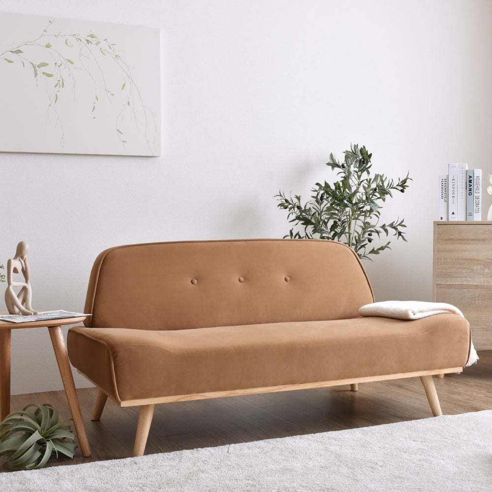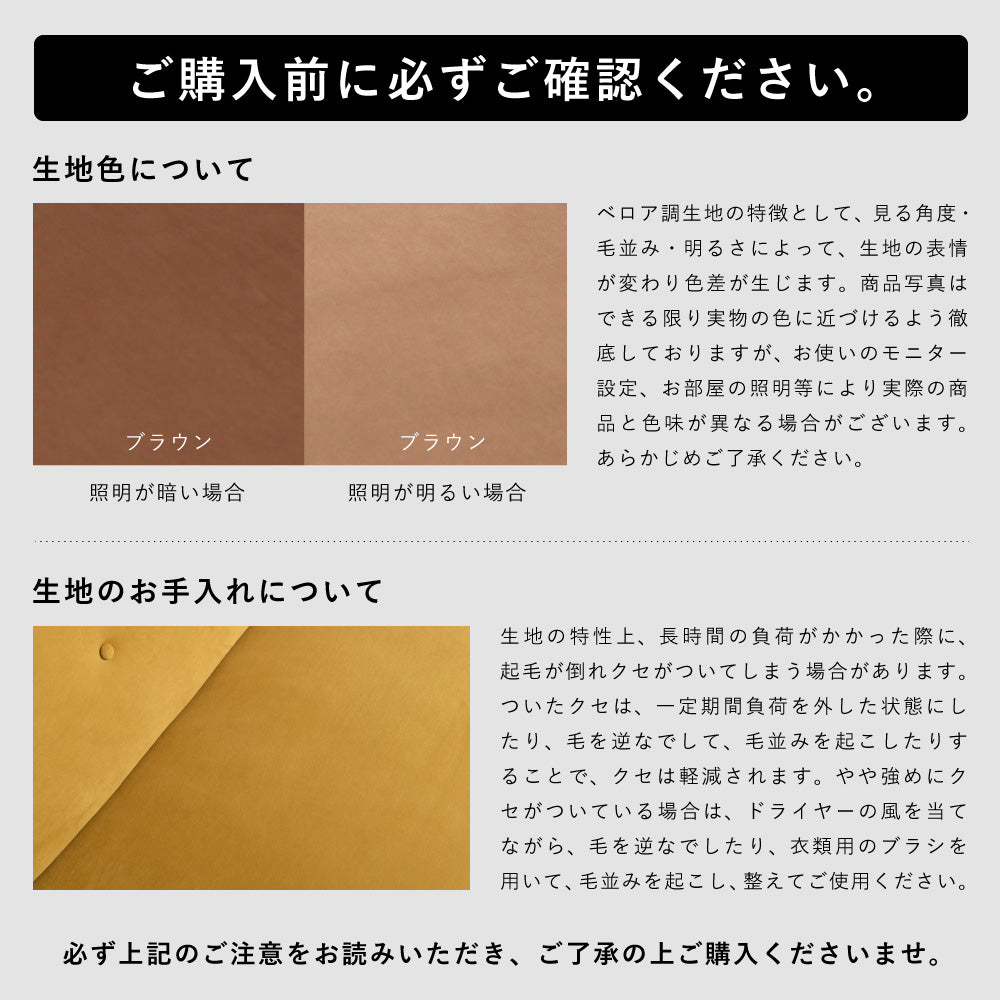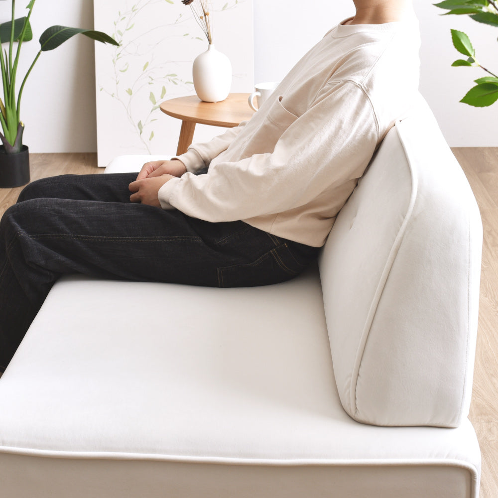 背もたれにはクッション性の高い素材を使用し、体にフィットする座り心地で全身でリラックスできます。生地はベロア調素材を使用し、触った瞬間にしっとりと肌に馴染む質感でいつまでも触っていたくなるような柔らかさのソファです。
