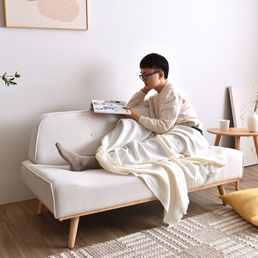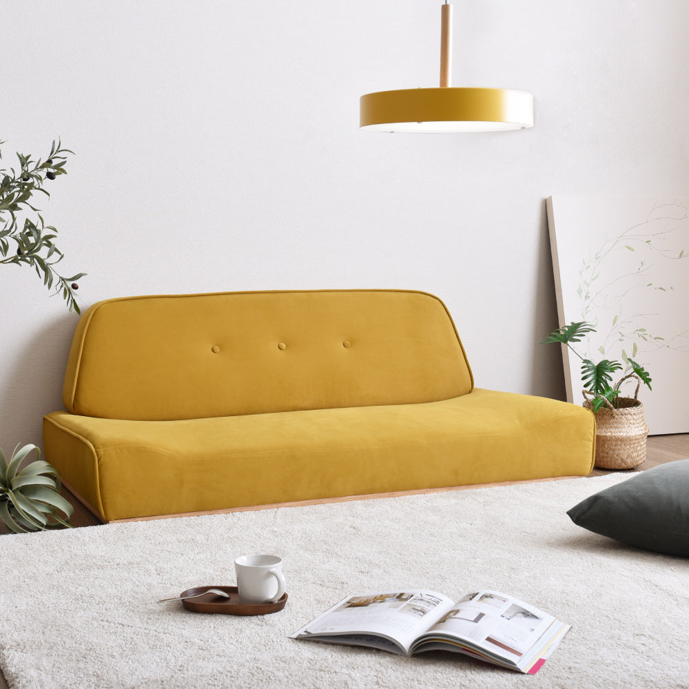 足を伸ばして寛いだり、大人2人が並んで座ることもできるゆったりサイズです。あぐらをかいたり深く腰掛けたり、気分に合わせて自由にリラックスできます。アームレスソファは、スッキリとした開放的なお部屋になり広く見えるのでお部屋を広くみせたい方におすすめです。