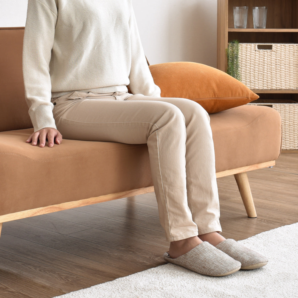 座面の低いロータイプソファにすれば、お部屋の空間に余裕が生まれお部屋がすっきりとした印象に。脚付きのソファとローソファの2パターンの使い方でお部屋の模様替えなどに大活躍。ローソファとして使用する場合は、樹脂脚が搭載されており床に傷をつける心配がありません。