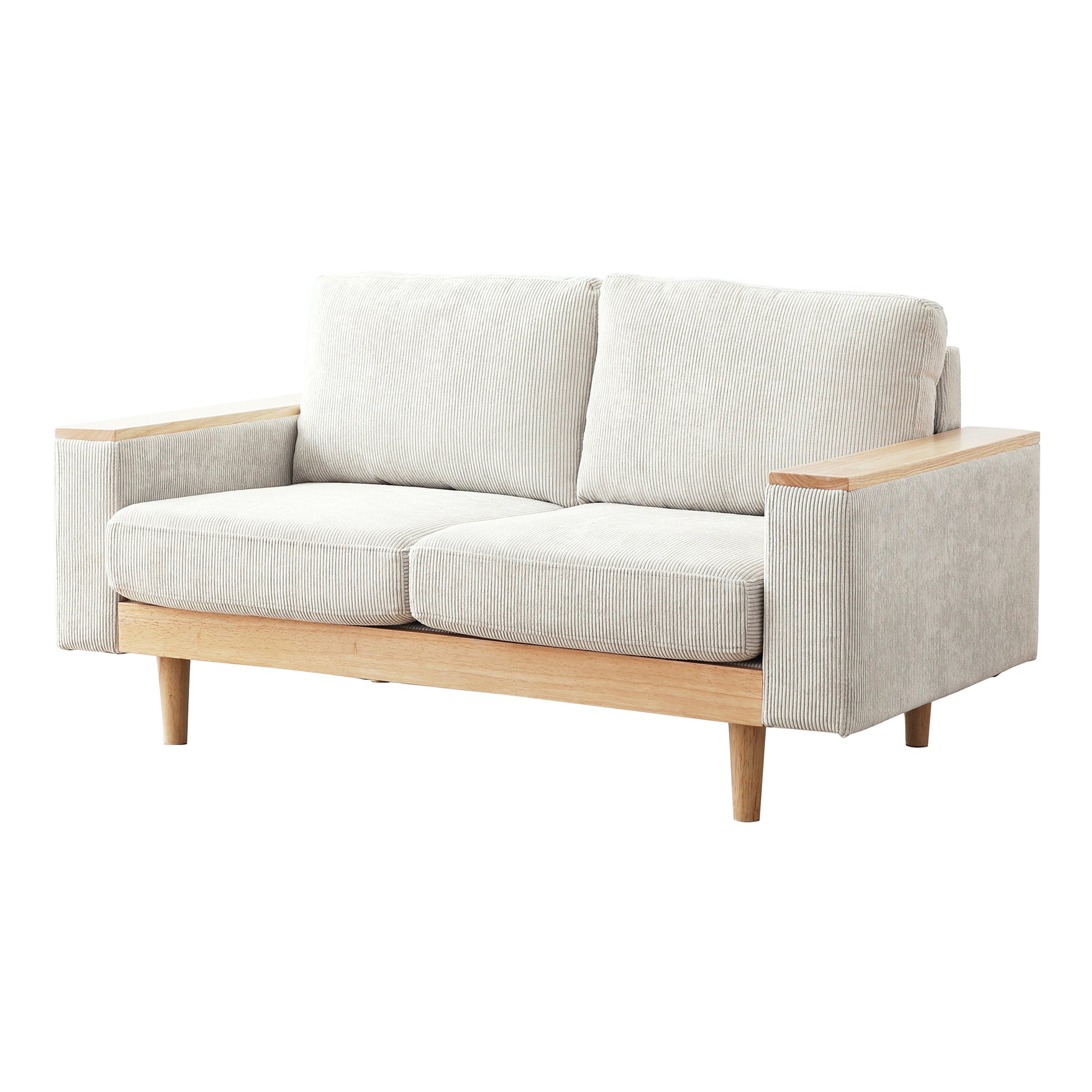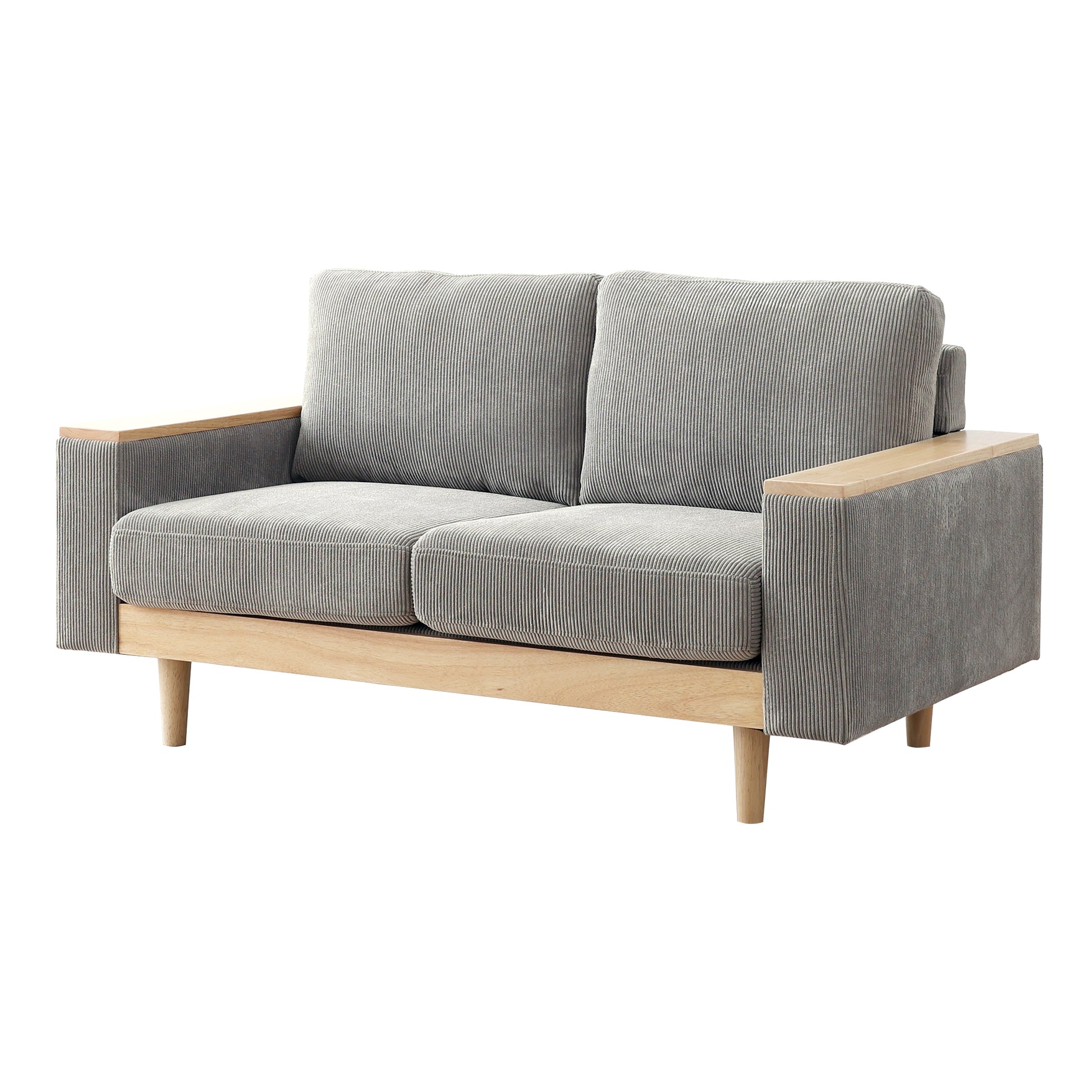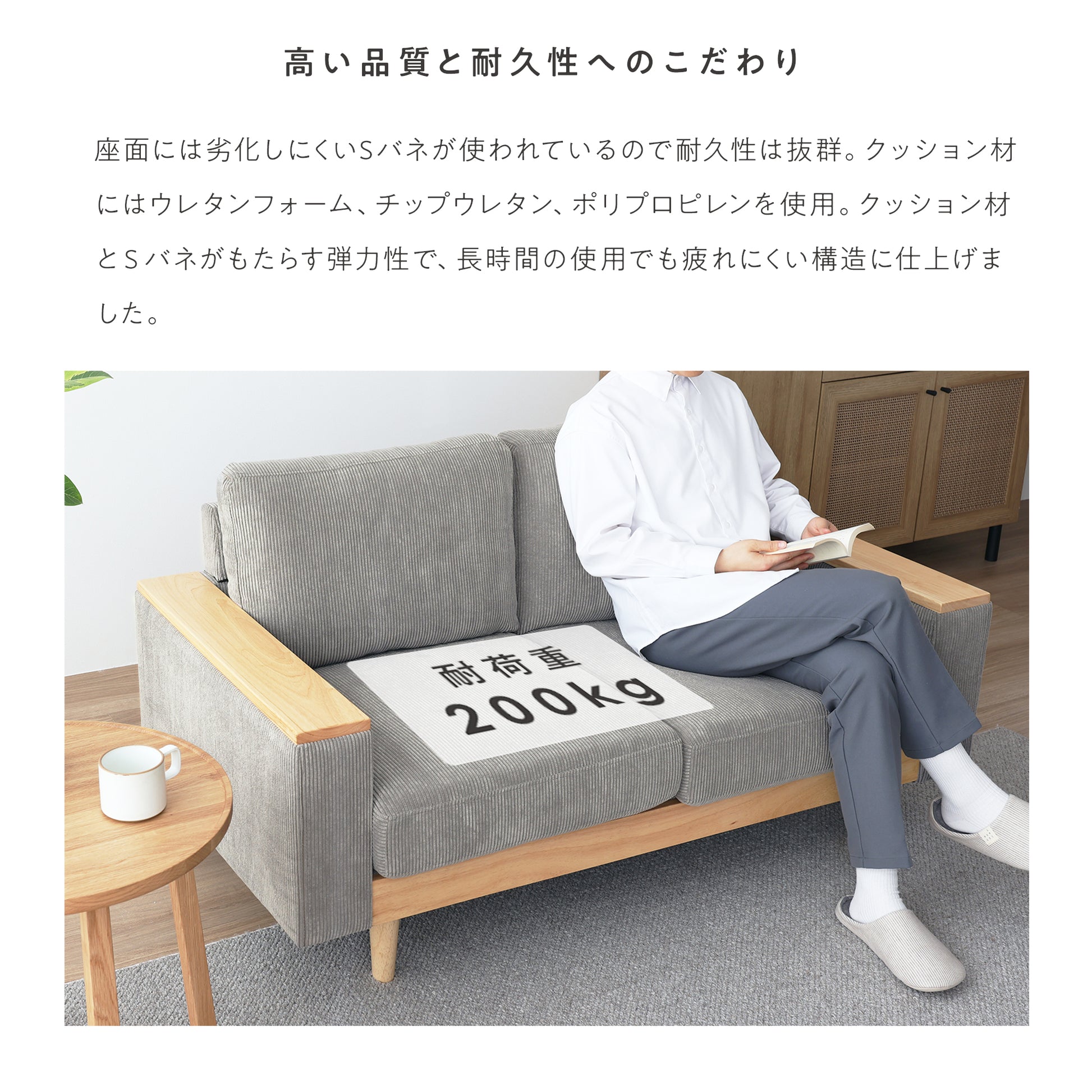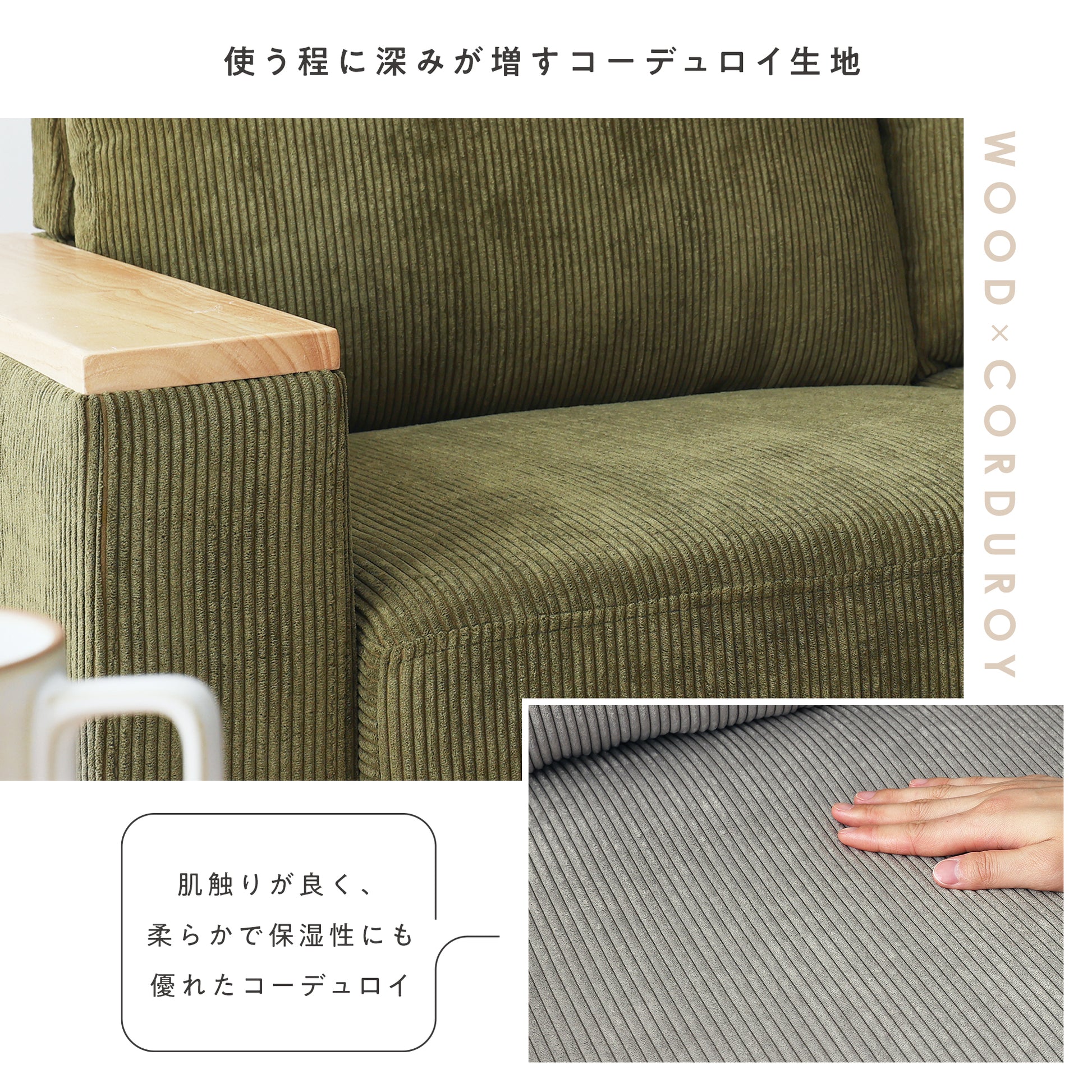 素材の風合いにこだわった天然木とコーデュロイの組み合わせのソファ。素材同士の良さを引き立たせるデザインが、お部屋に上品な雰囲気をプラスします。異なる素材の絶妙なバランスのコンビネーションは、空間に上質さと柔らかさをもたらします。