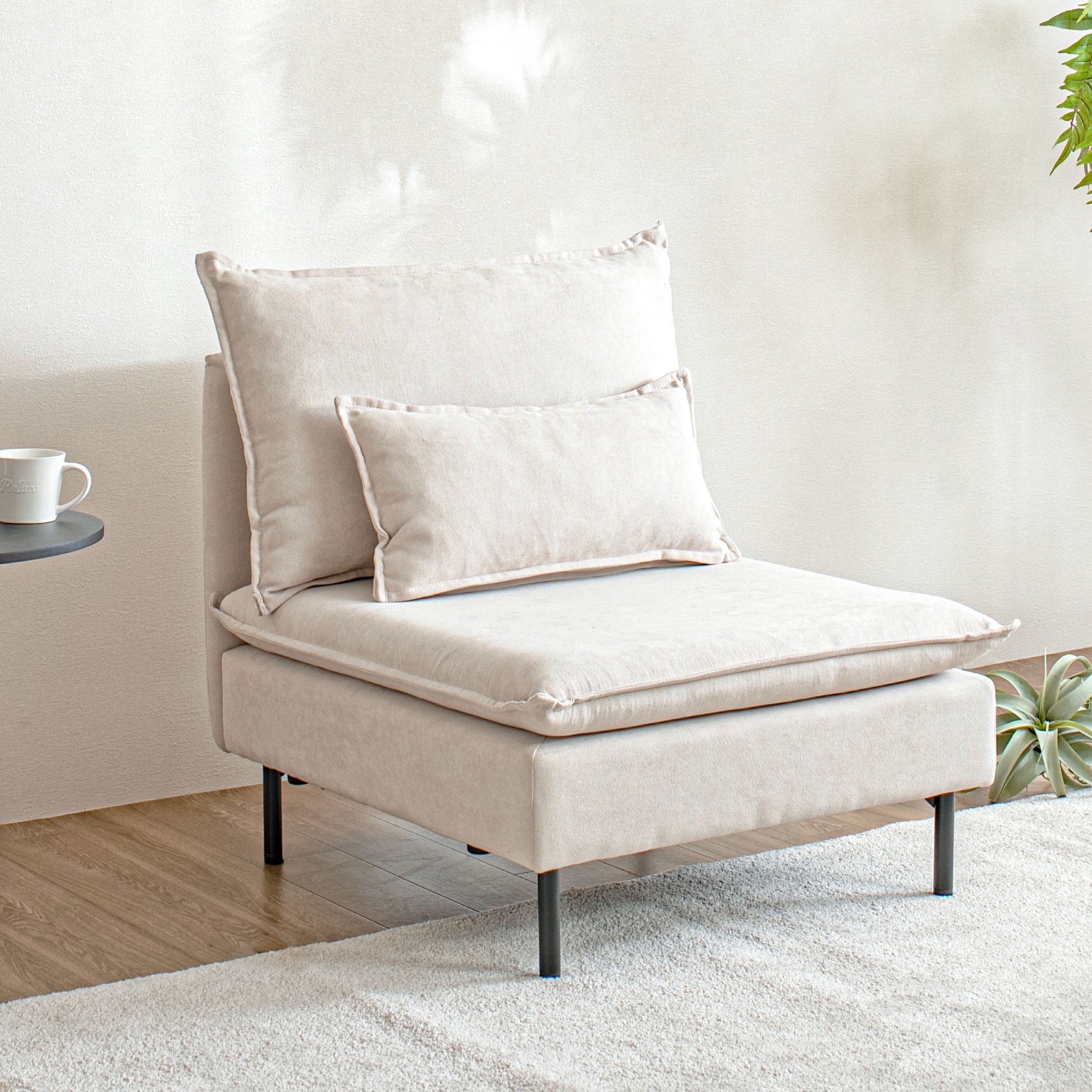 広々とした座面でゆったりとくつろげるデザインが特徴です。アームレス仕様により、左右を気にせず寛げる開放感を提供し、お部屋を広く見せる効果もあります。