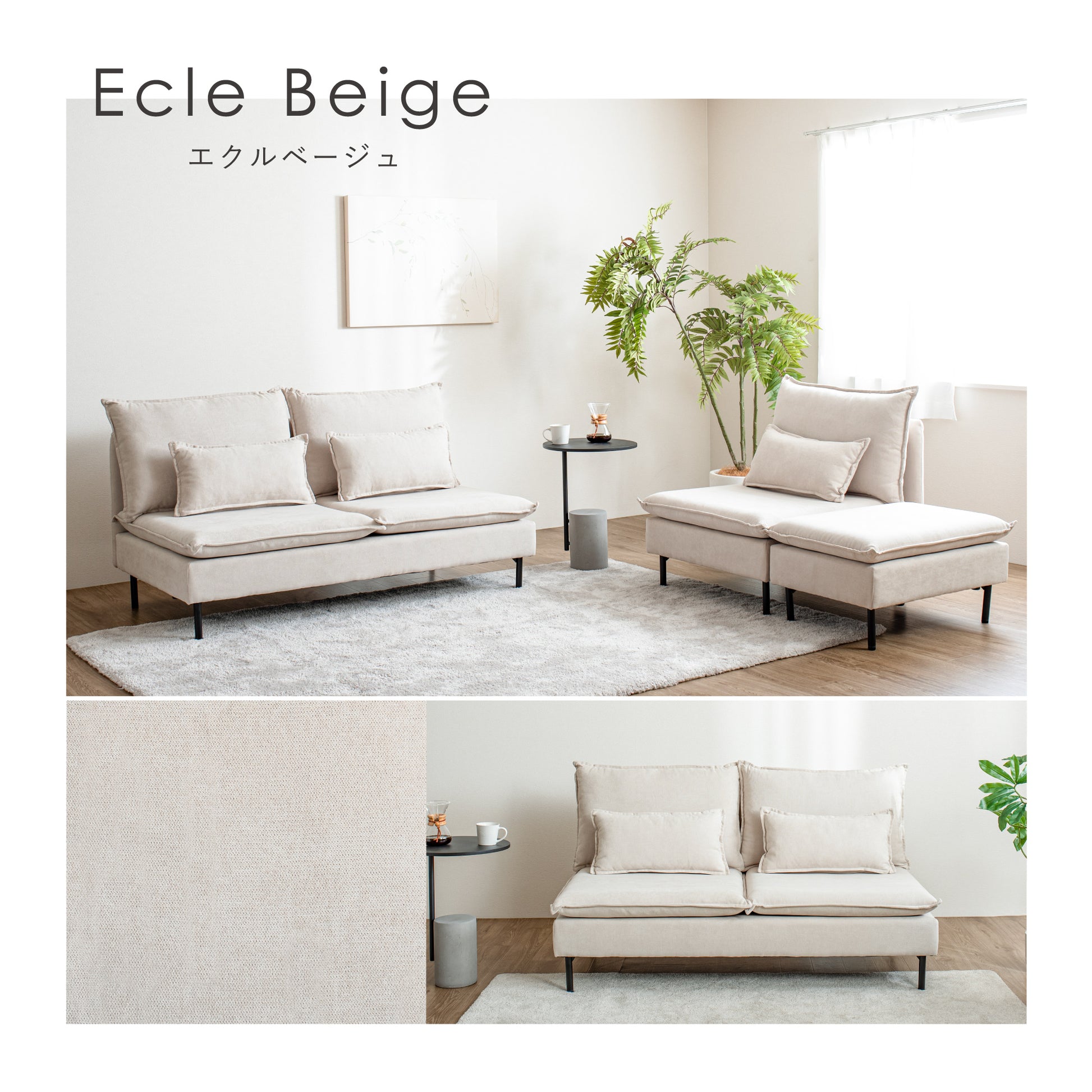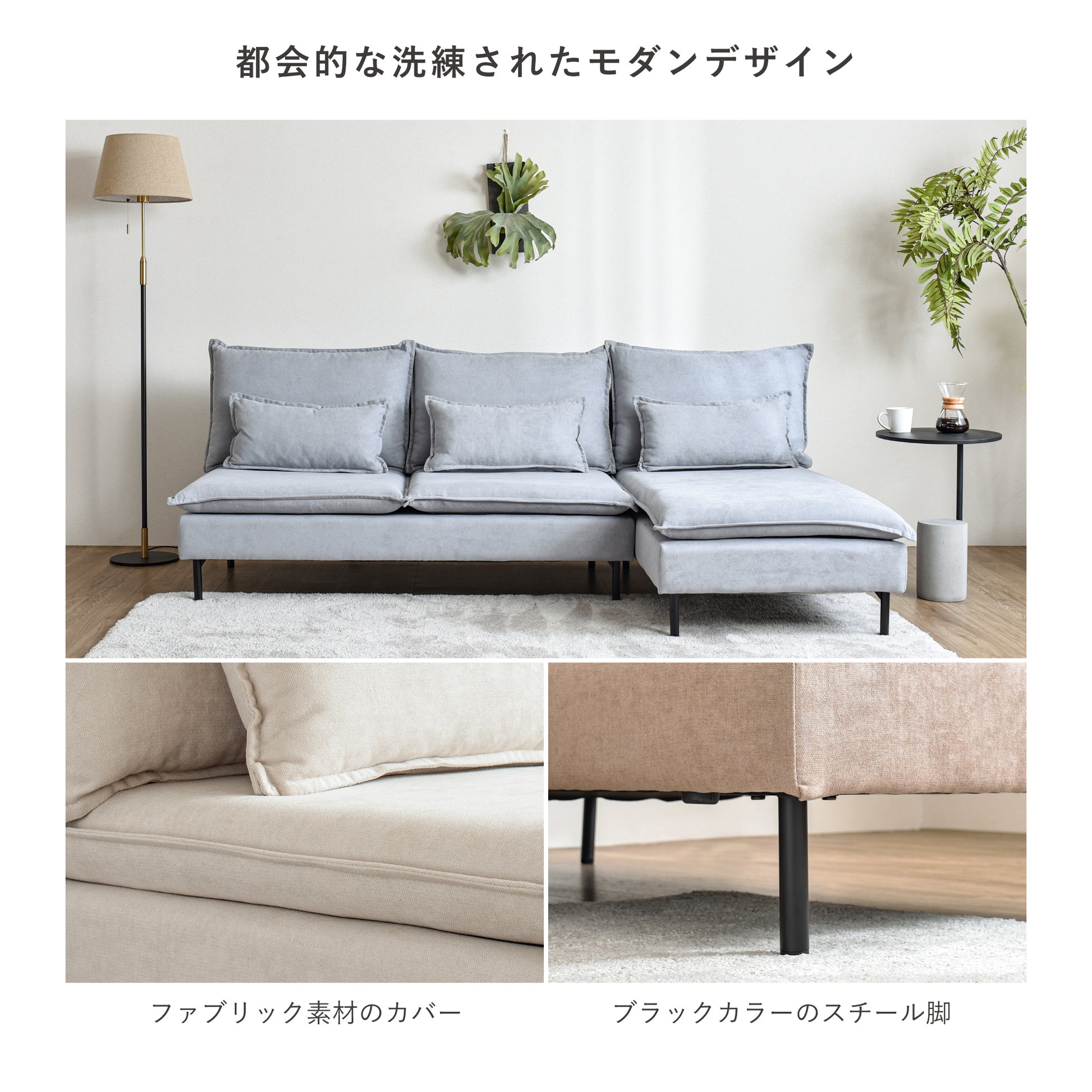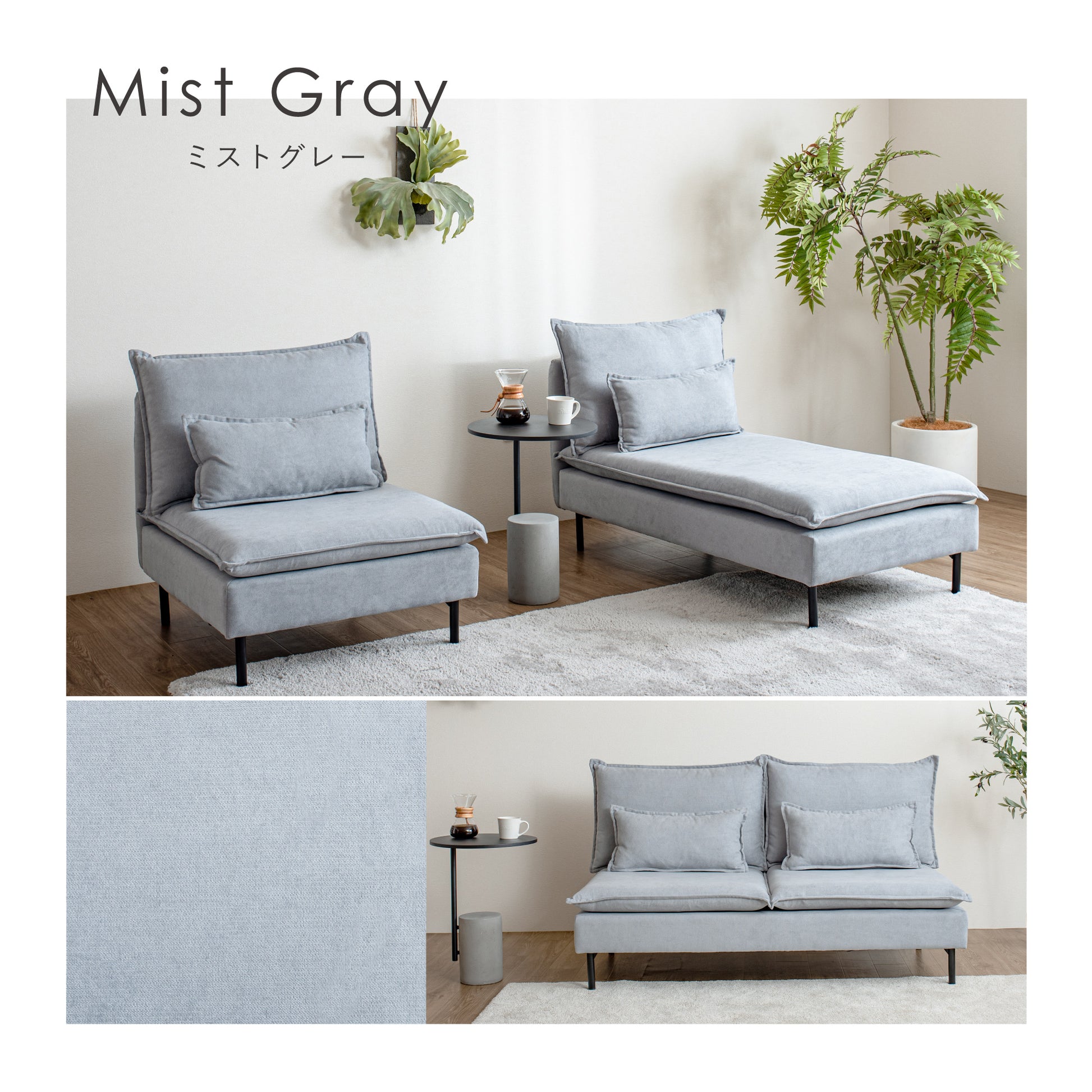 モダンなデザインを楽しむ、都会的なライフスタイルに調和するソファでワンランク上の上質なお部屋に早変わり。ミストグレー・グレージュ・エクルベージュの3色展開でお部屋に合わせてインテリアをお楽しみいただけます。ファブリック製のカバーは通気性と柔らかい肌触りで1年を通してお使いいただけます。