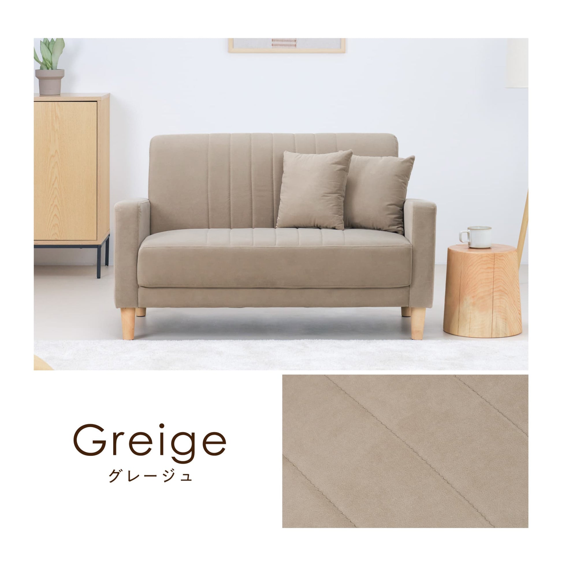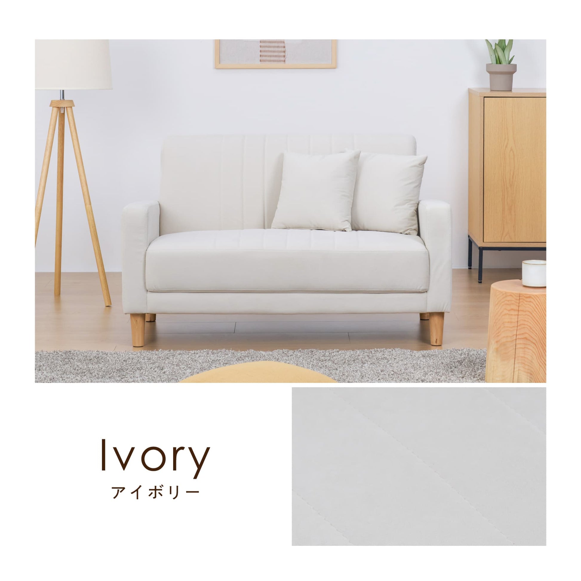 ソファ生地と同じ色のソフトクッション付き。コンパクトサイズで使いやすくお昼寝時やくつろぎ時間にピッタリです。